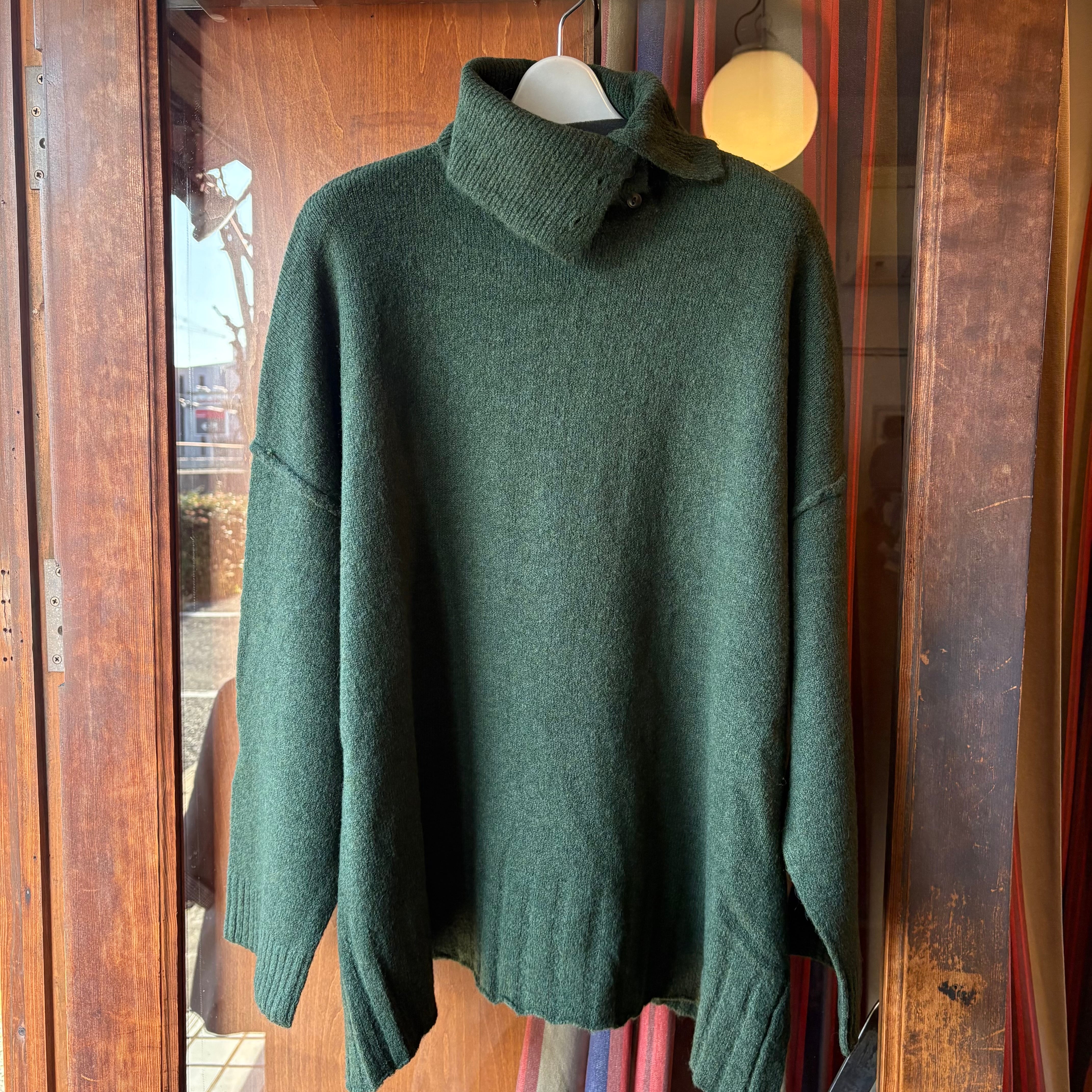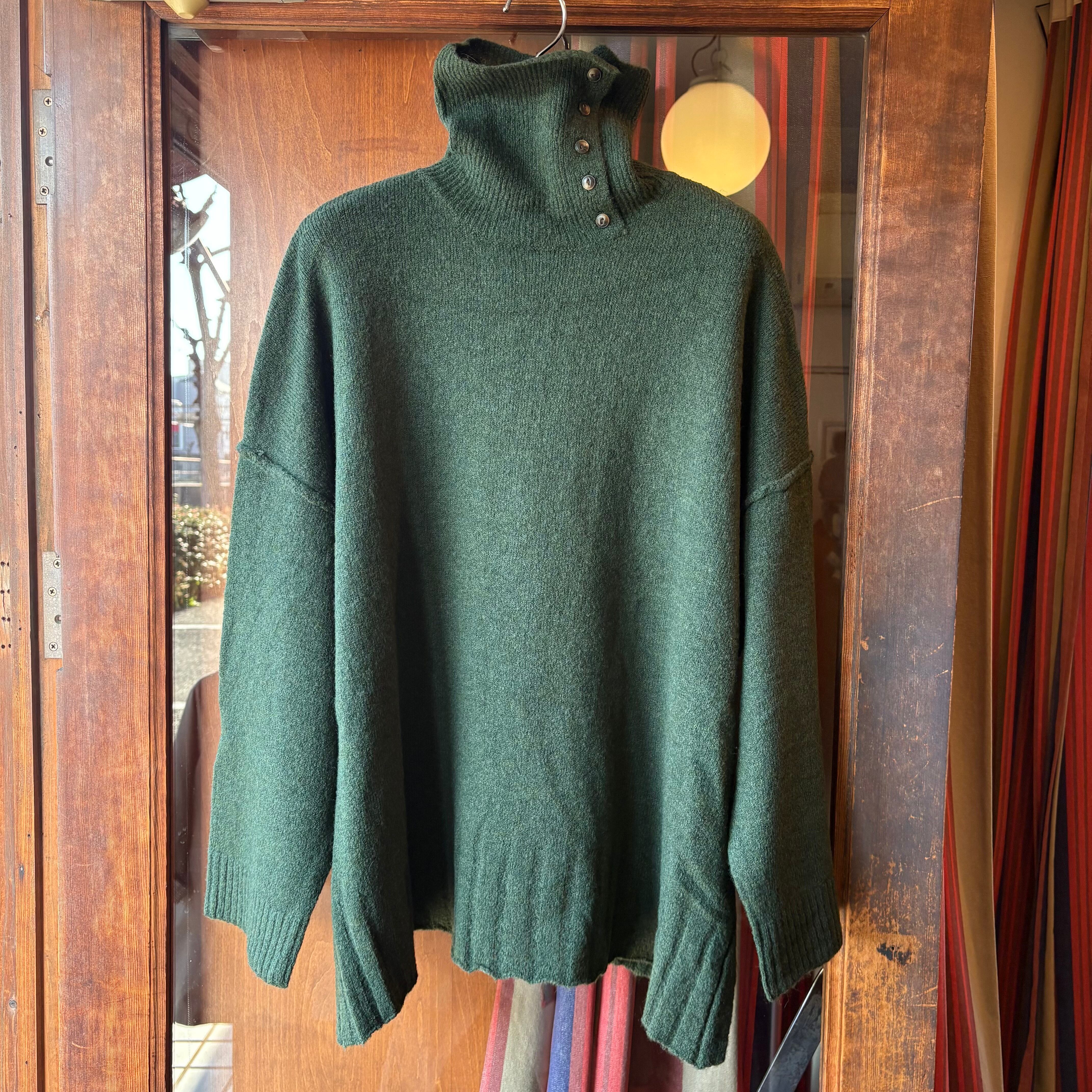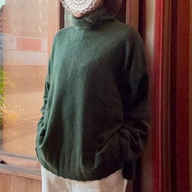 tukuroiのアルパカ混天竺タートルネックビッグシルエットニット・グリーン