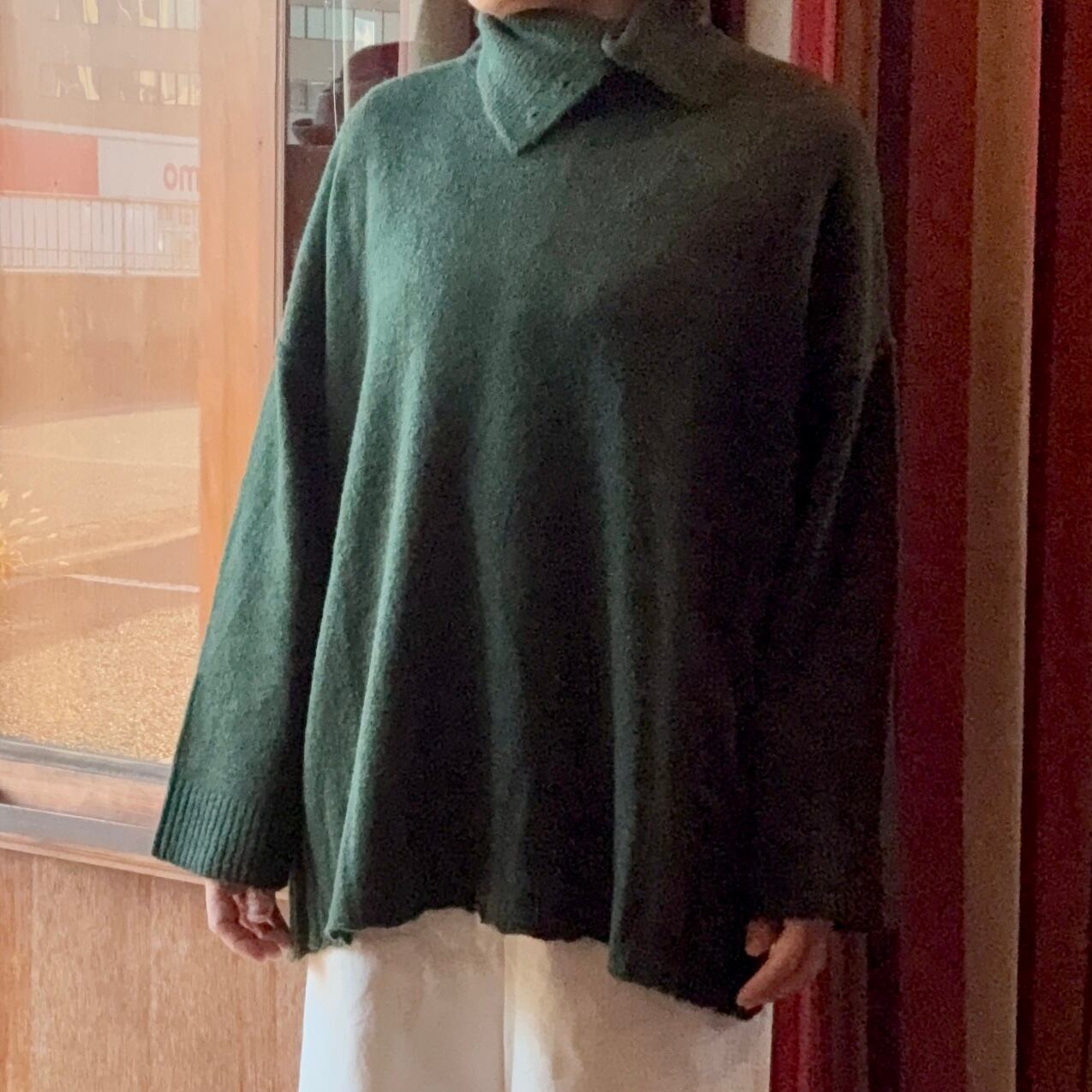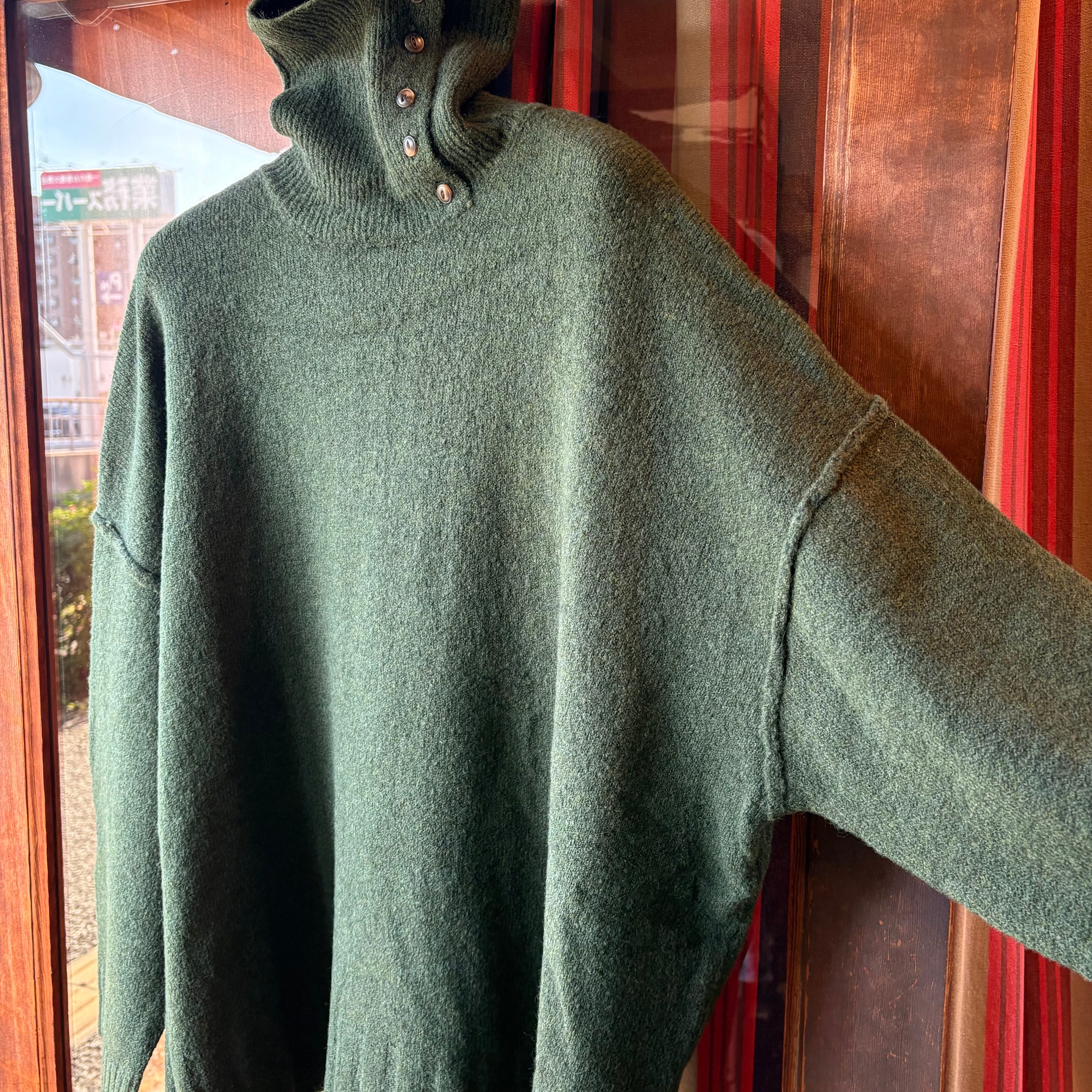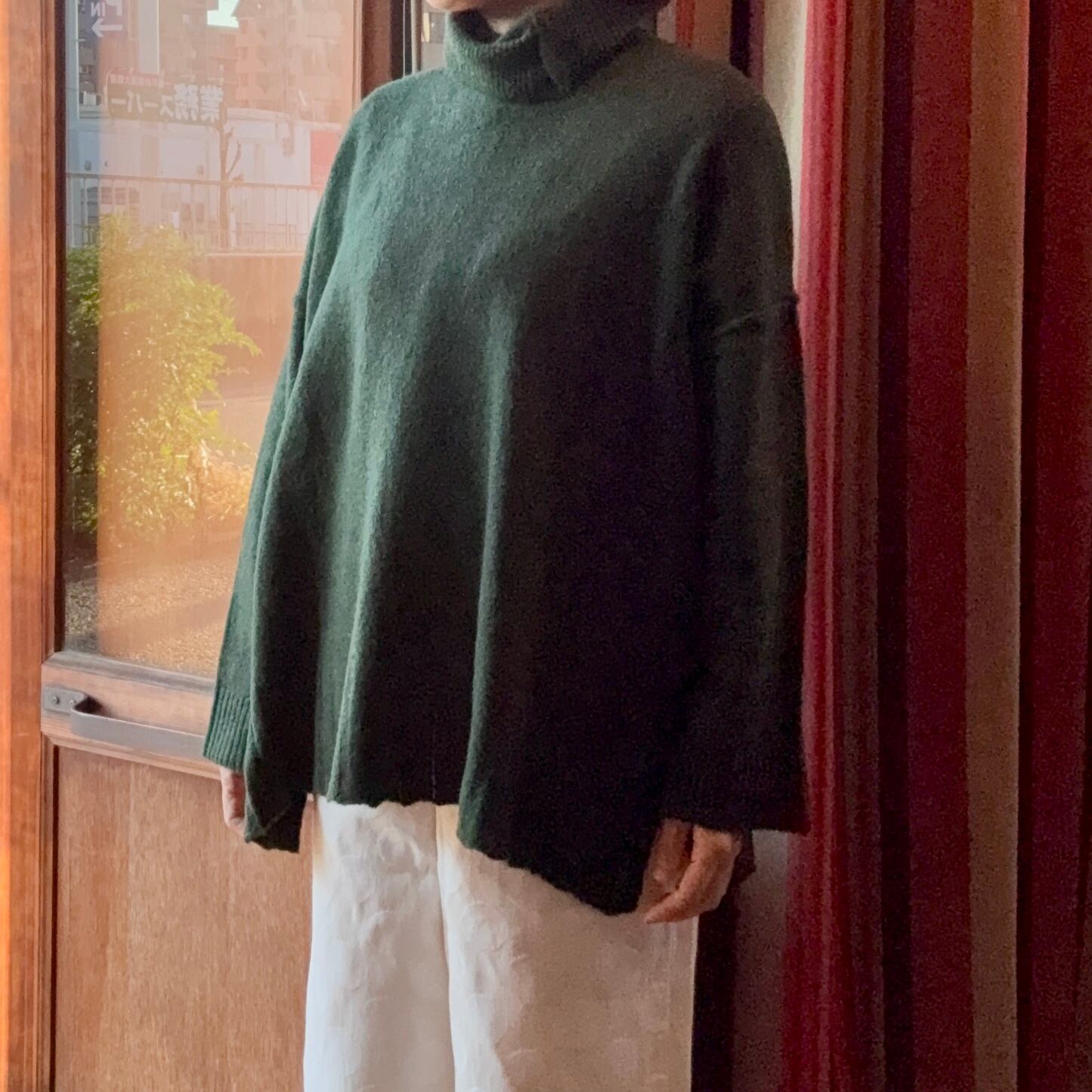 tukuroiのアルパカ混天竺タートルネックビッグシルエットニット・グリーン