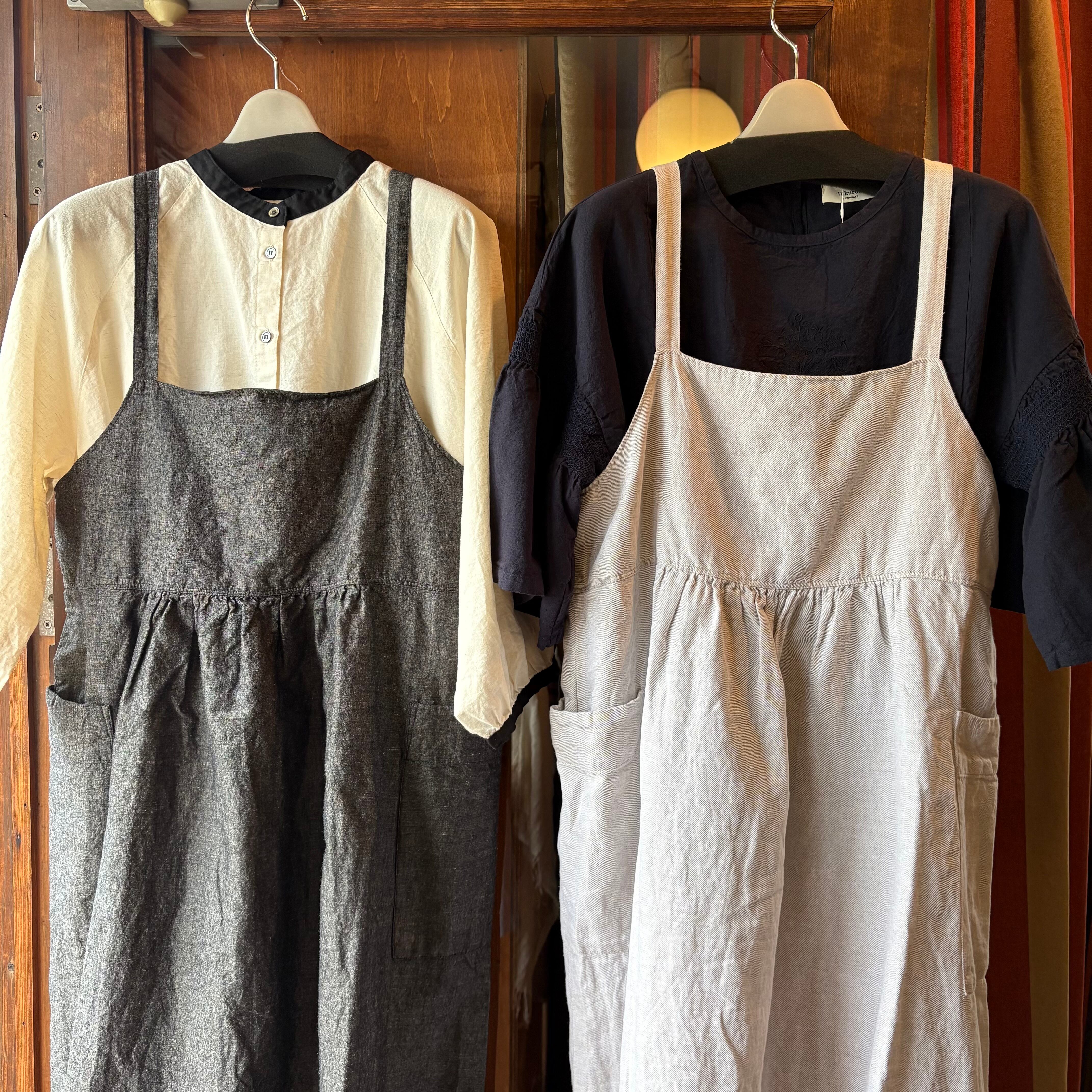 肩紐を腰に巻いて結べばロングスカートにもなる2wayタイプです。