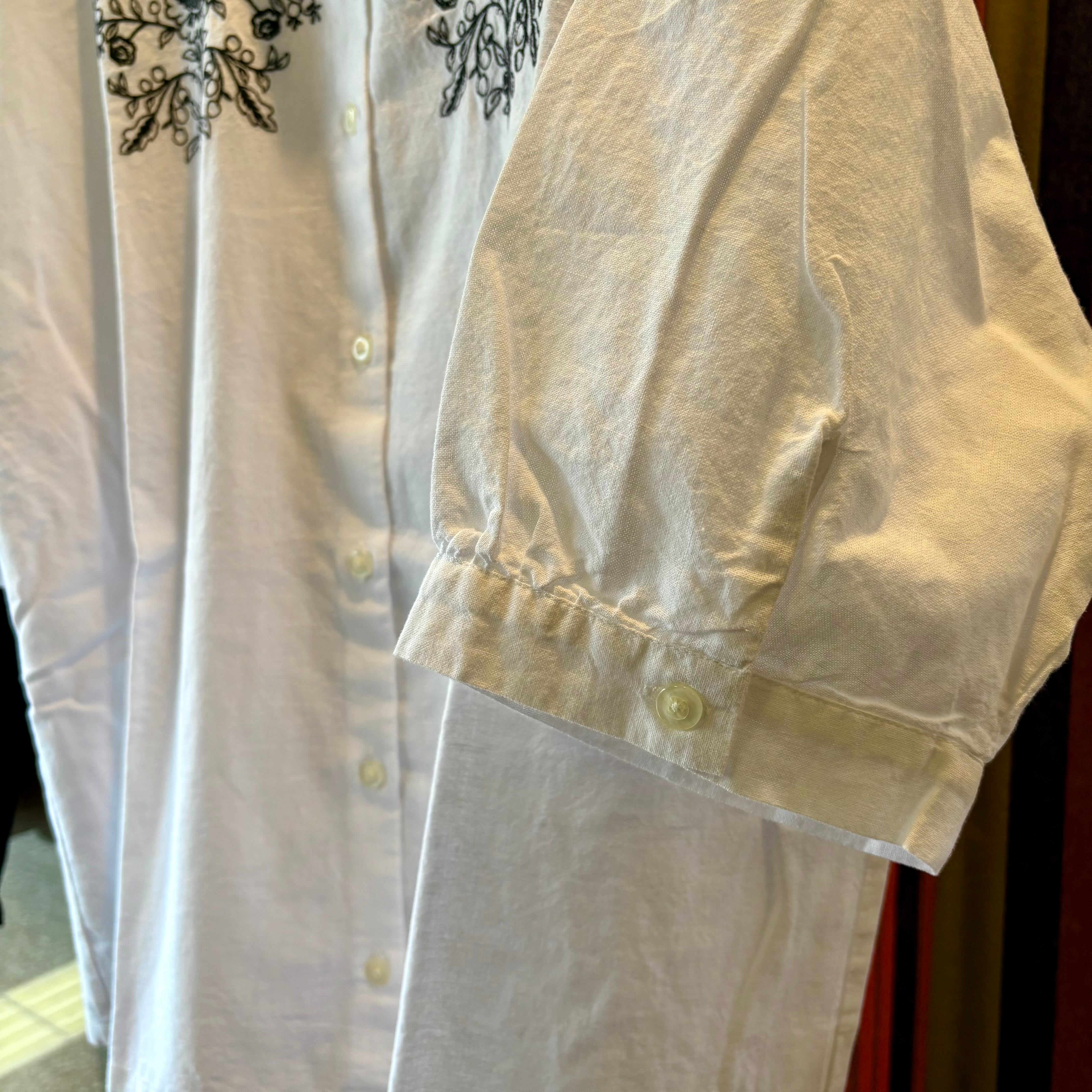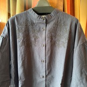 tukuroiのフラワー刺繍コットンリネンスタンドカラーブラウス。