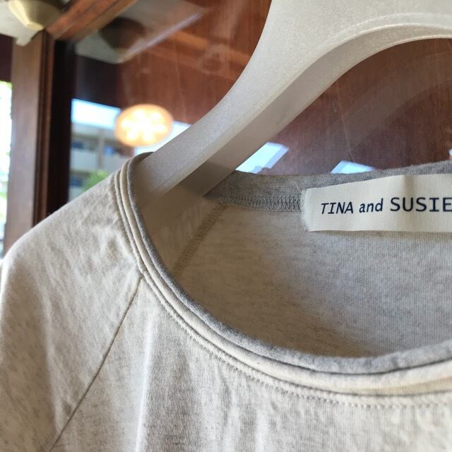 TINA and SUSIEのコットンコンパウンド天竺 配色ラグランスリーブカットソーです。