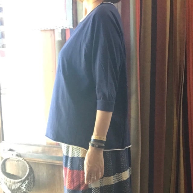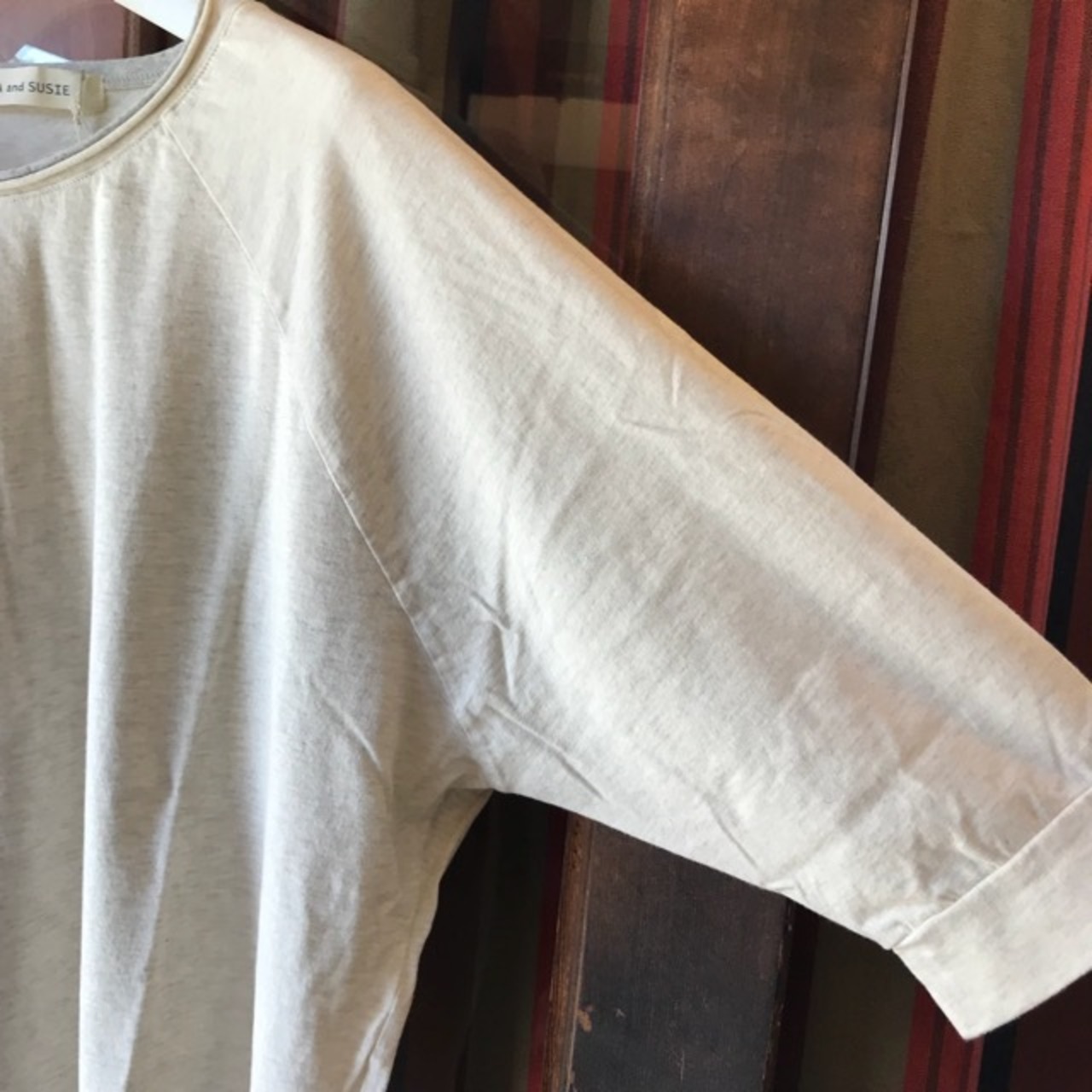 ラグランスリーブの七分袖。