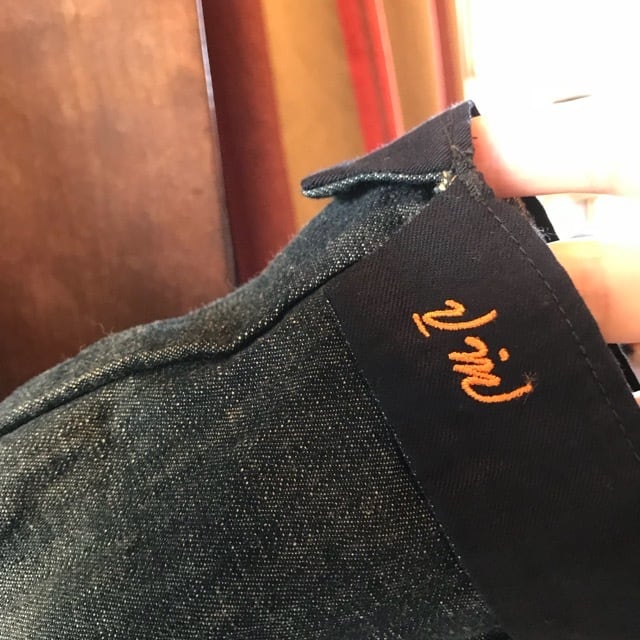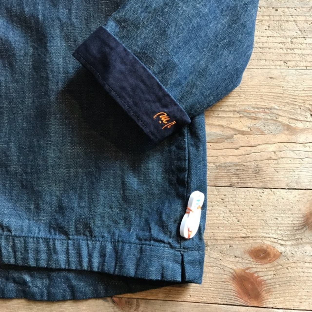 袖口折り返すと、オレンジ色でブランドロゴが刺繍されています。