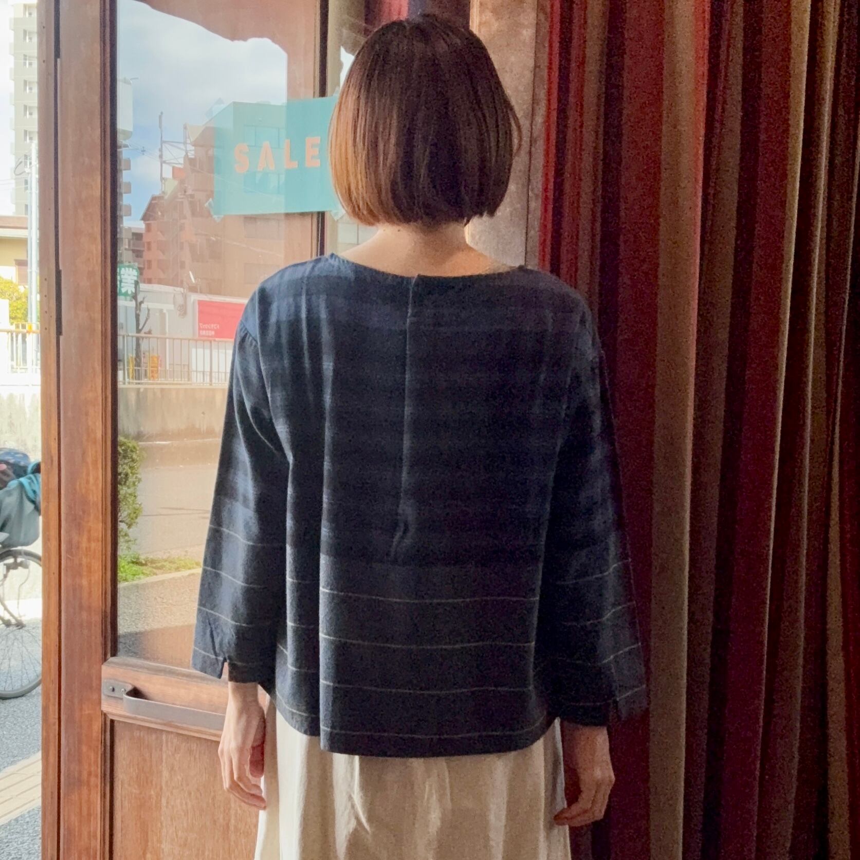 ドロップショルダー、ゆったり身幅。