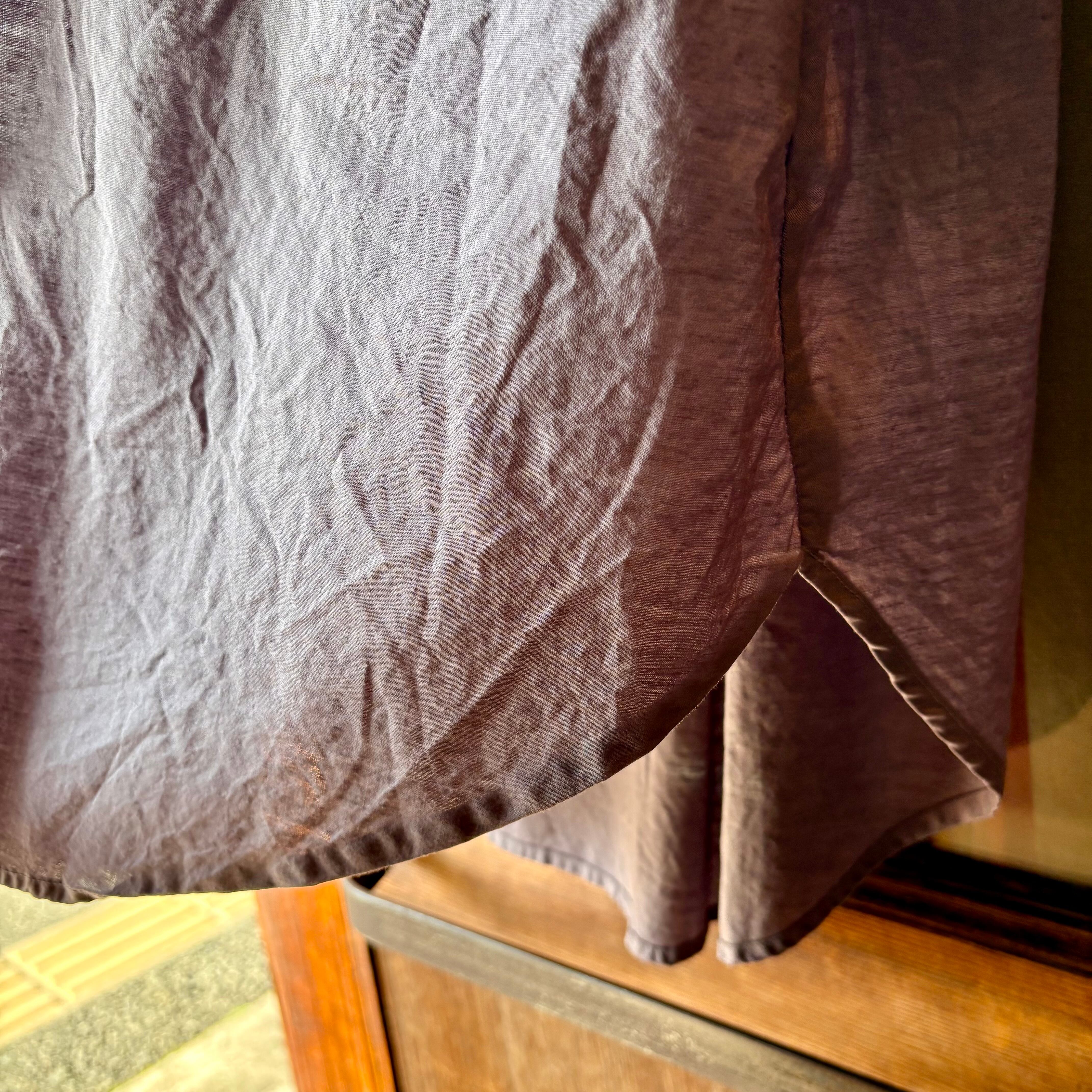 製品洗い加工を施していますのでくたっとしたシワ感などがございます。生地の特性とお考え下さい。