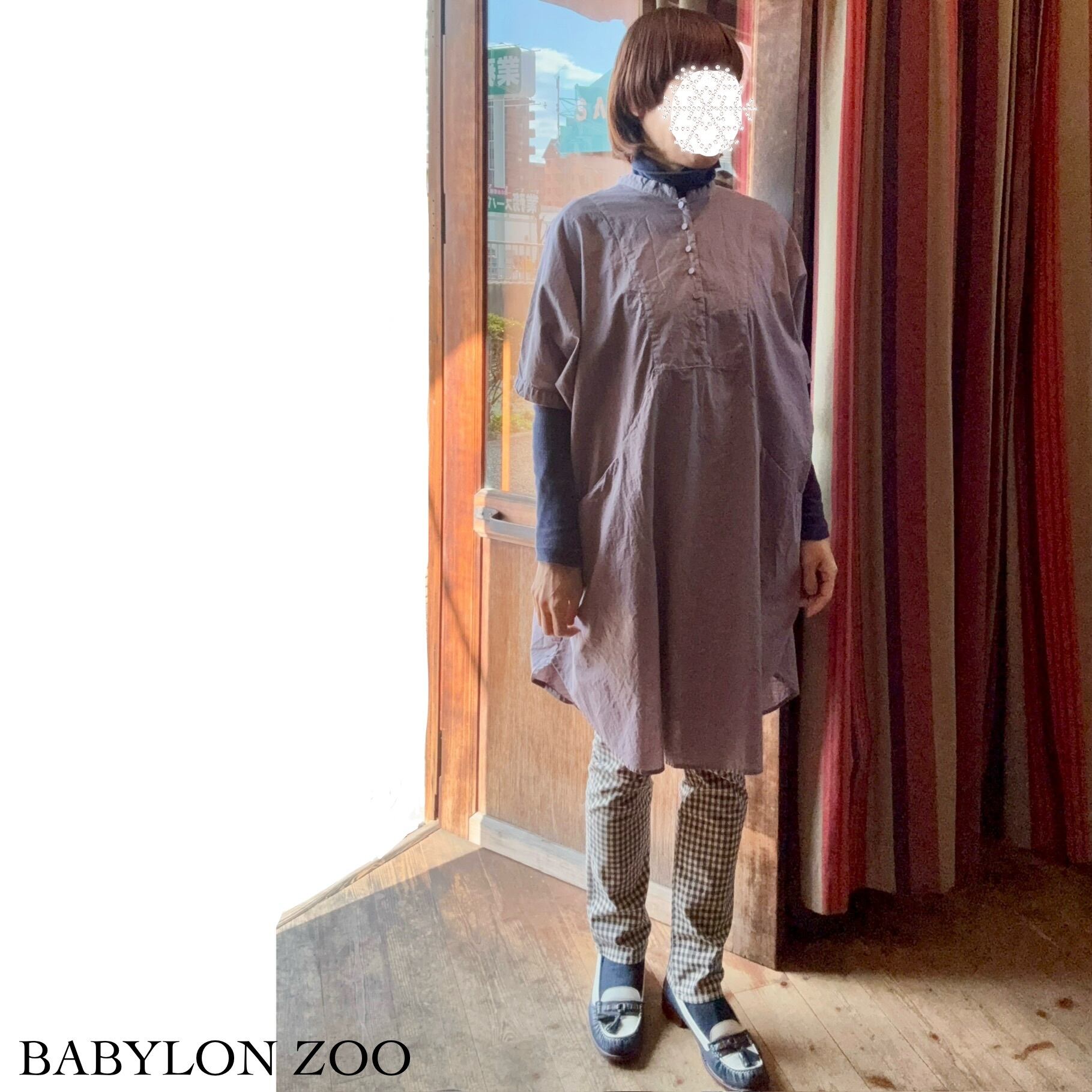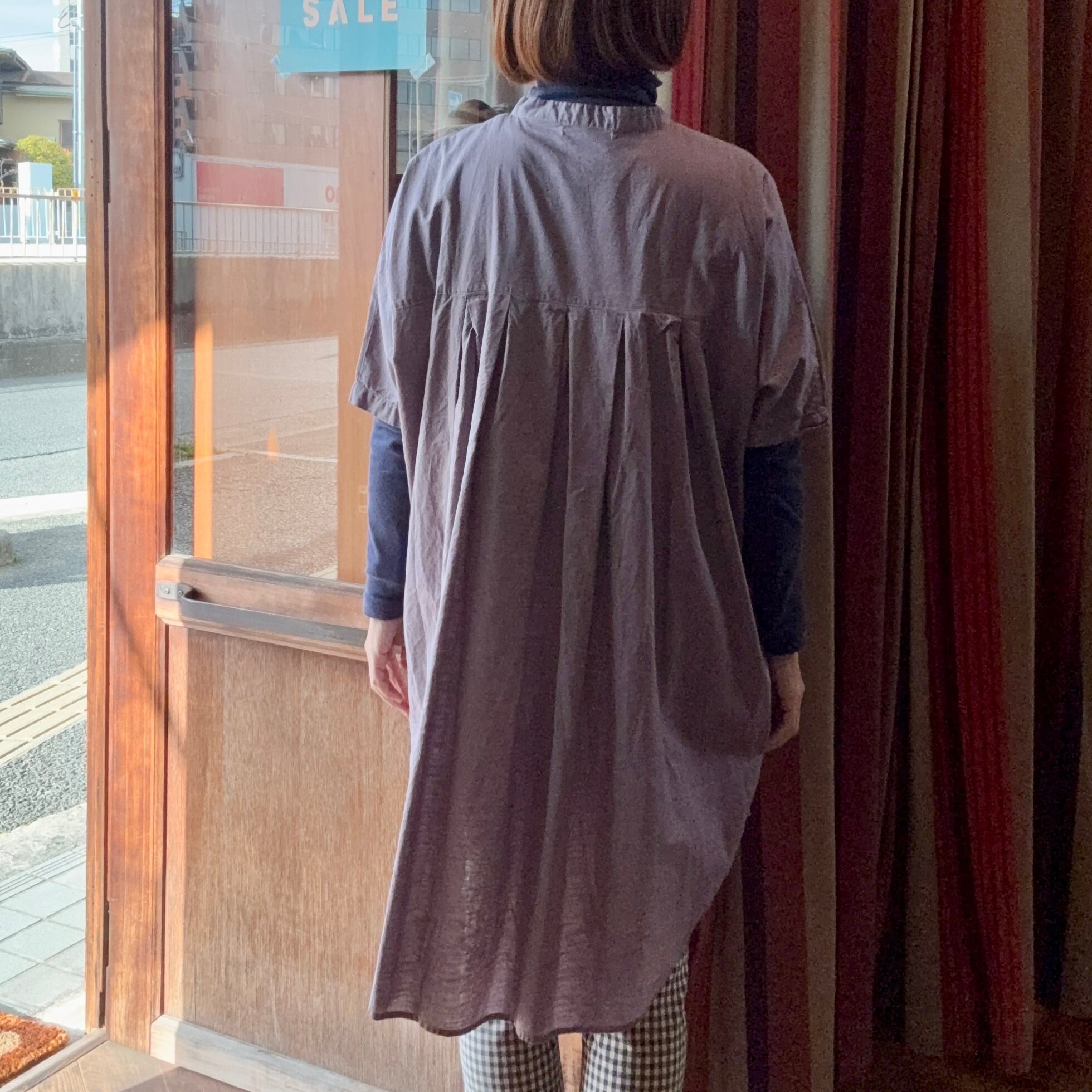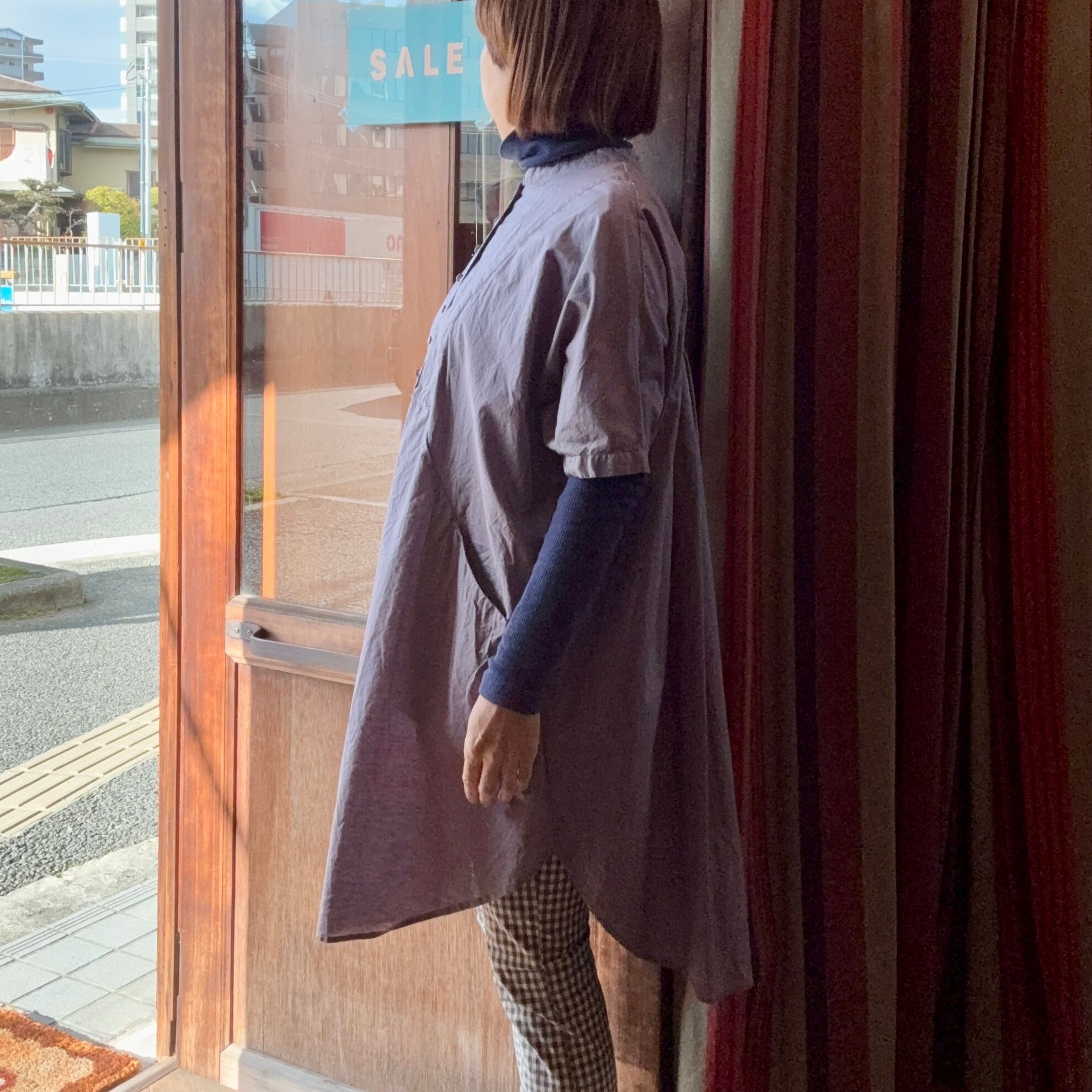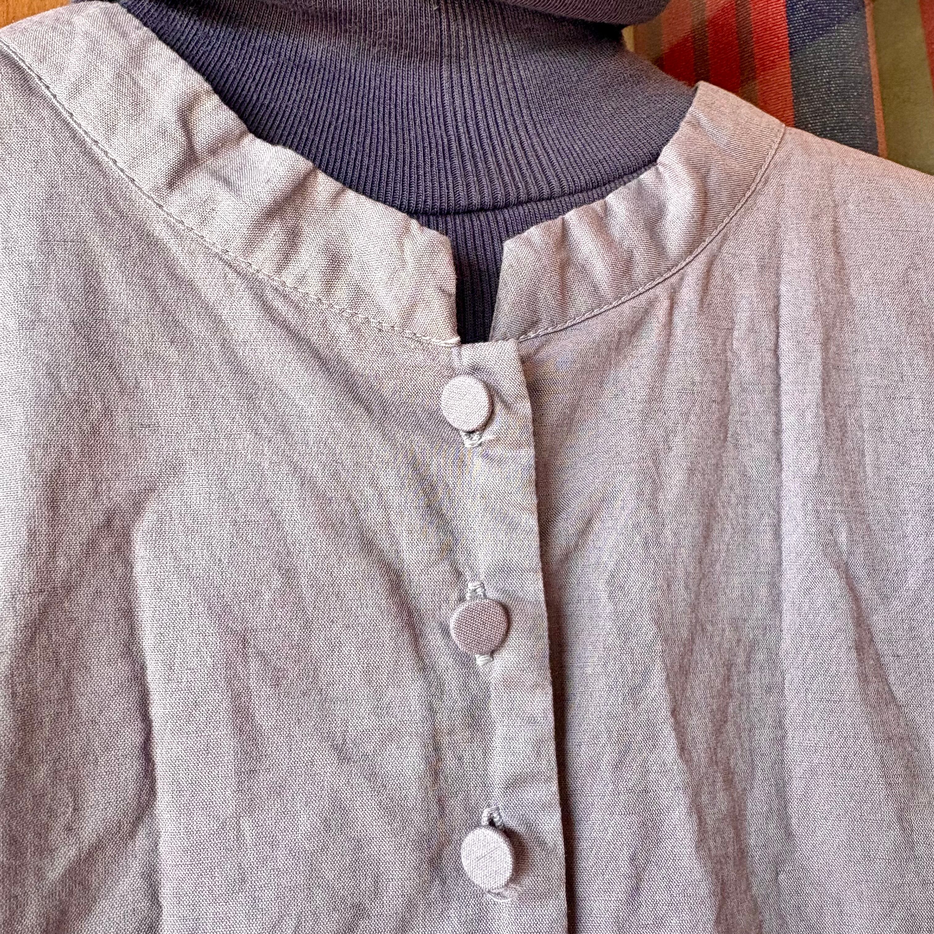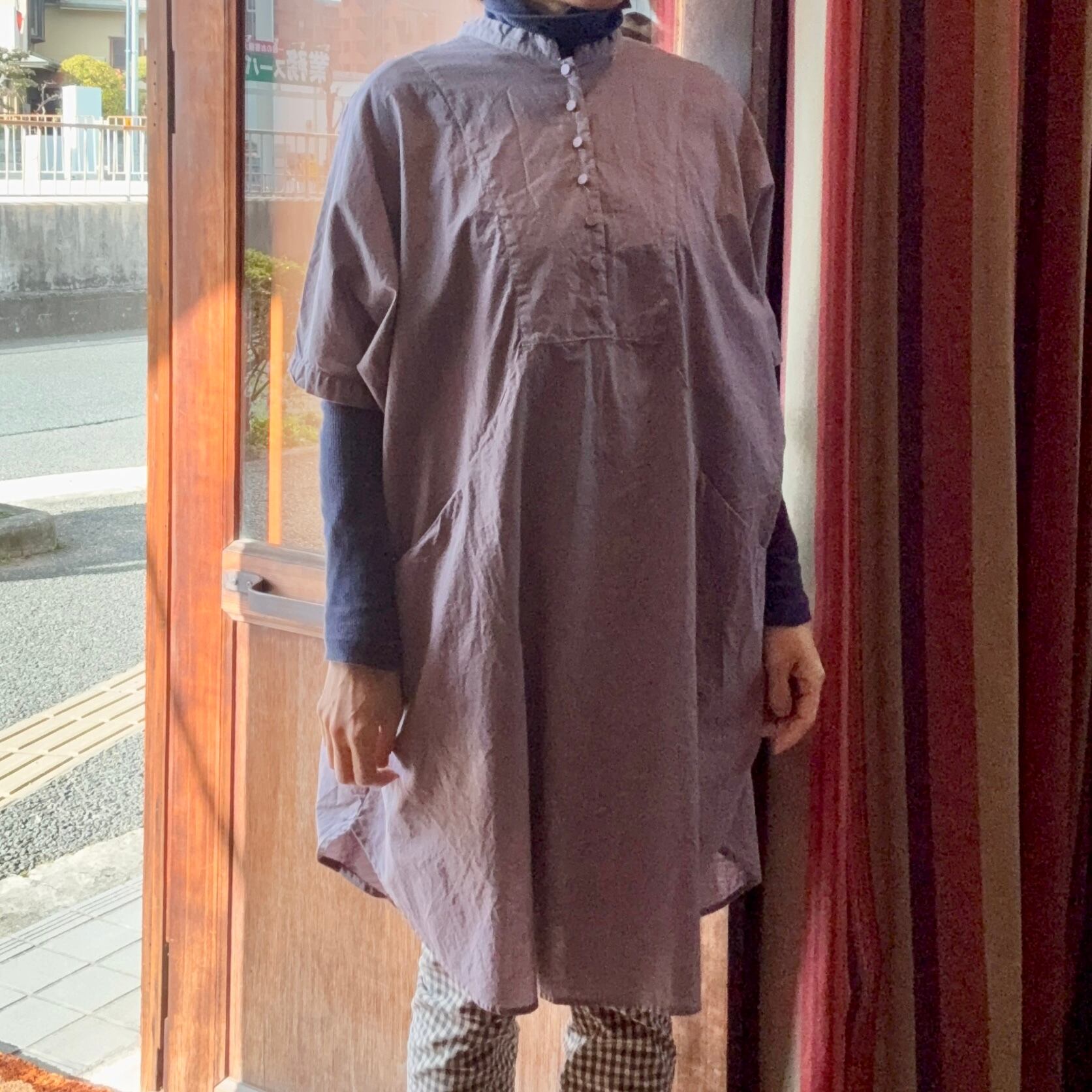 tukuroiのスタンドカラー五分袖チュニックブラウス。
