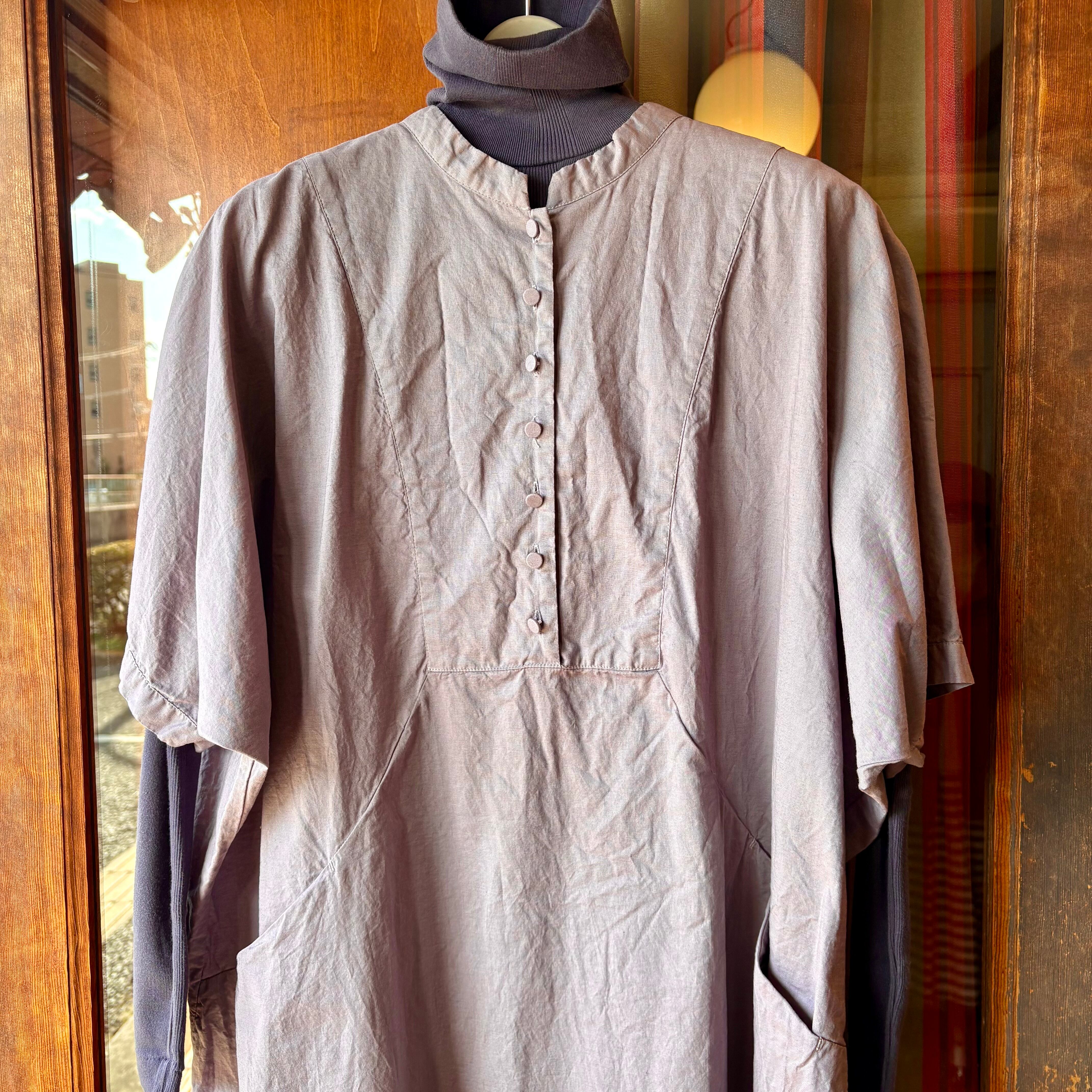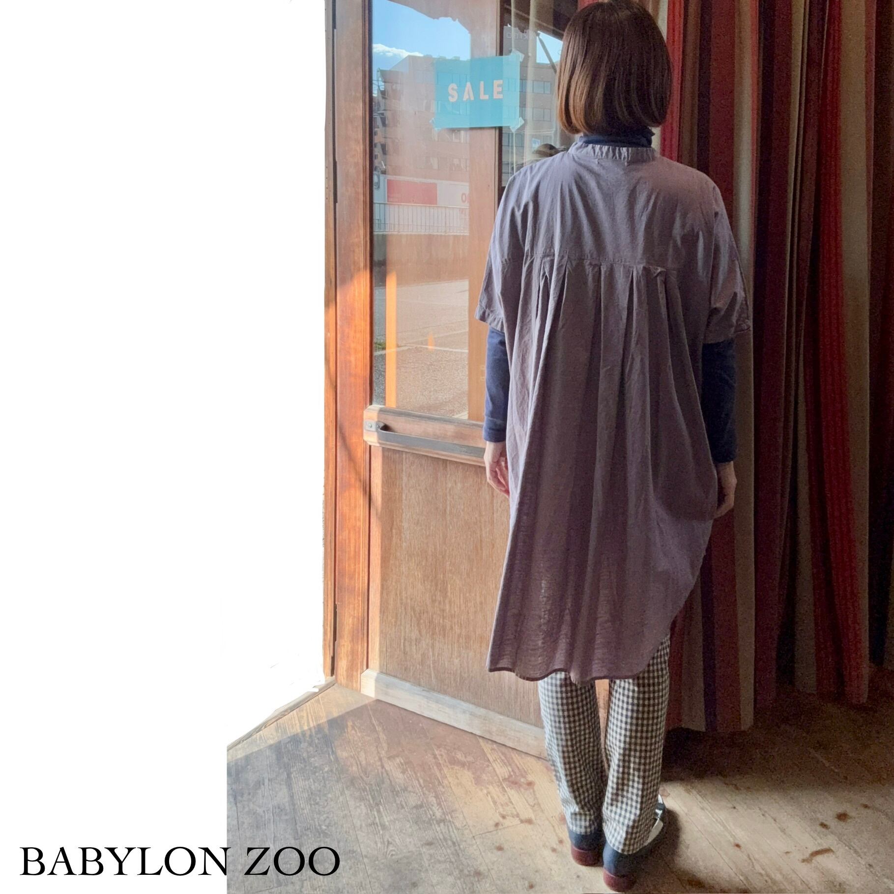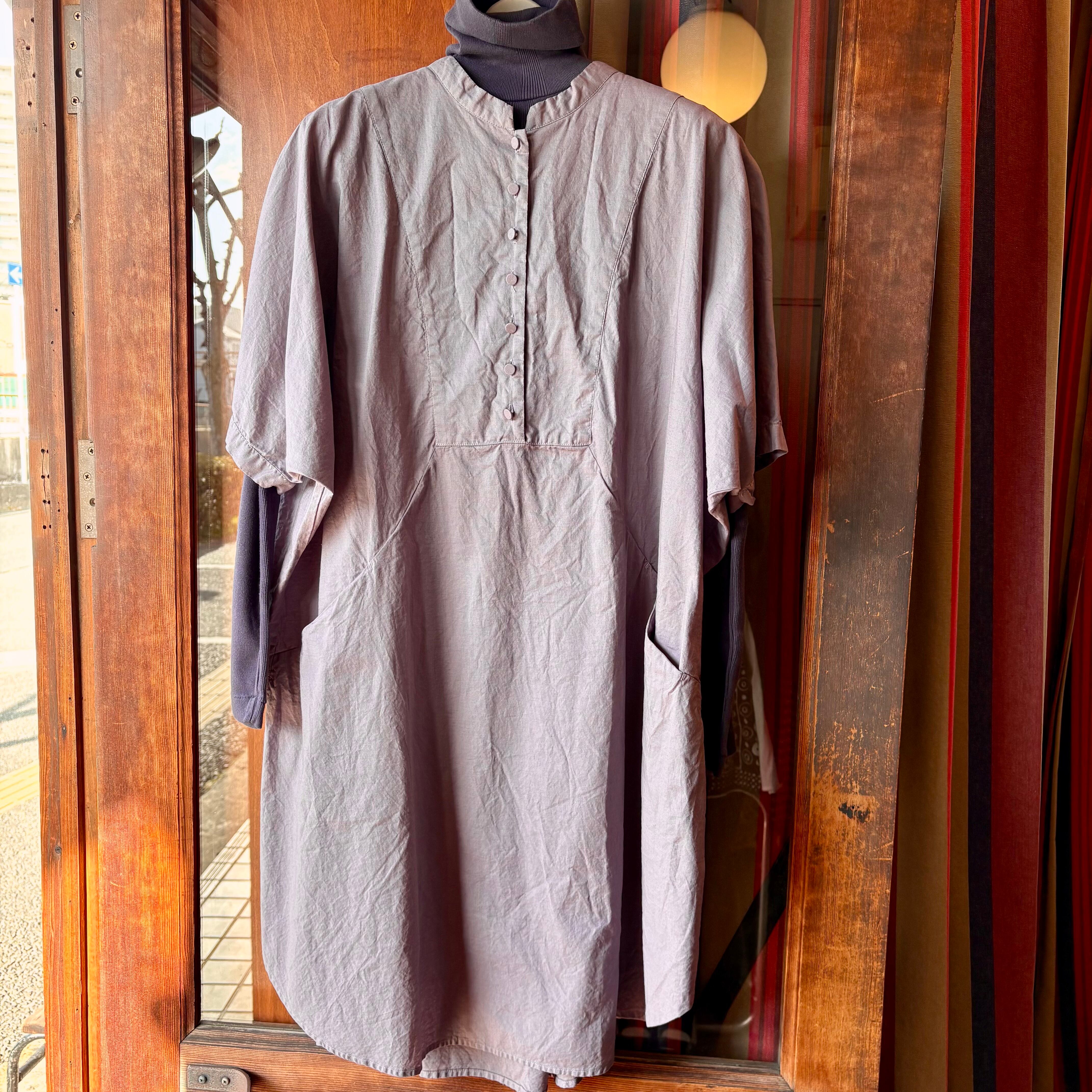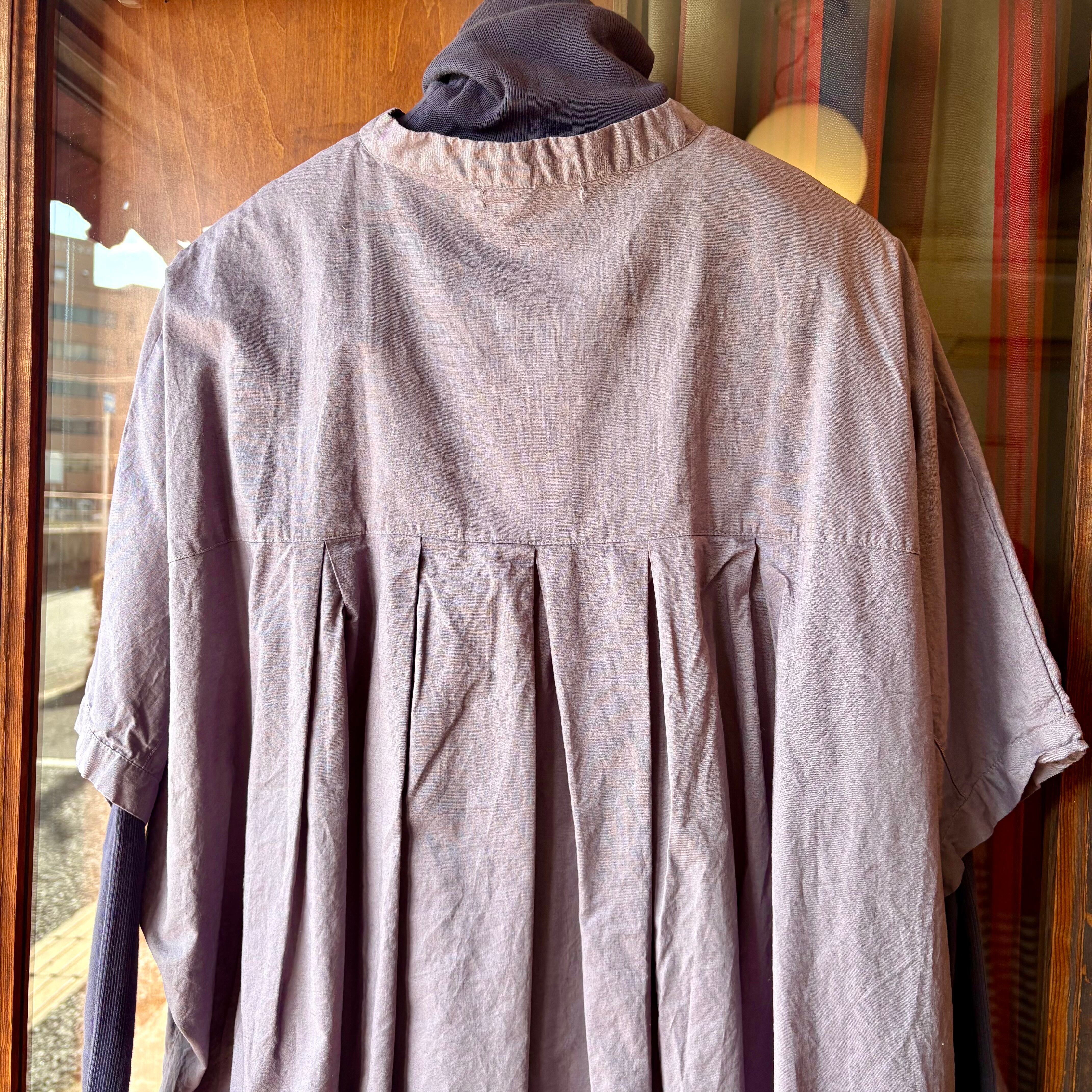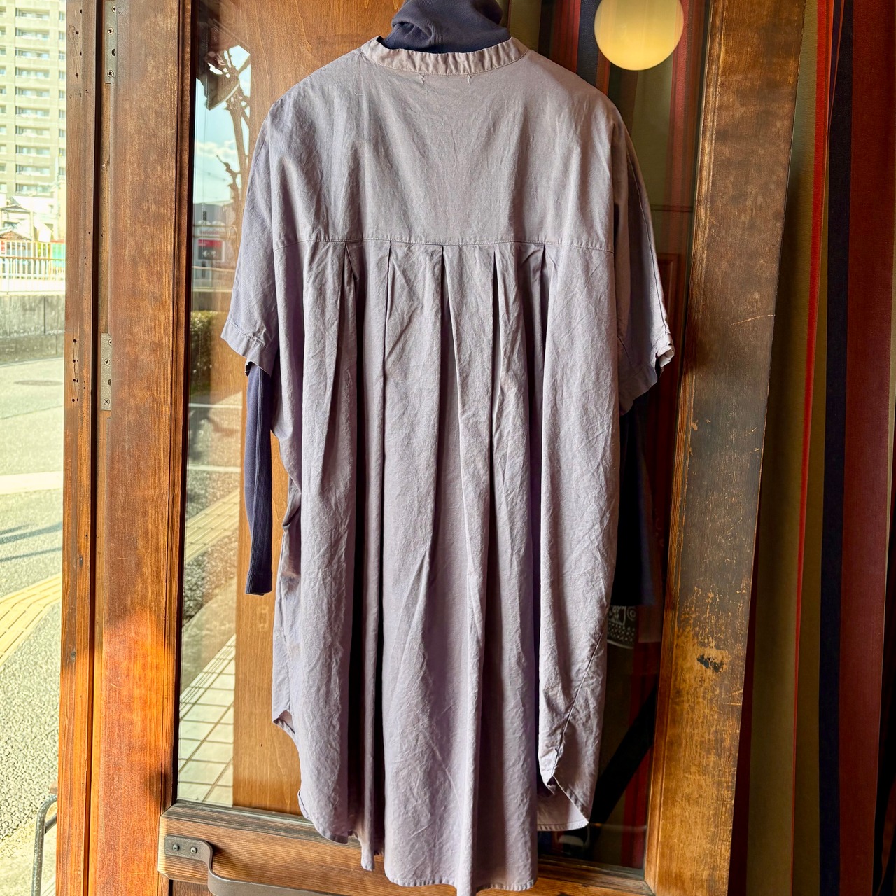 tukuroiのスタンドカラー五分袖チュニックブラウス。
