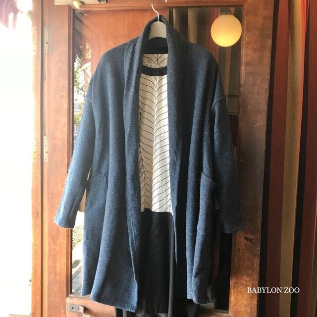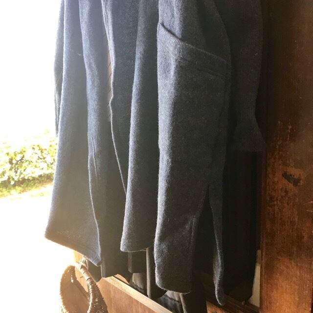 ゆったりとした身幅、ドロップショルダーなので、中に着る服も選ばずフンワリと羽織れます。