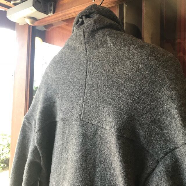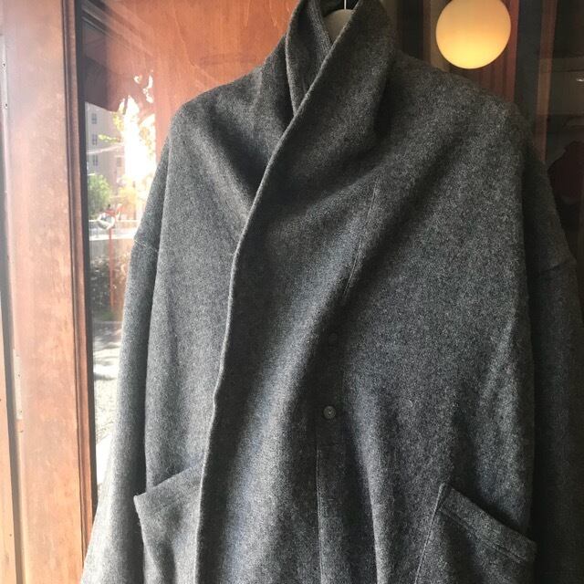襟周りから前立てにかけての切り替えの、ストールを巻いているようなボリューム感が首まわりを暖めてくれます。