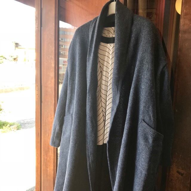 SORTEのローゲージウール天竺 ストールカラーロングカーディガンです。
