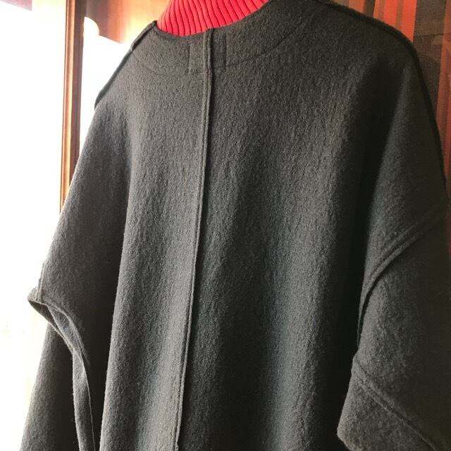 ウールの圧縮天竺にナチュラルなポコポコ感をプラスした加工をすることで、生地が揉まれ膨らみと暖かさが感じられる素材となっています。