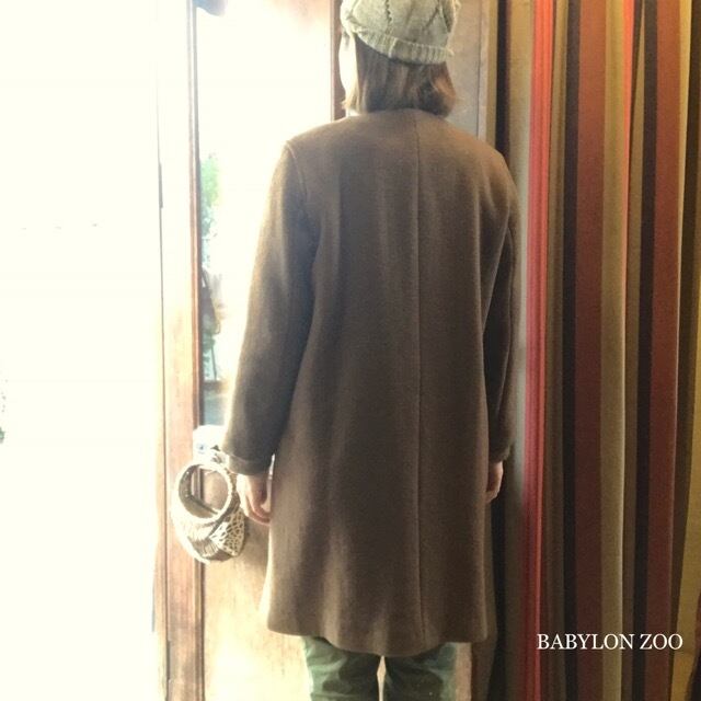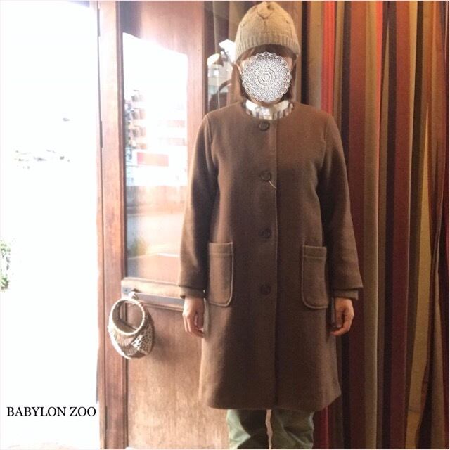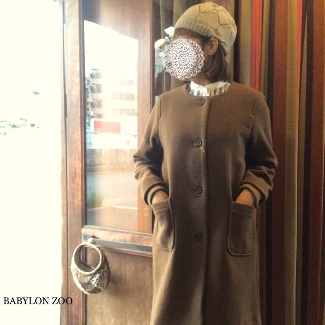 blue willowのノーカラー袖リブコート