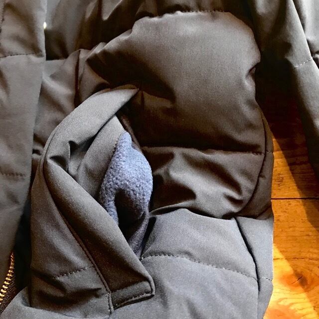 ダウンが飛び出しにくくする加工を施し、通常使われるダウンのパックを省くことで軽量化を実現しています。