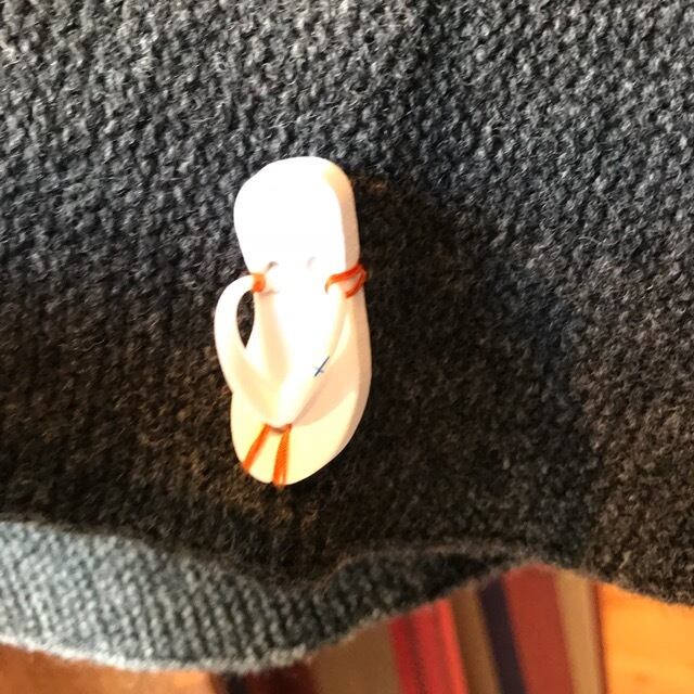 左裾にブランドアイコンのミニチュアビーチサンダルが付いています。