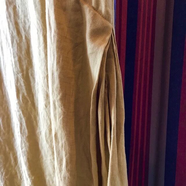 サイドにたくさんのタックを施したゆったりとしたシルエットなので、秋冬シーズンには中にタートルや長袖カットソーを合わせて。