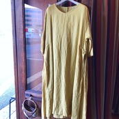 ゆるやかなVネックが、ボリュームのあるワンピースをすっきりと見せてくれています。