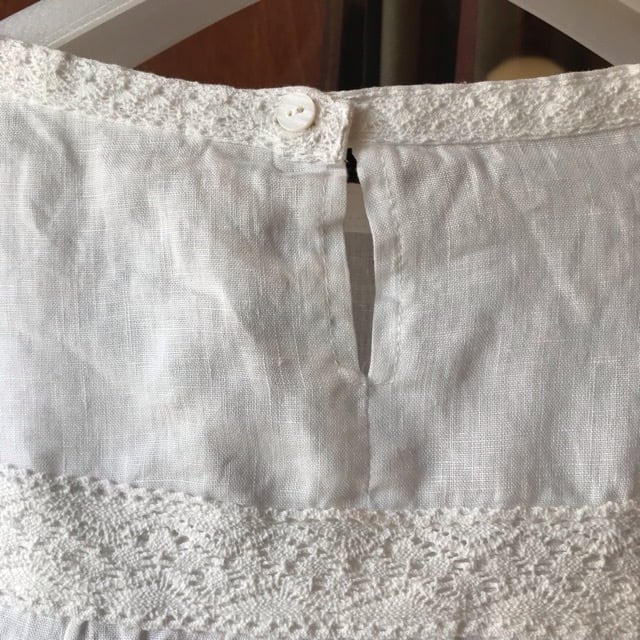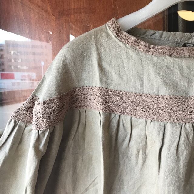 ギャザー切替部分と衿ぐりにレースをあしらっています。