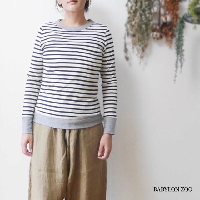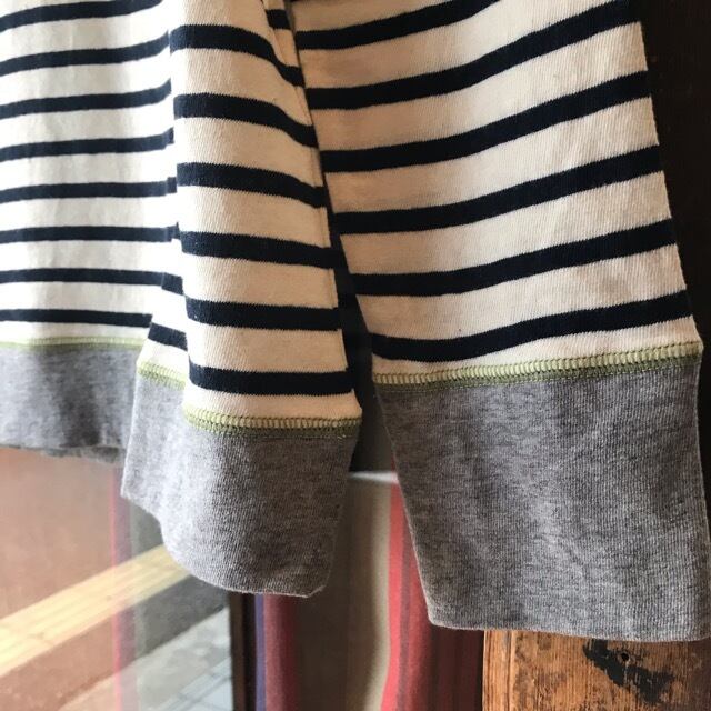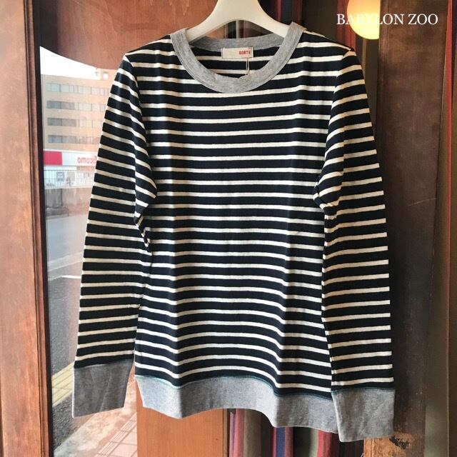 SORTEのシエスタコットン×ウールボーダー クルーネック切替Tシャツです。
