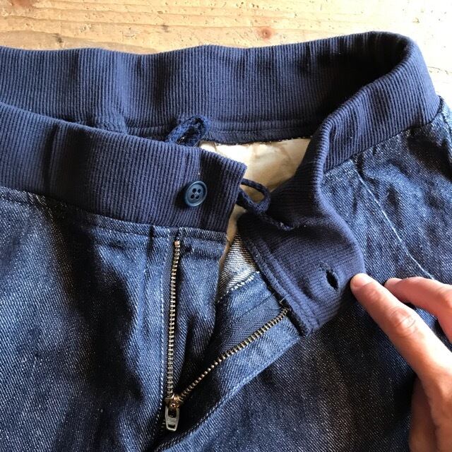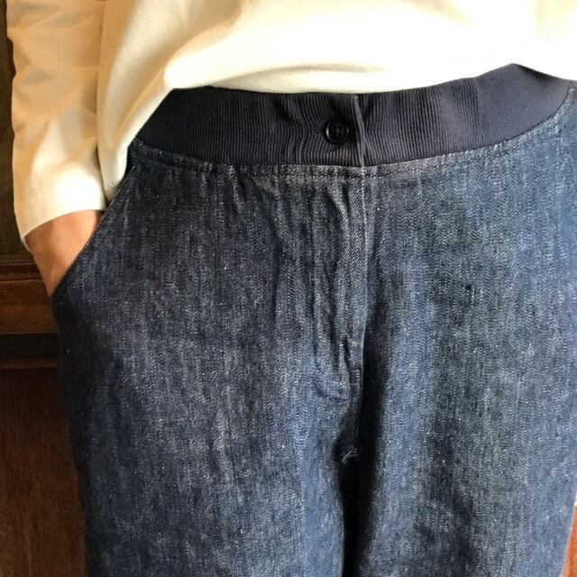 nachukaraのリネンデニム リブドッキングサルエルパンツです。