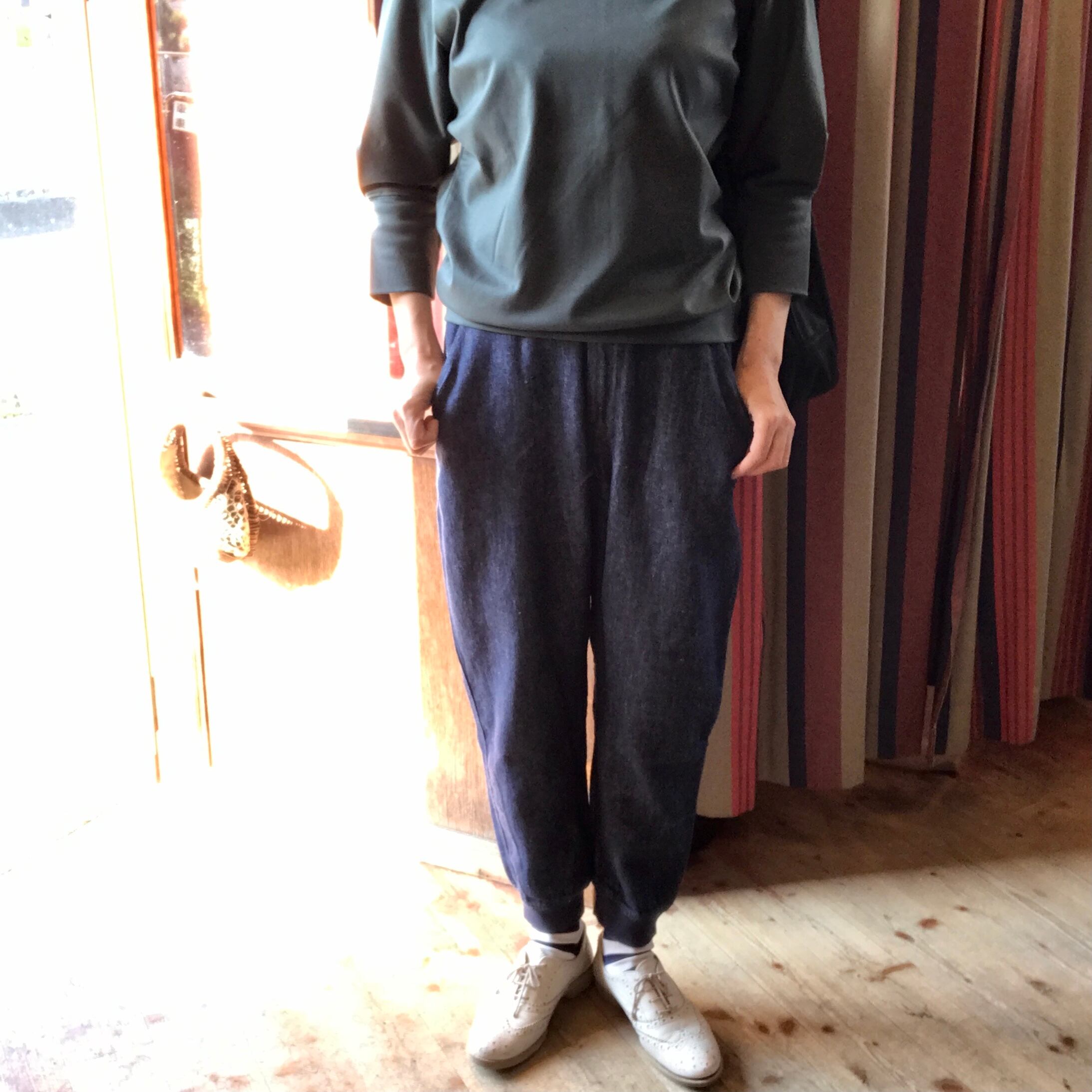 サルエルパンツといっても、ヒップまわりがややゆったりとしたくらいで特に変わったデザインではないので、皆さんにお試しいただきやすいデザインです。