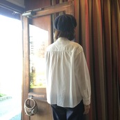 ドロップショルダー、ゆったり身幅の楽チンシルエットのブラウスです。