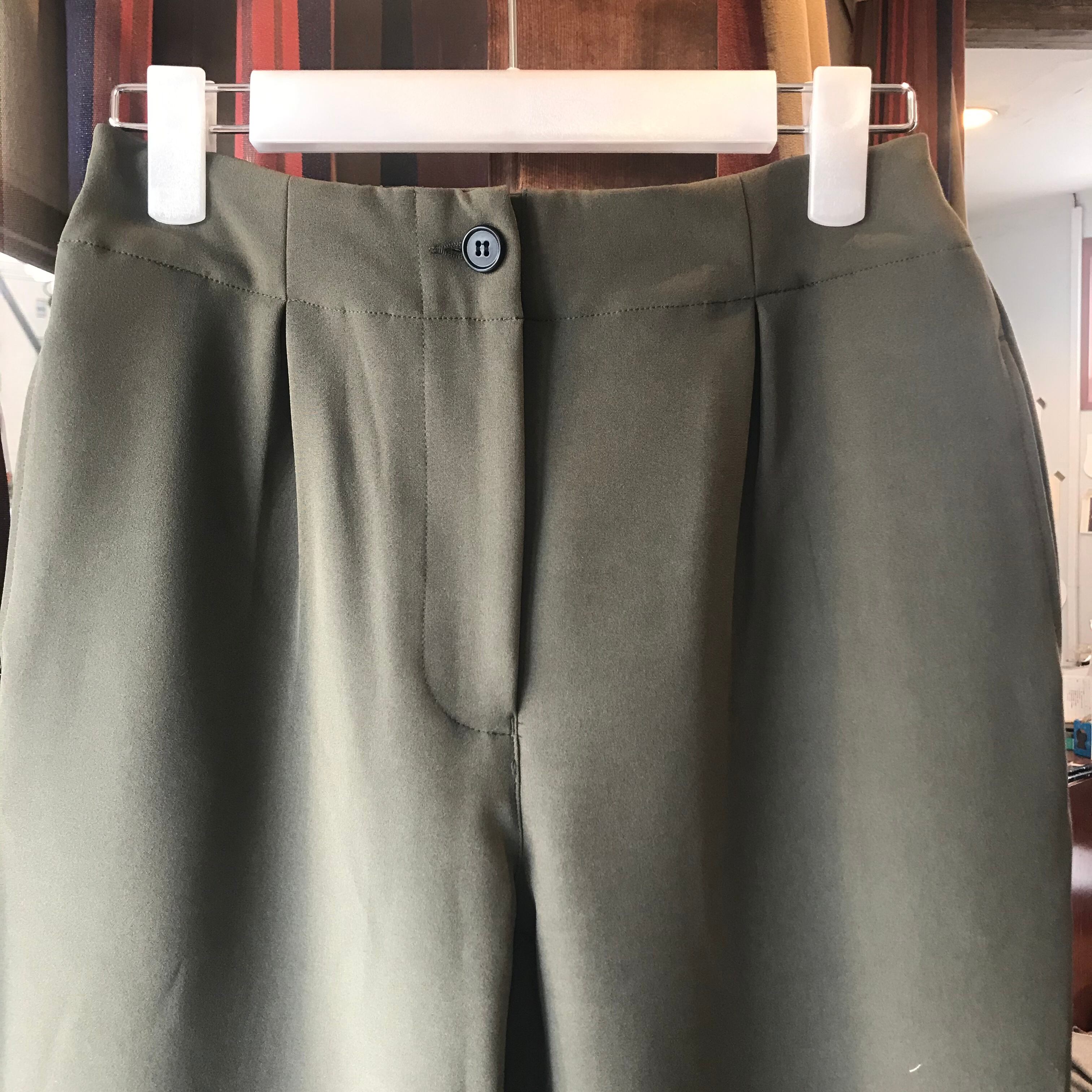 ポリエステル素材のサラッとした落ち感のあるテーパードパンツ。