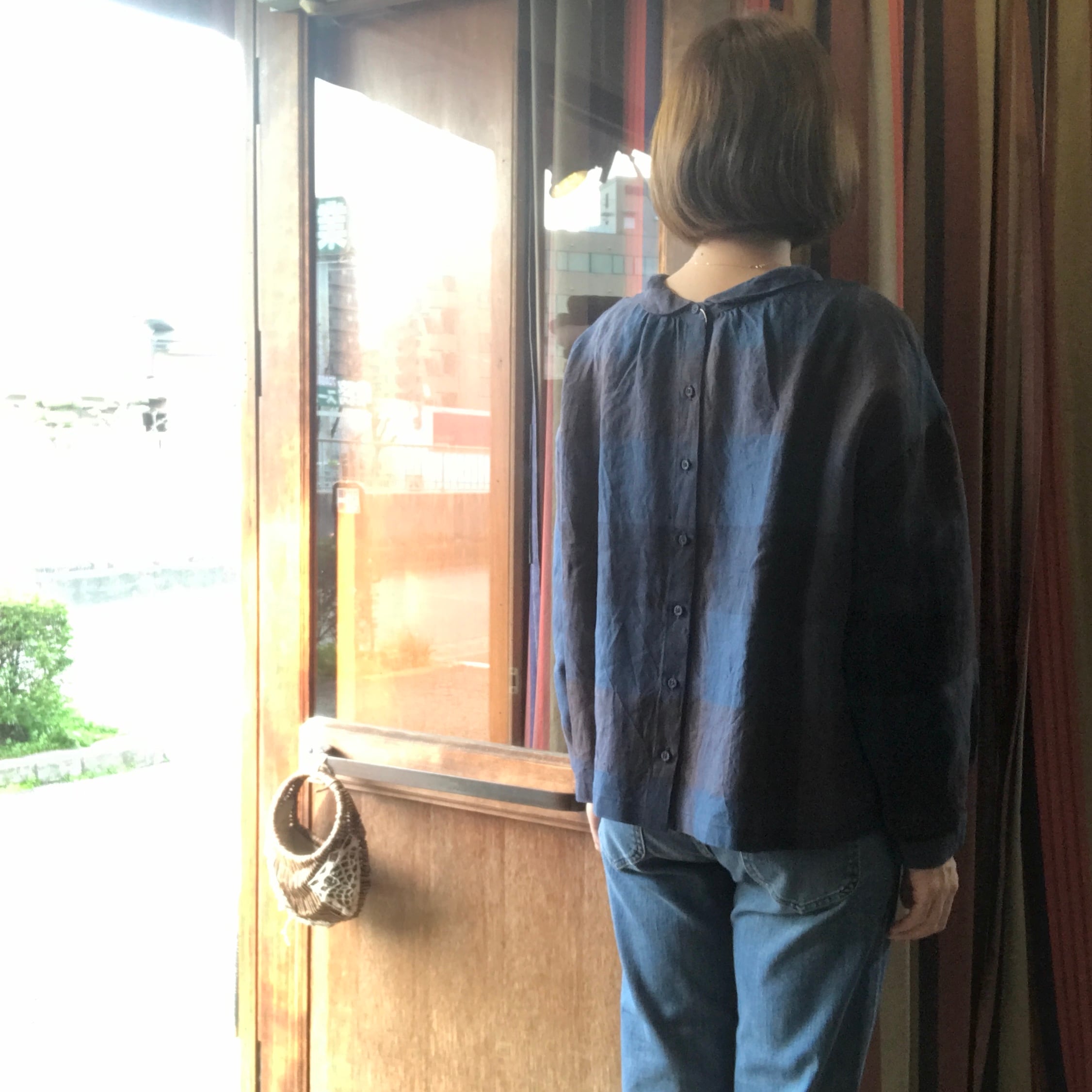 ボタンの面を前にして羽織るのも涼しげでよい感じ。