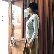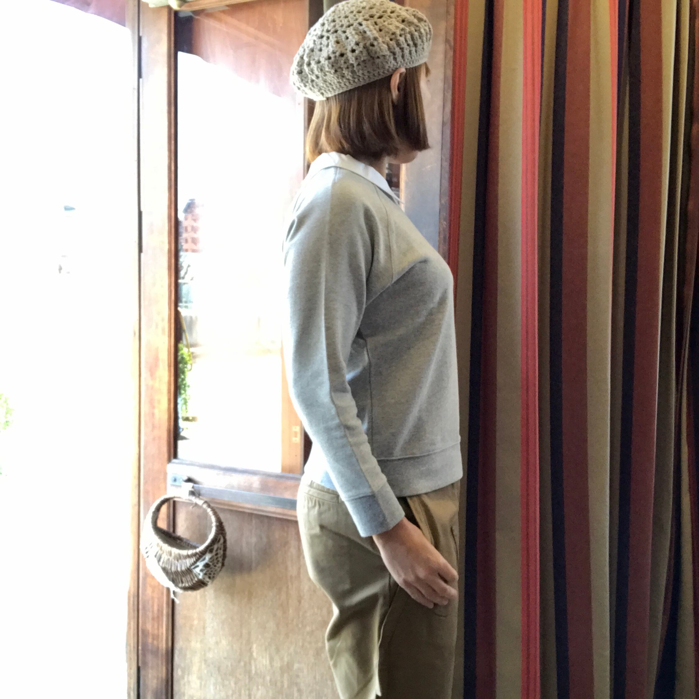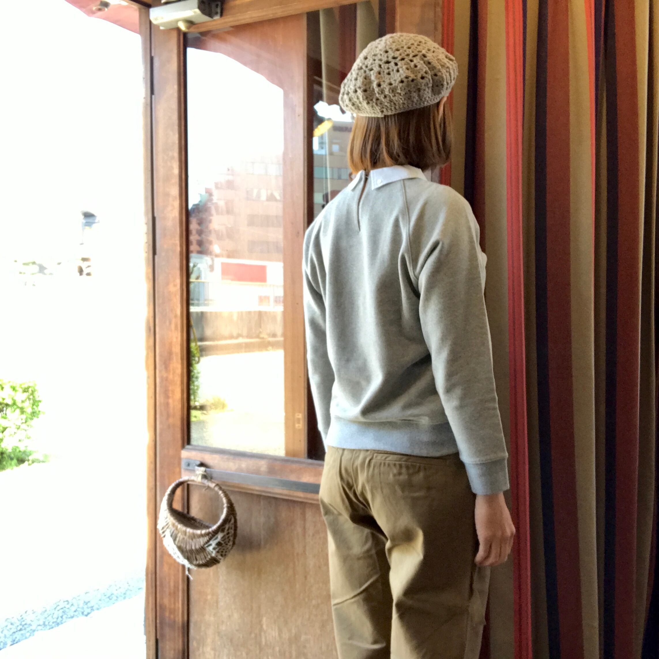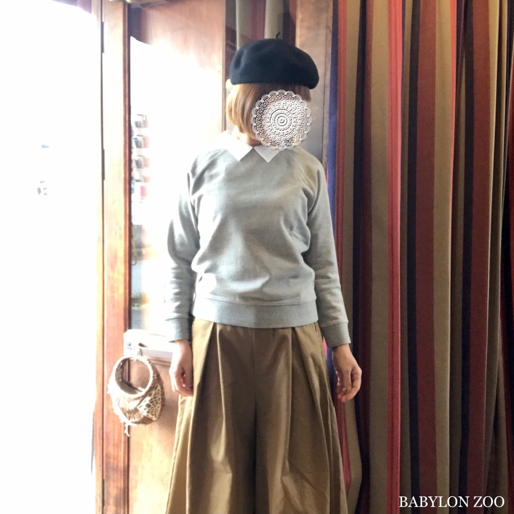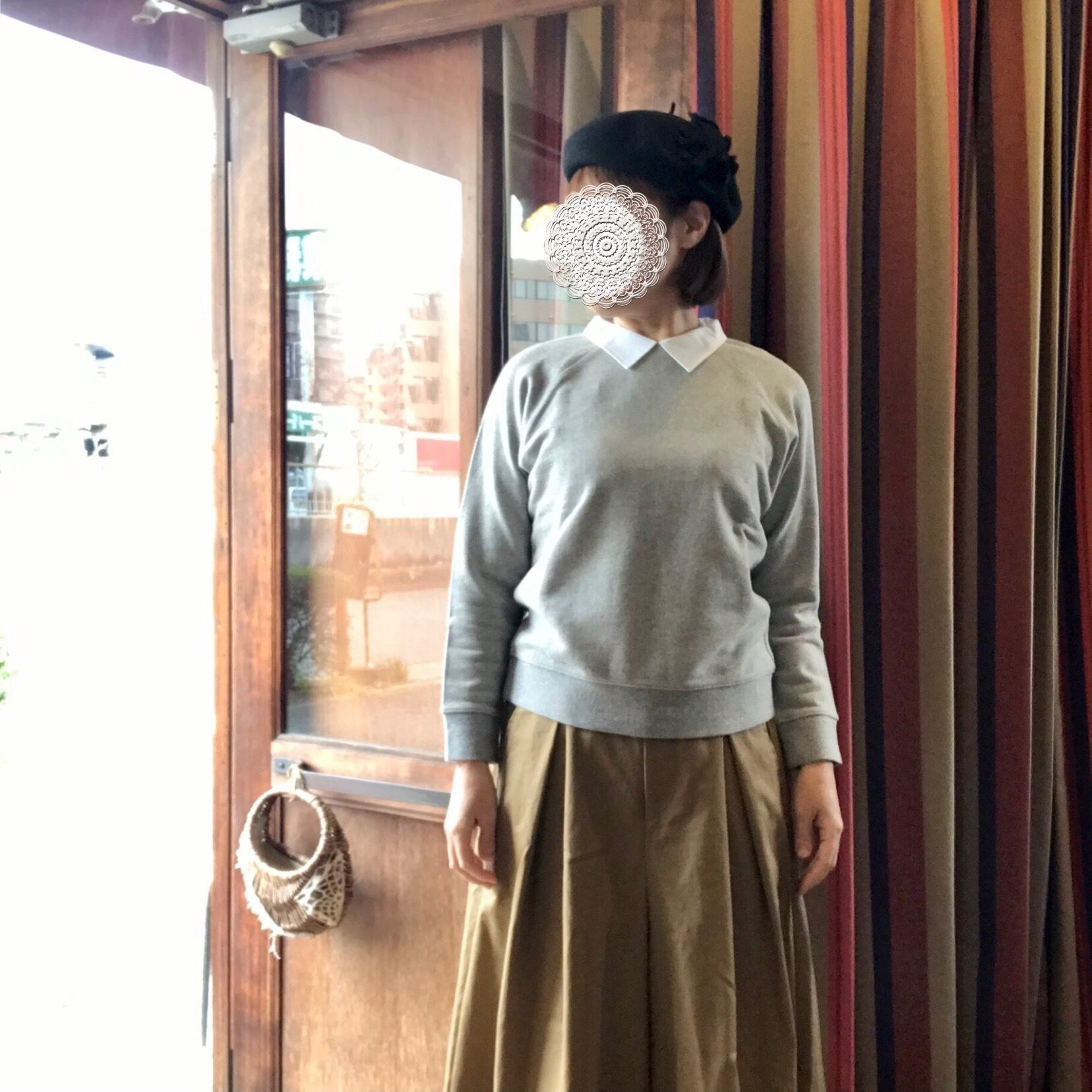 パンツでコーディネートしていますが、すっきりとしたシルエットのトレーナーなのでスカートにも可愛く合いそう。