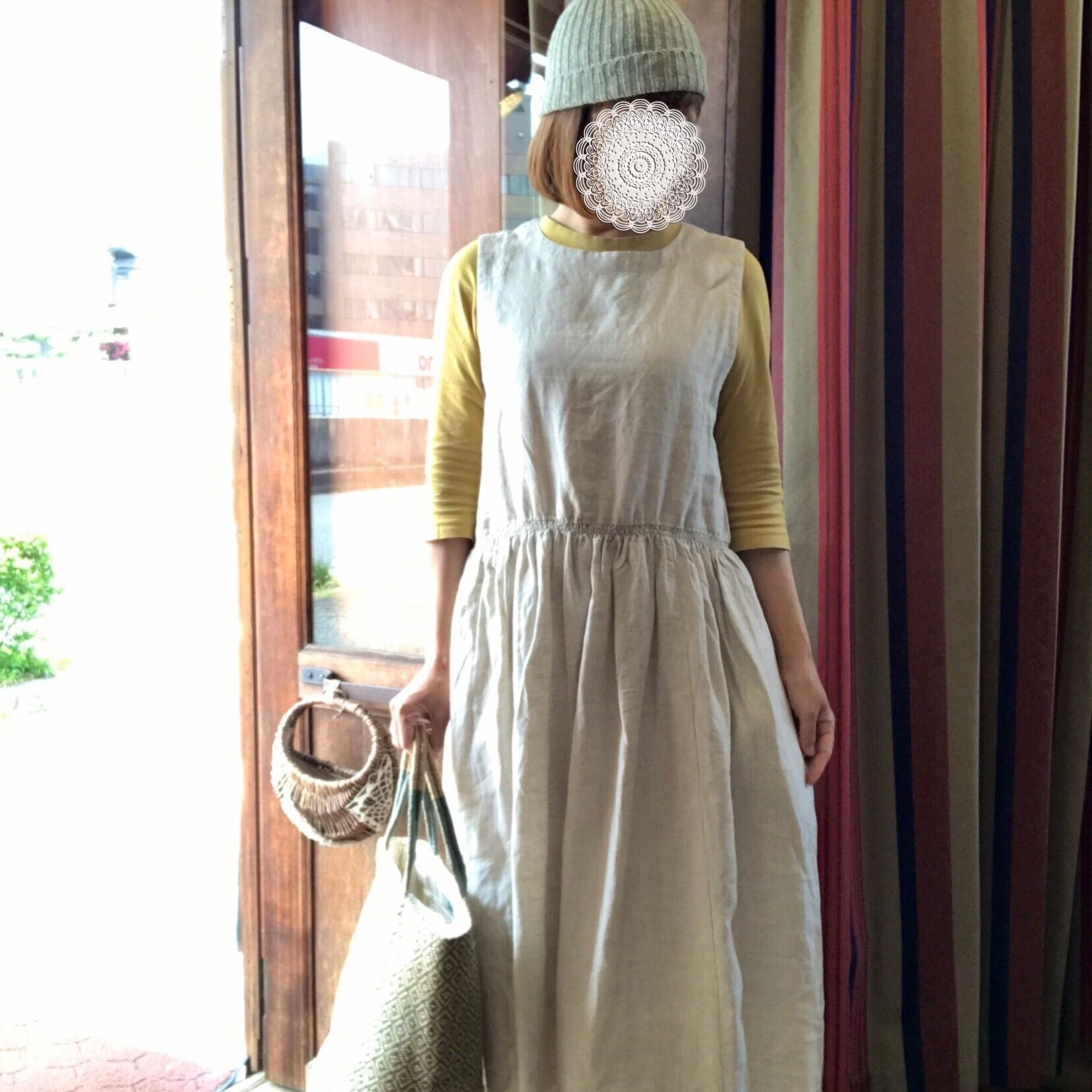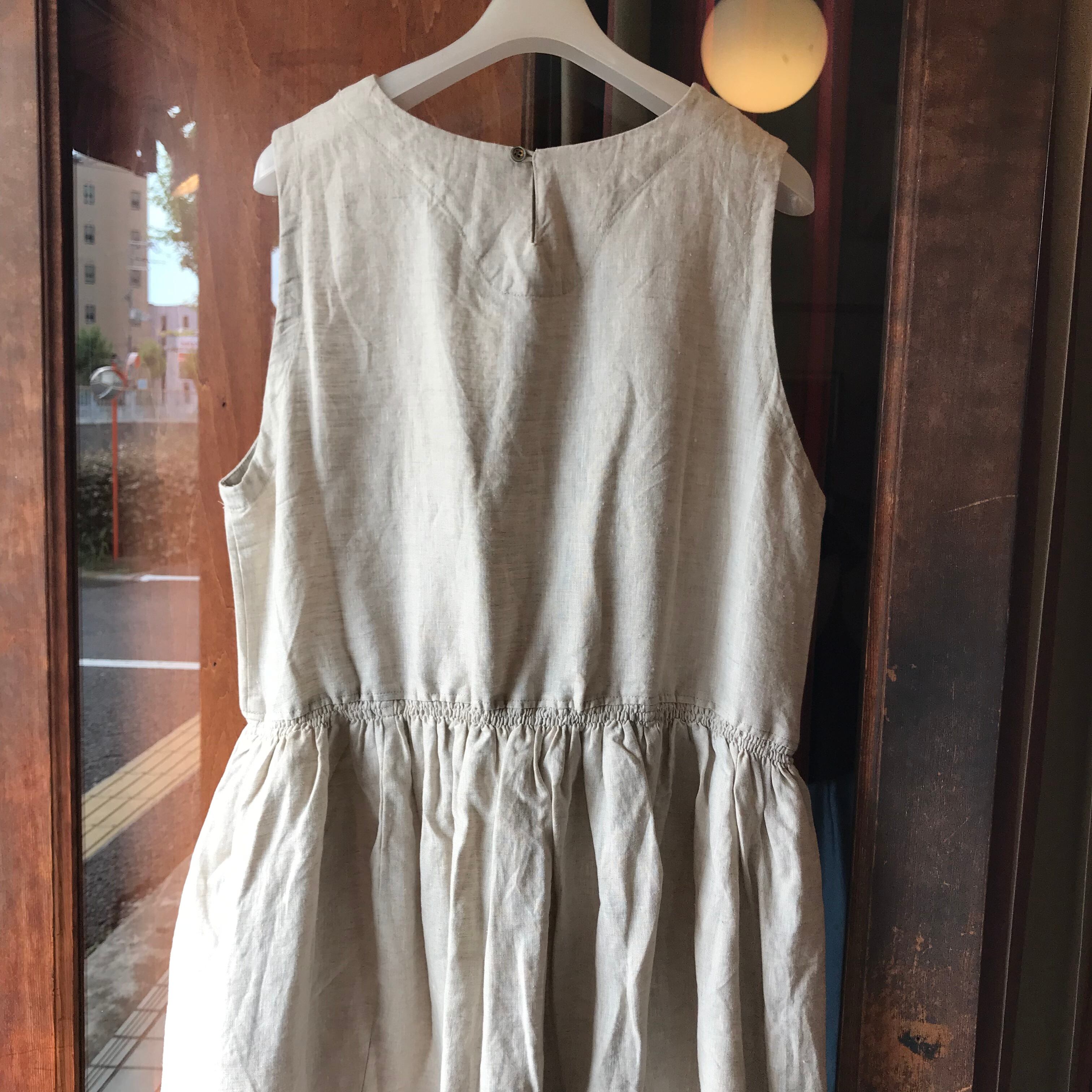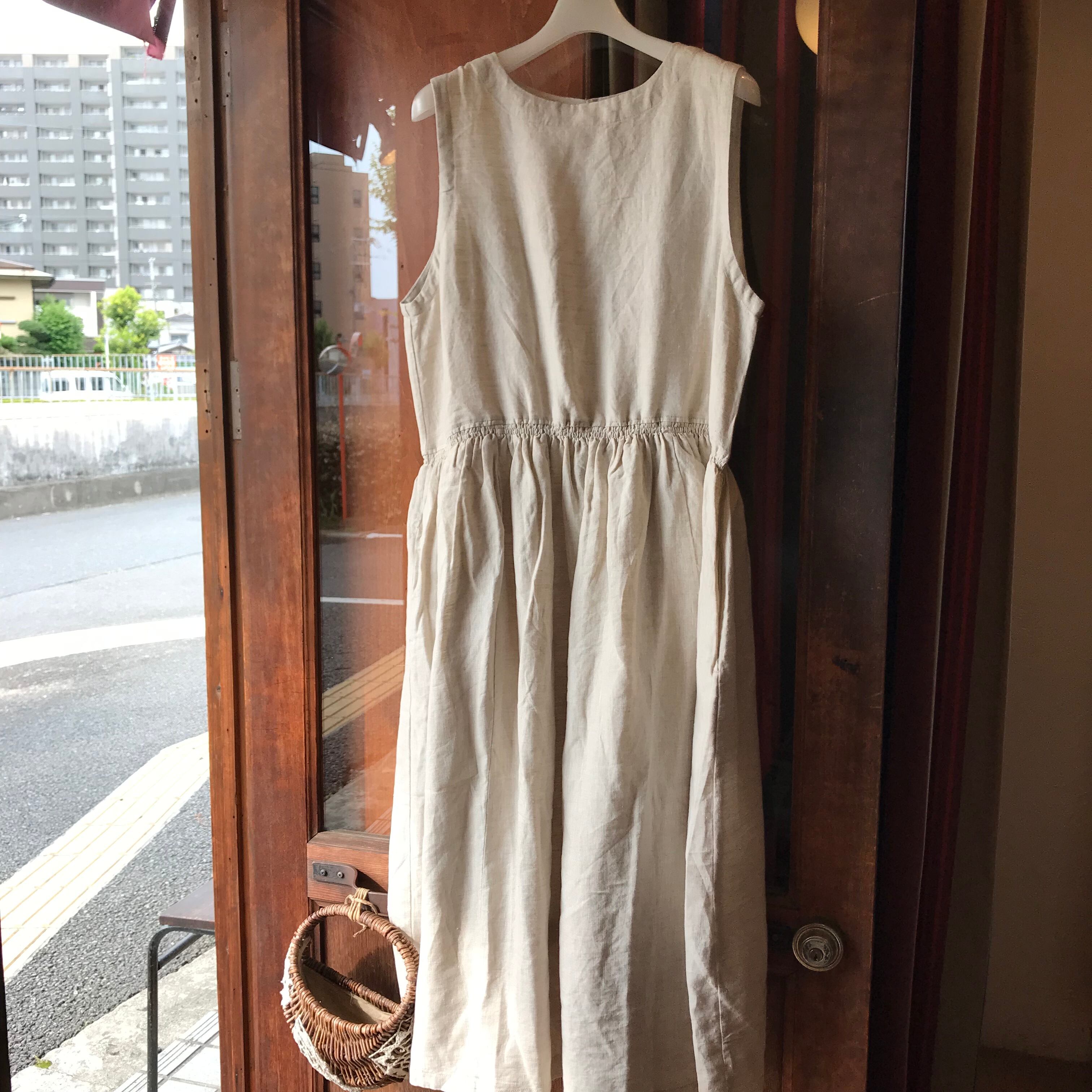 春夏用の薄手リネン素材のノースリーブワンピース。