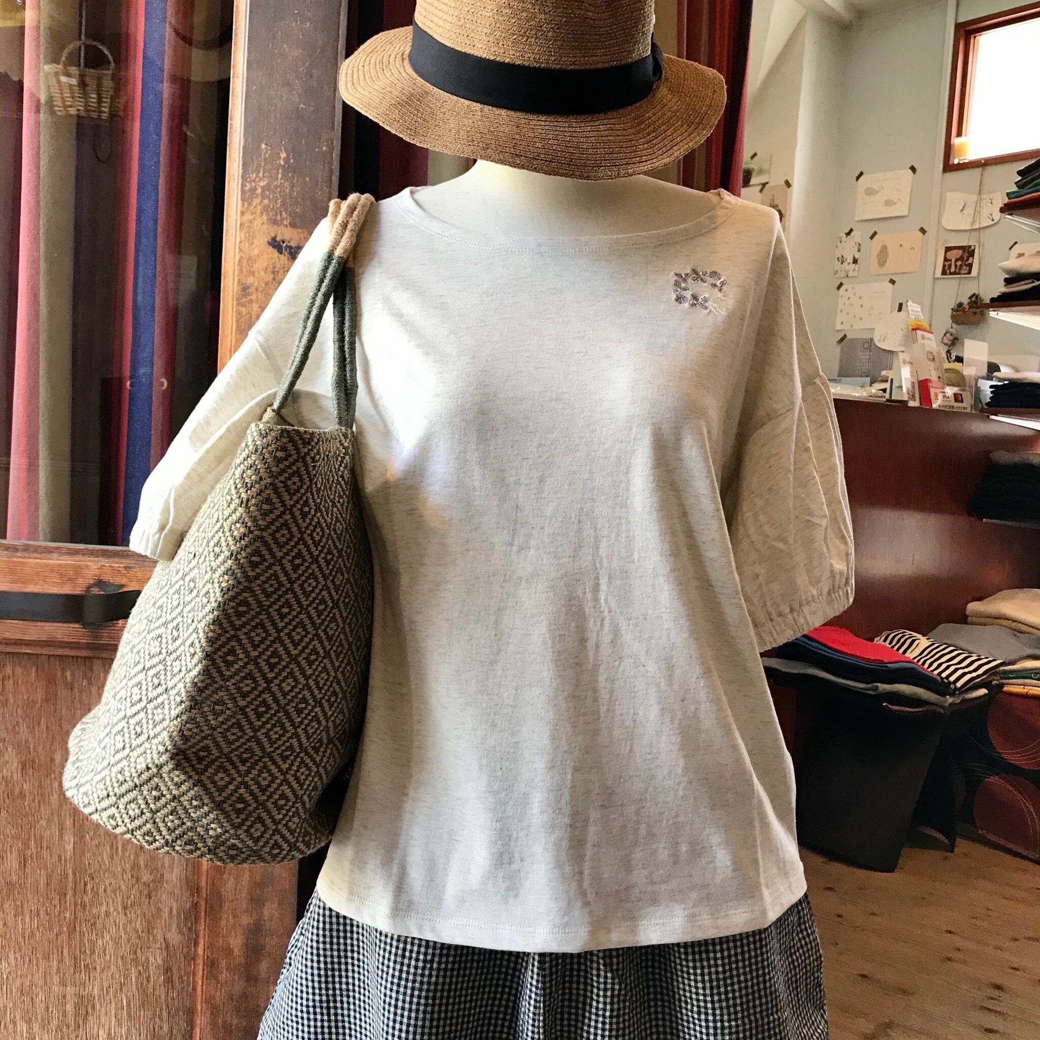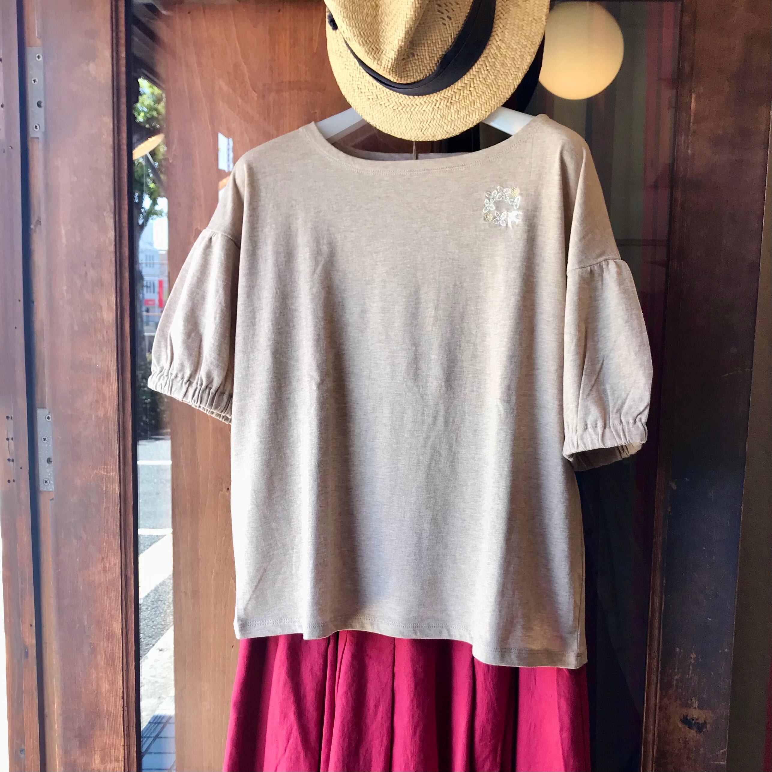 blue willowのクローバー刺繍 ギャザースリーブTシャツです。