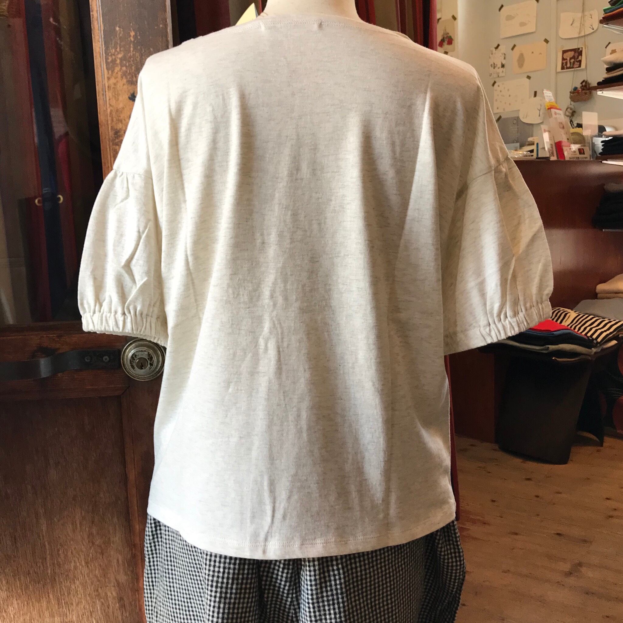 blue willowのクローバー刺繍ギャザースリーブTシャツ