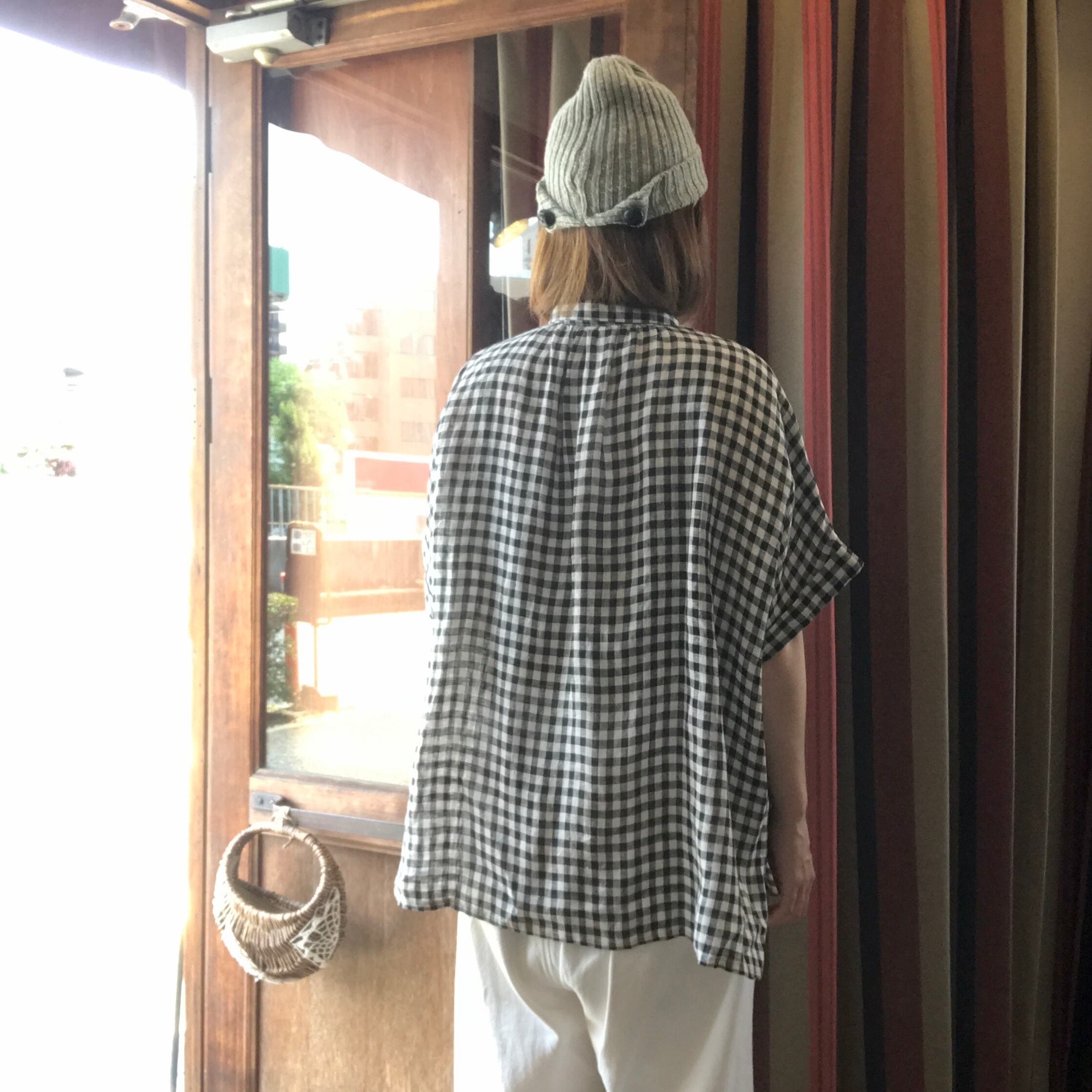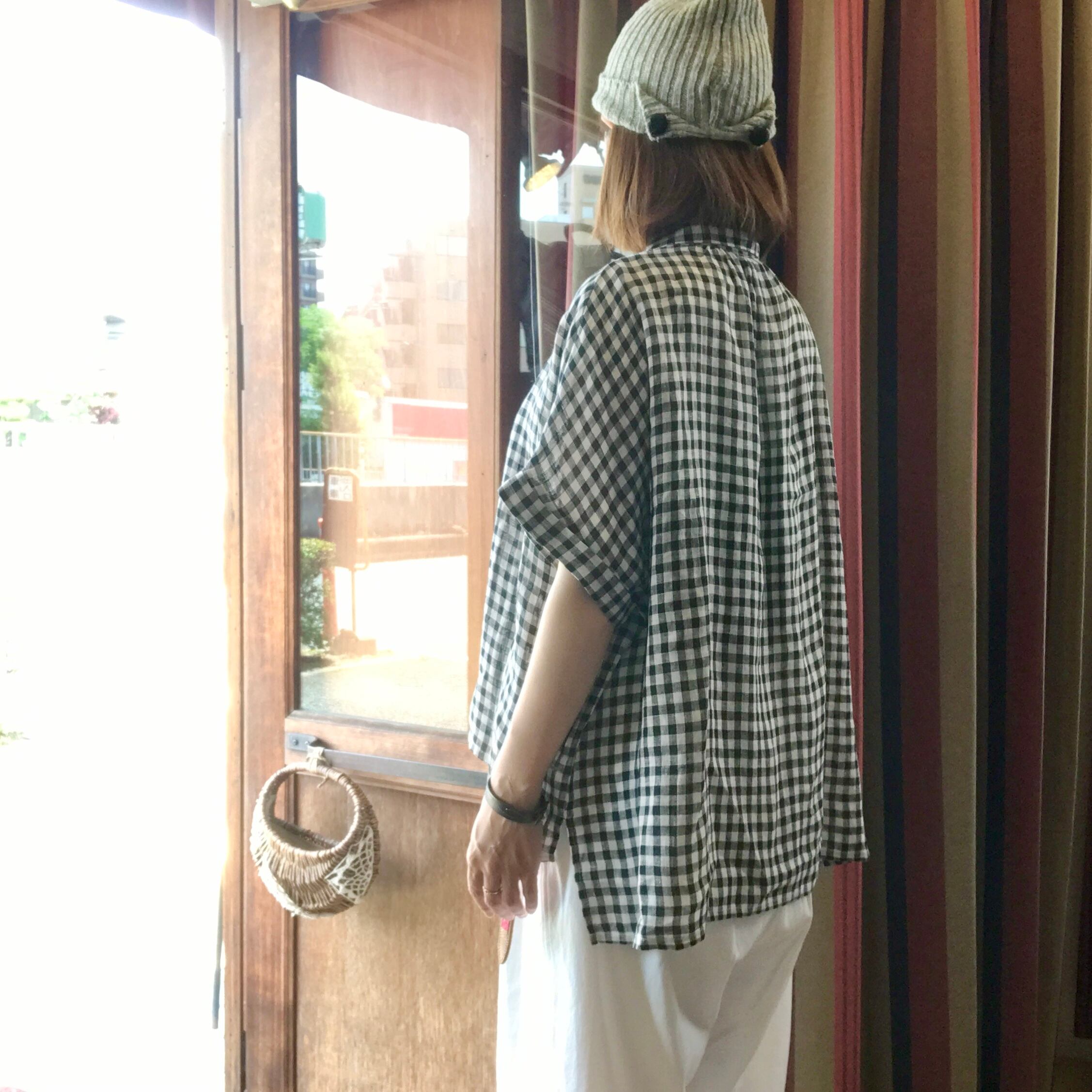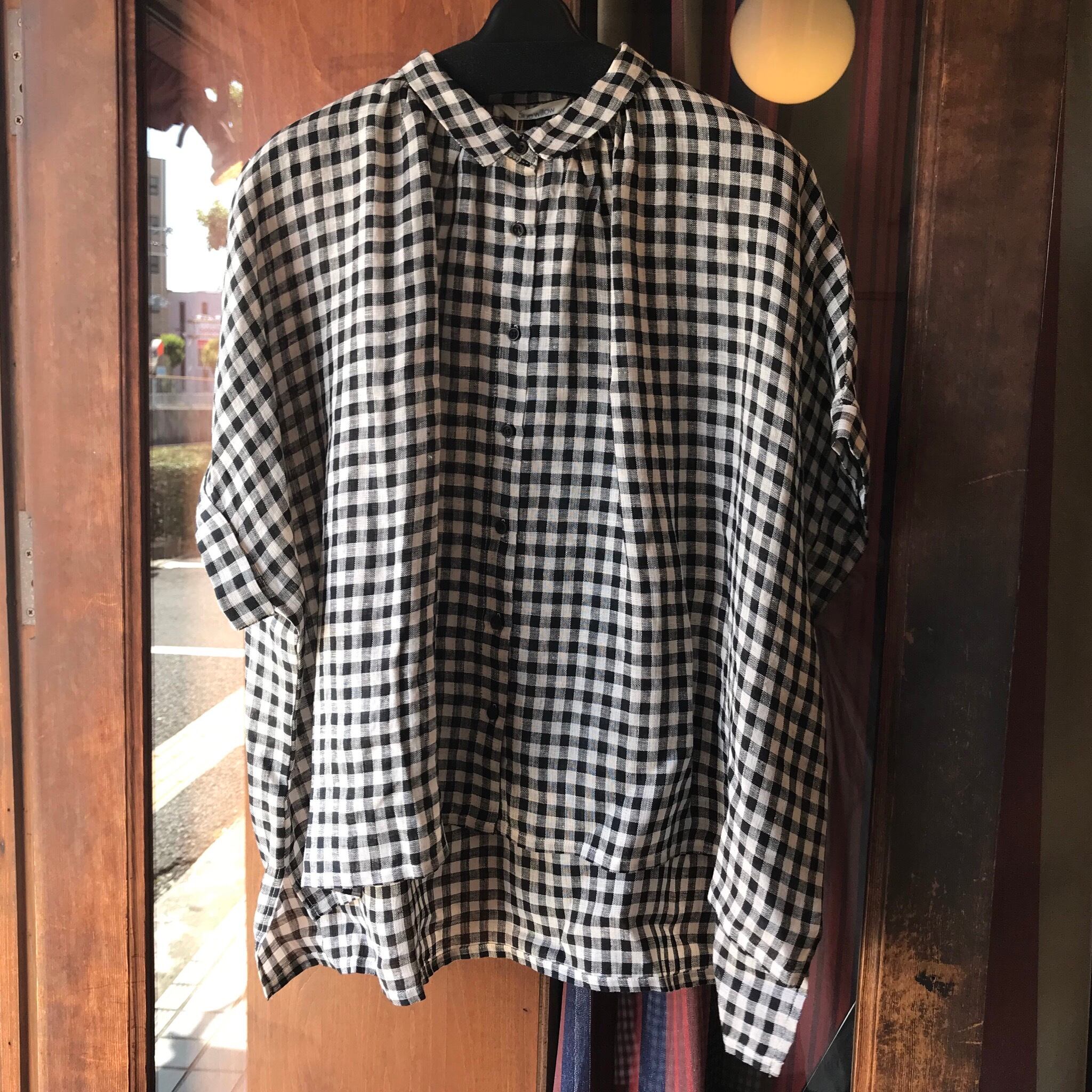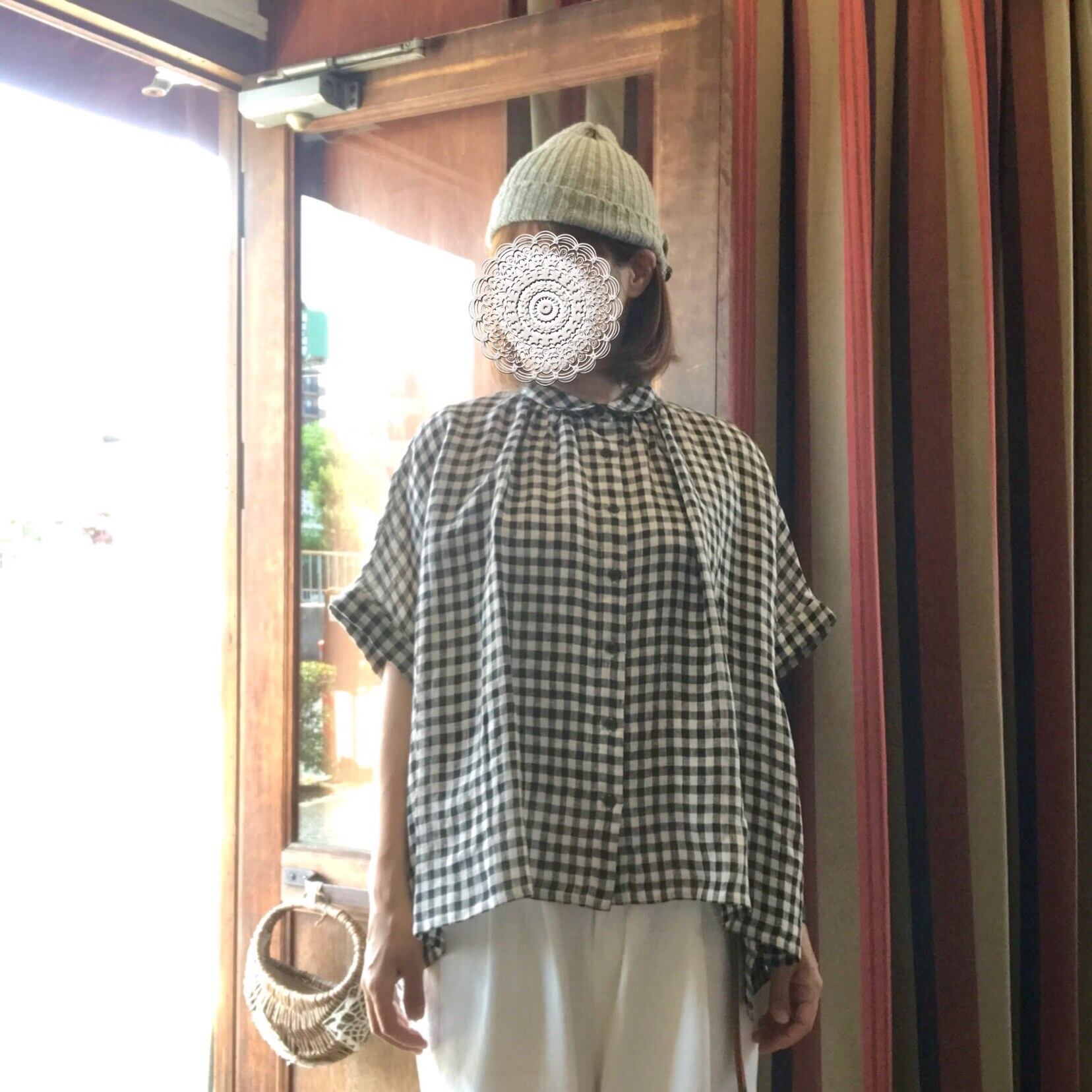 blue willowのギンガムチェックリネン五分袖ブラウスです。