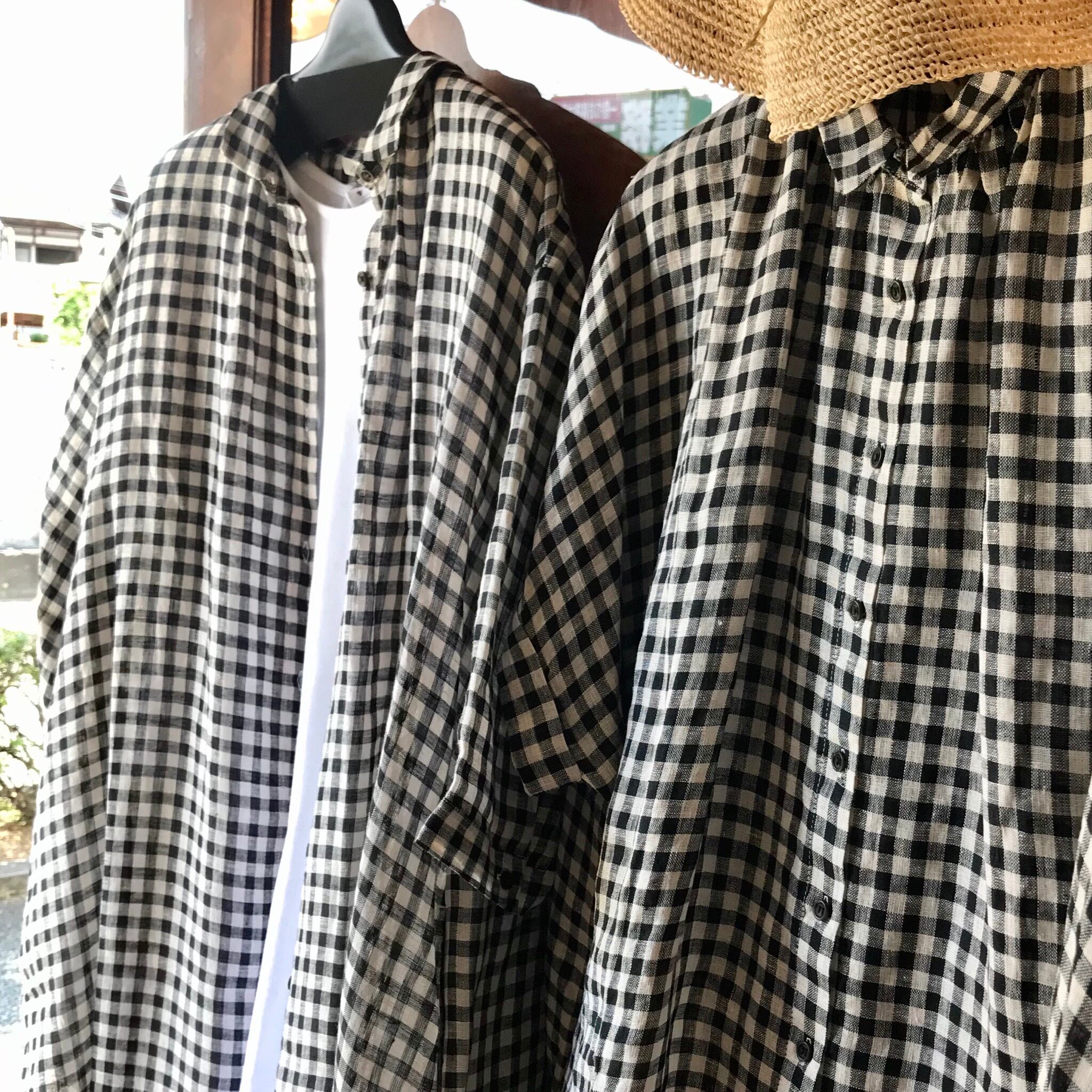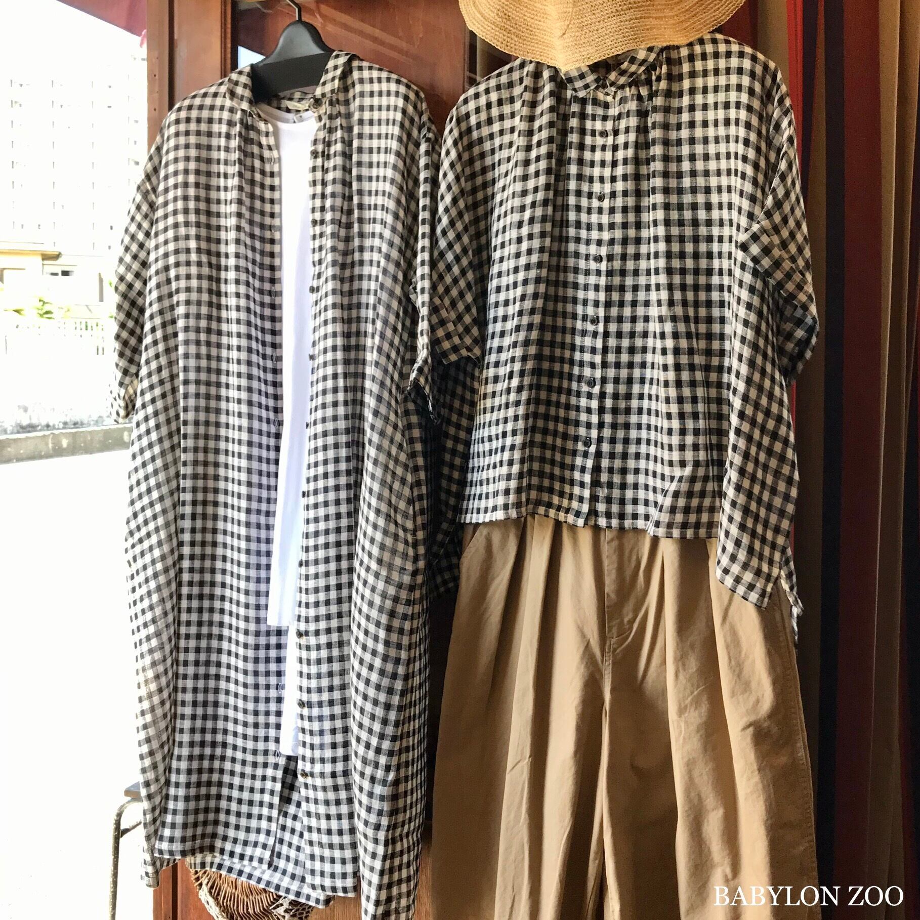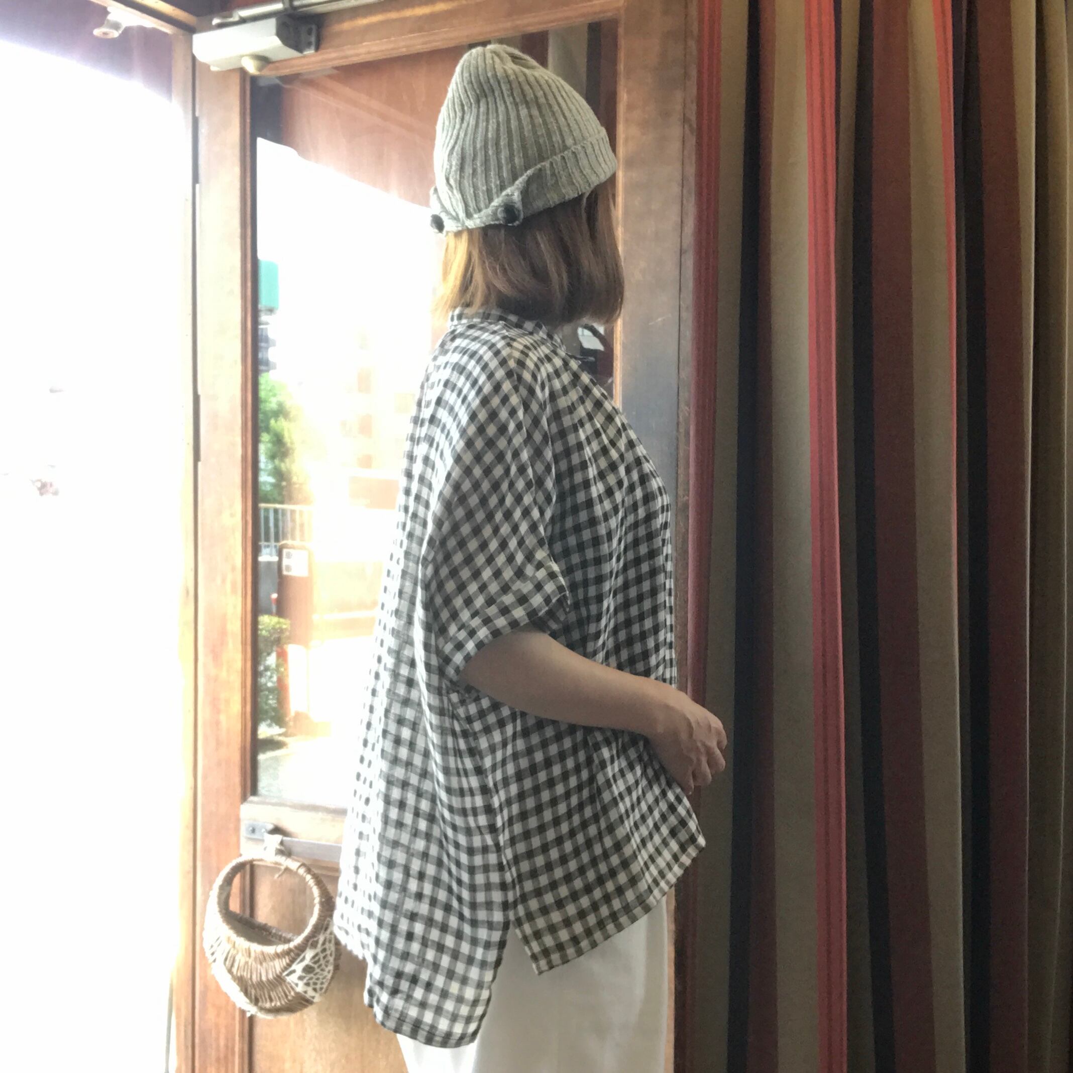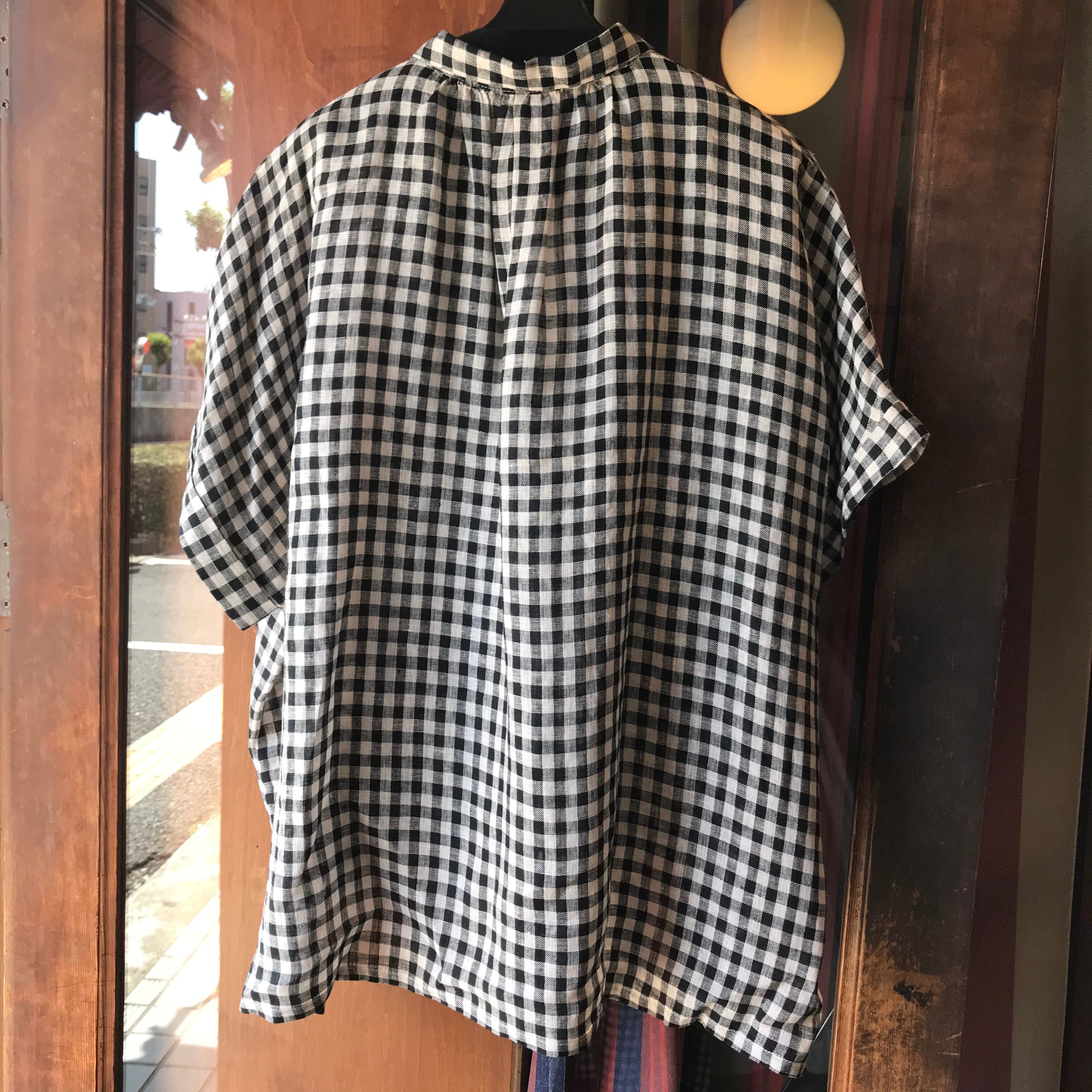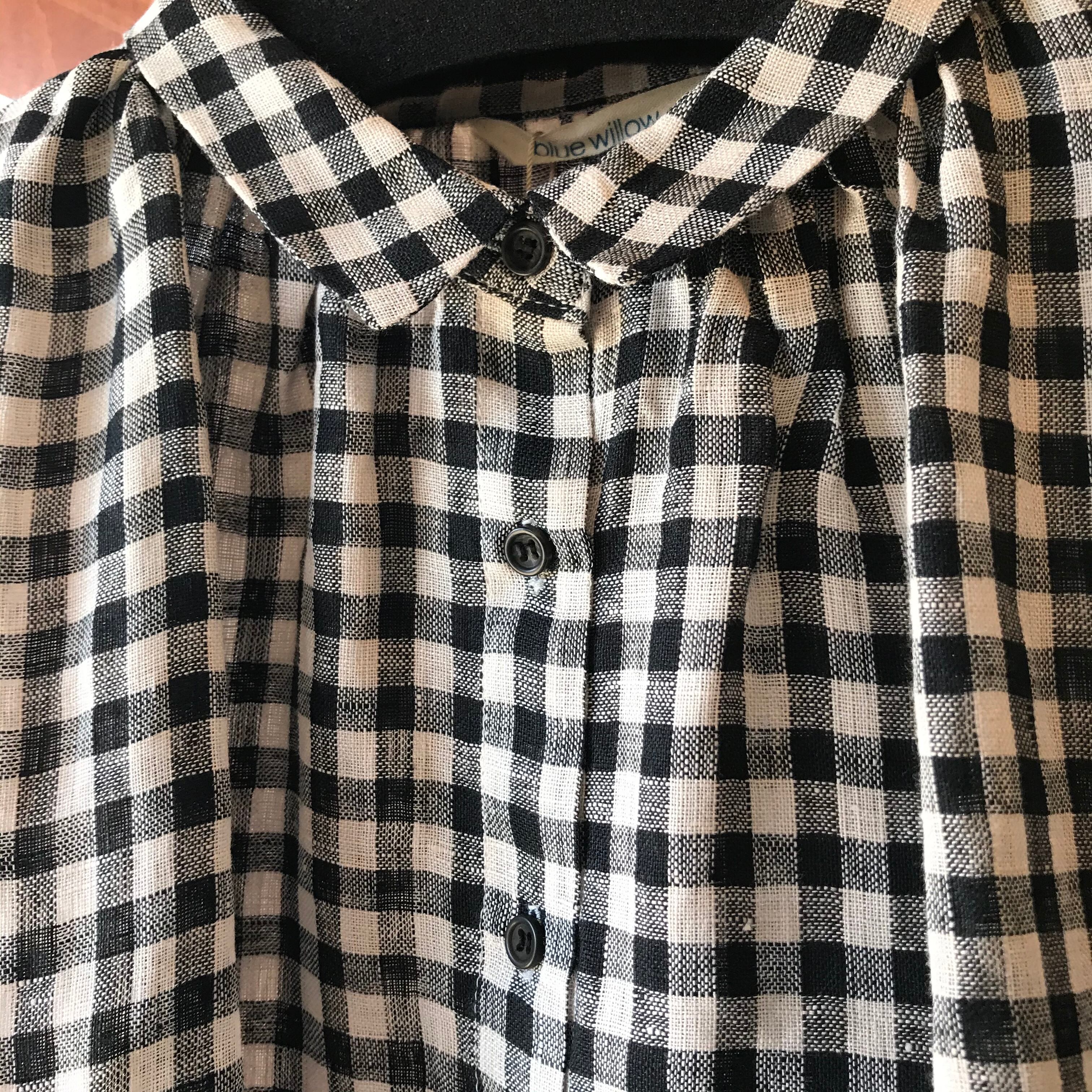 blue willowのギンガムチェックリネン五分袖ブラウスです。