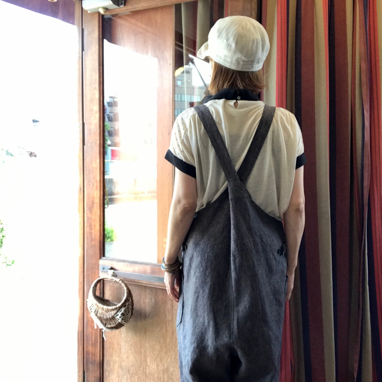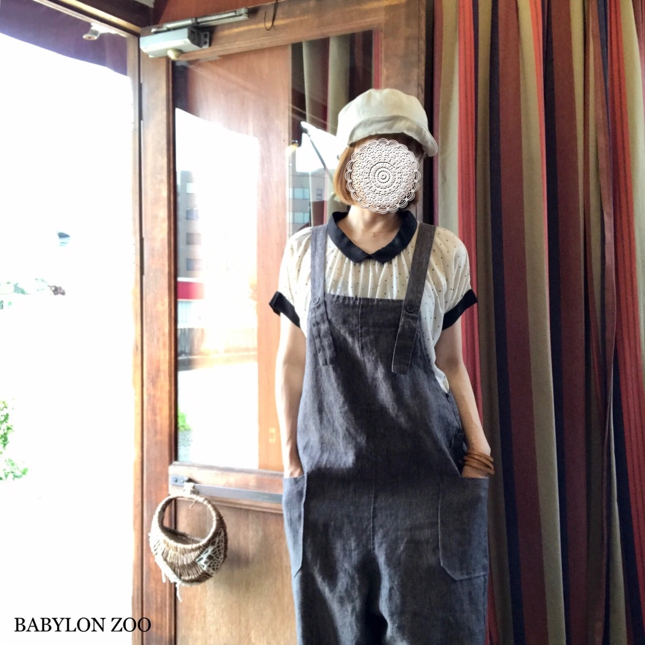 生成りに黒の小さなドット柄に、衿と袖口の黒がピリリと引き締めてくれます。