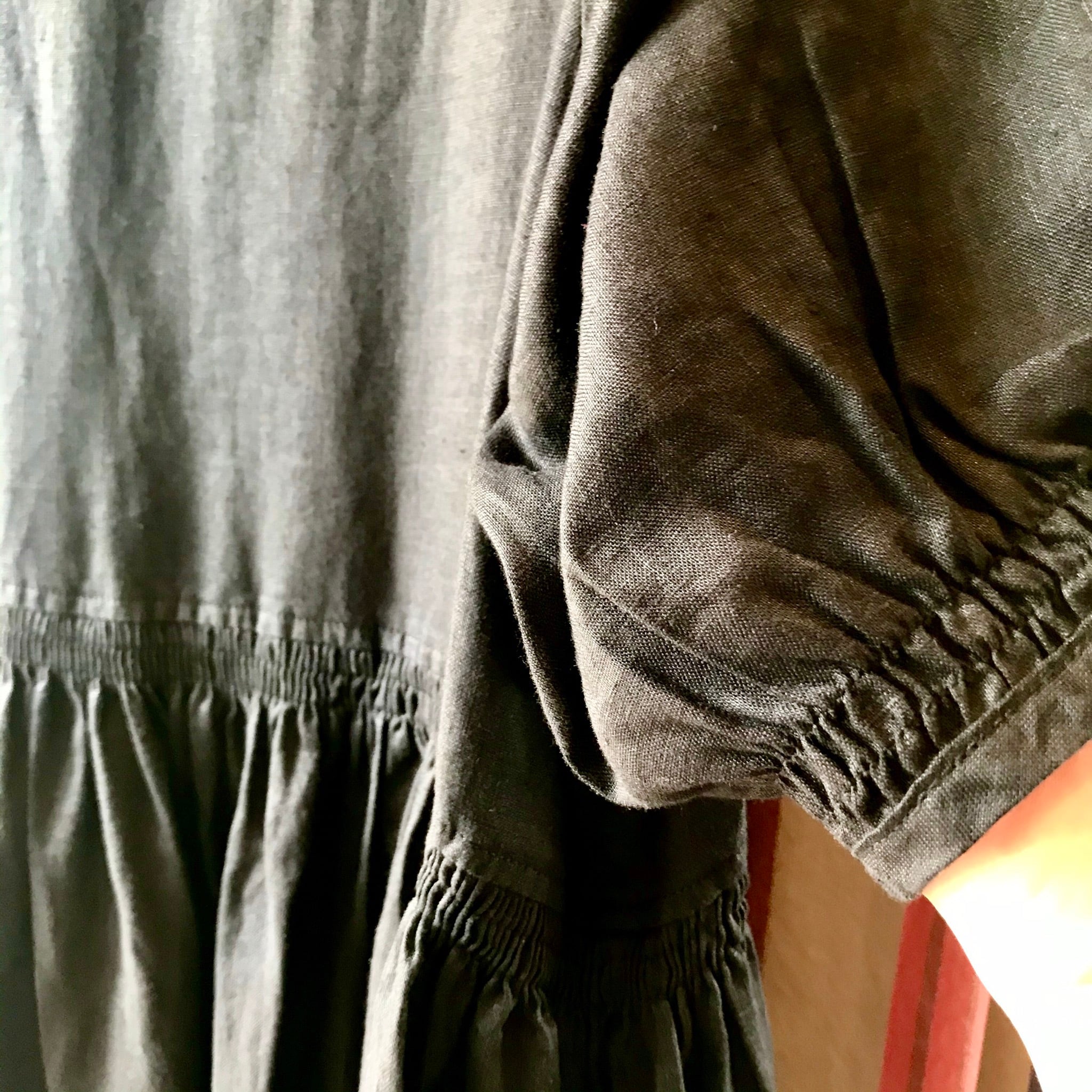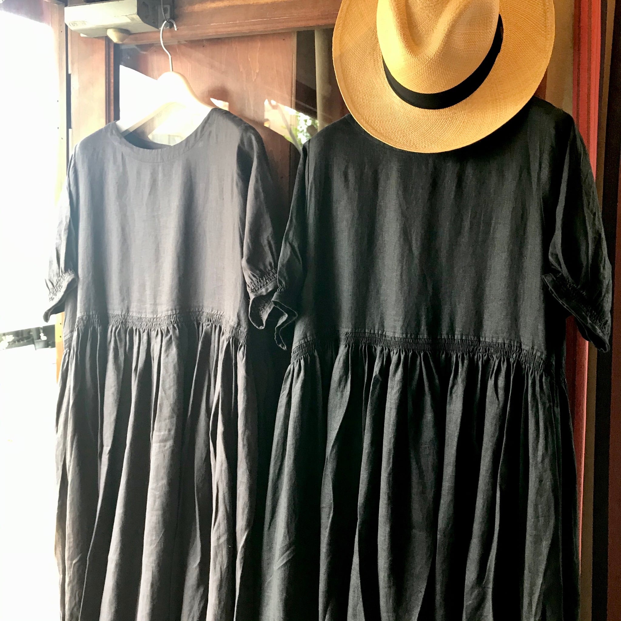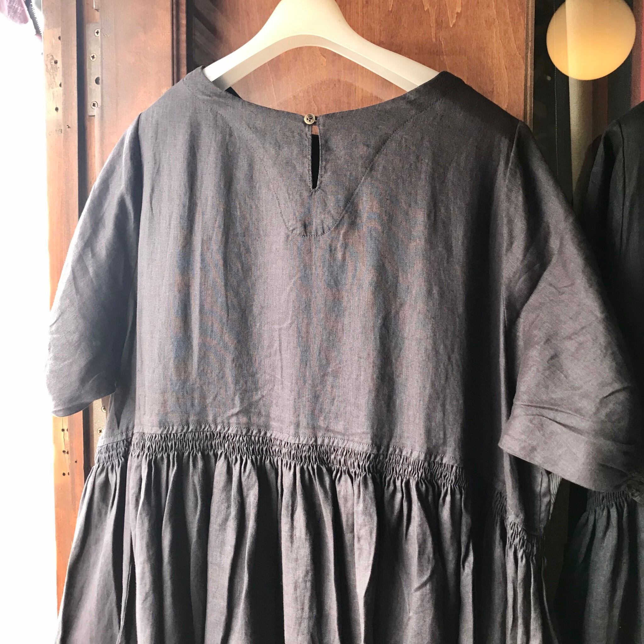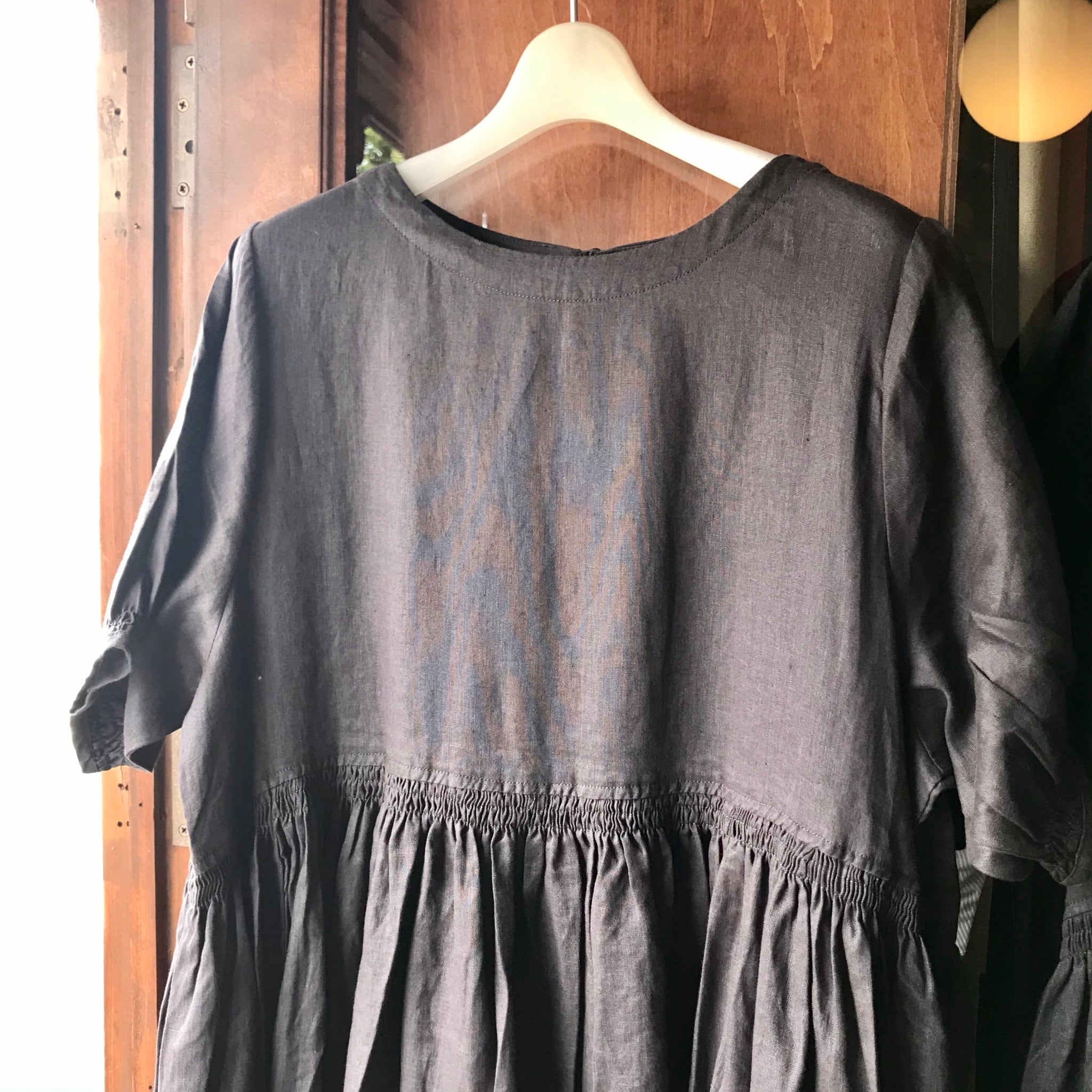 ウエストと袖口をシャーリング仕様にし、裾に向かってふんわり広がるシルエットに仕上げました。