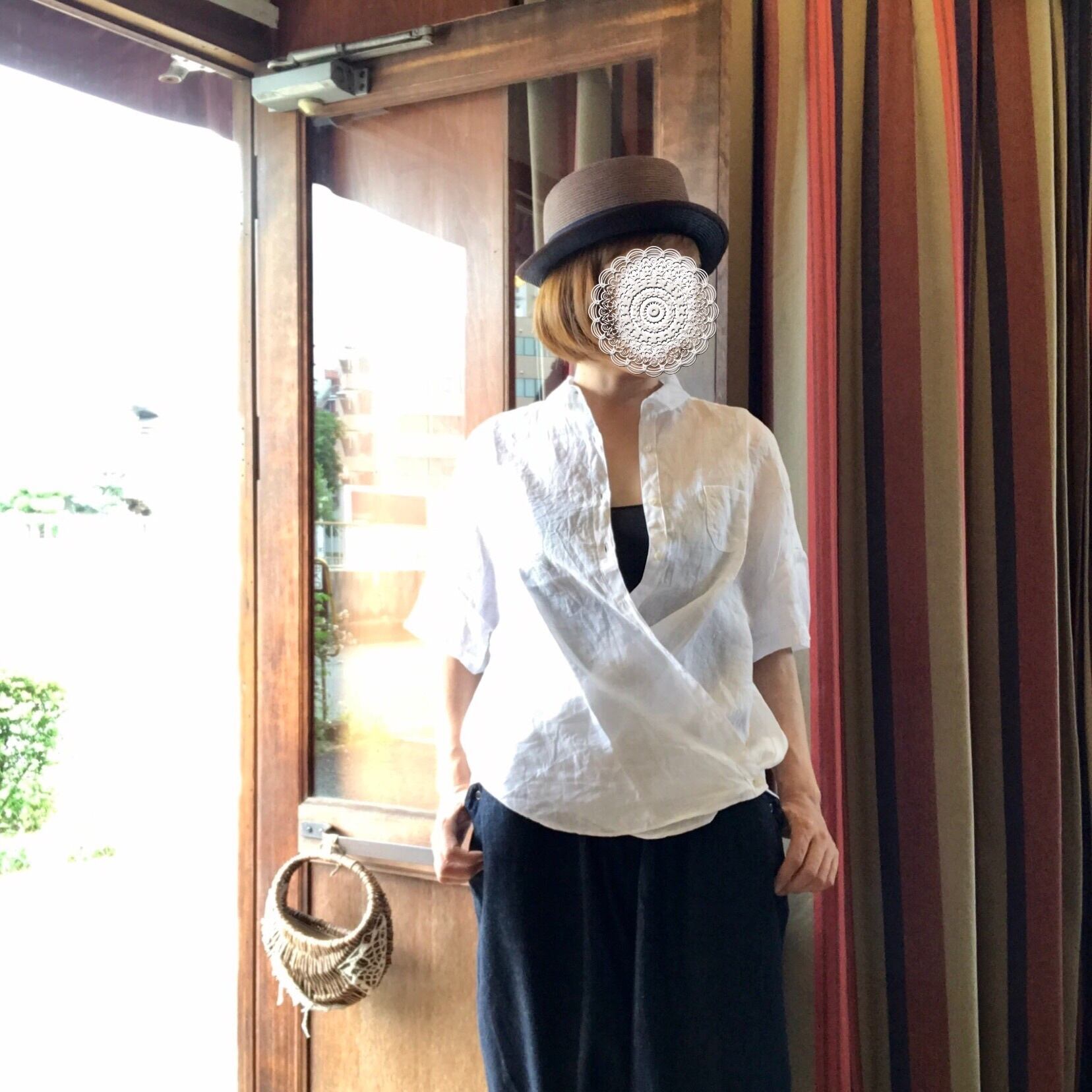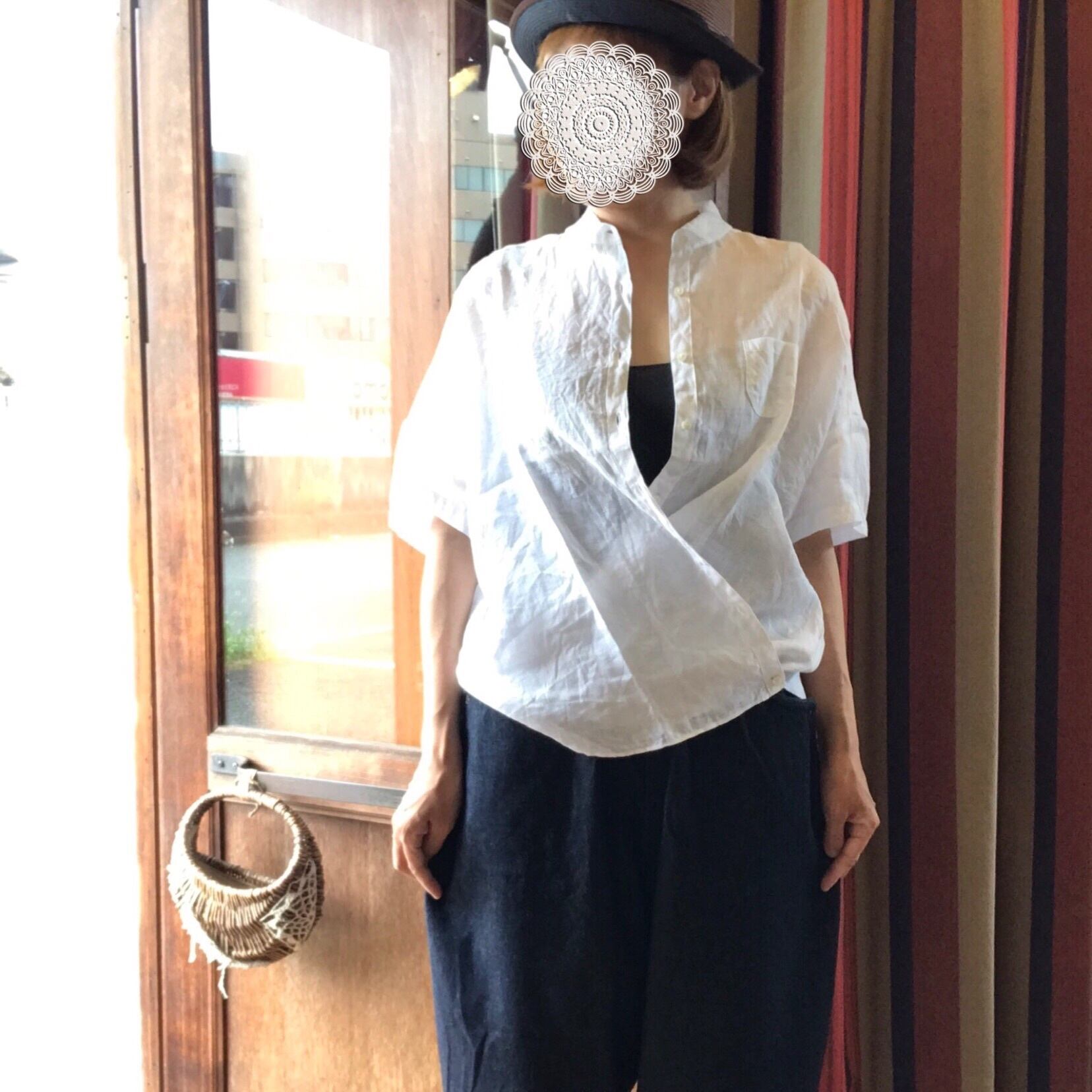 nachukaraのフレンチリネン五分袖 2wayブラウスです。