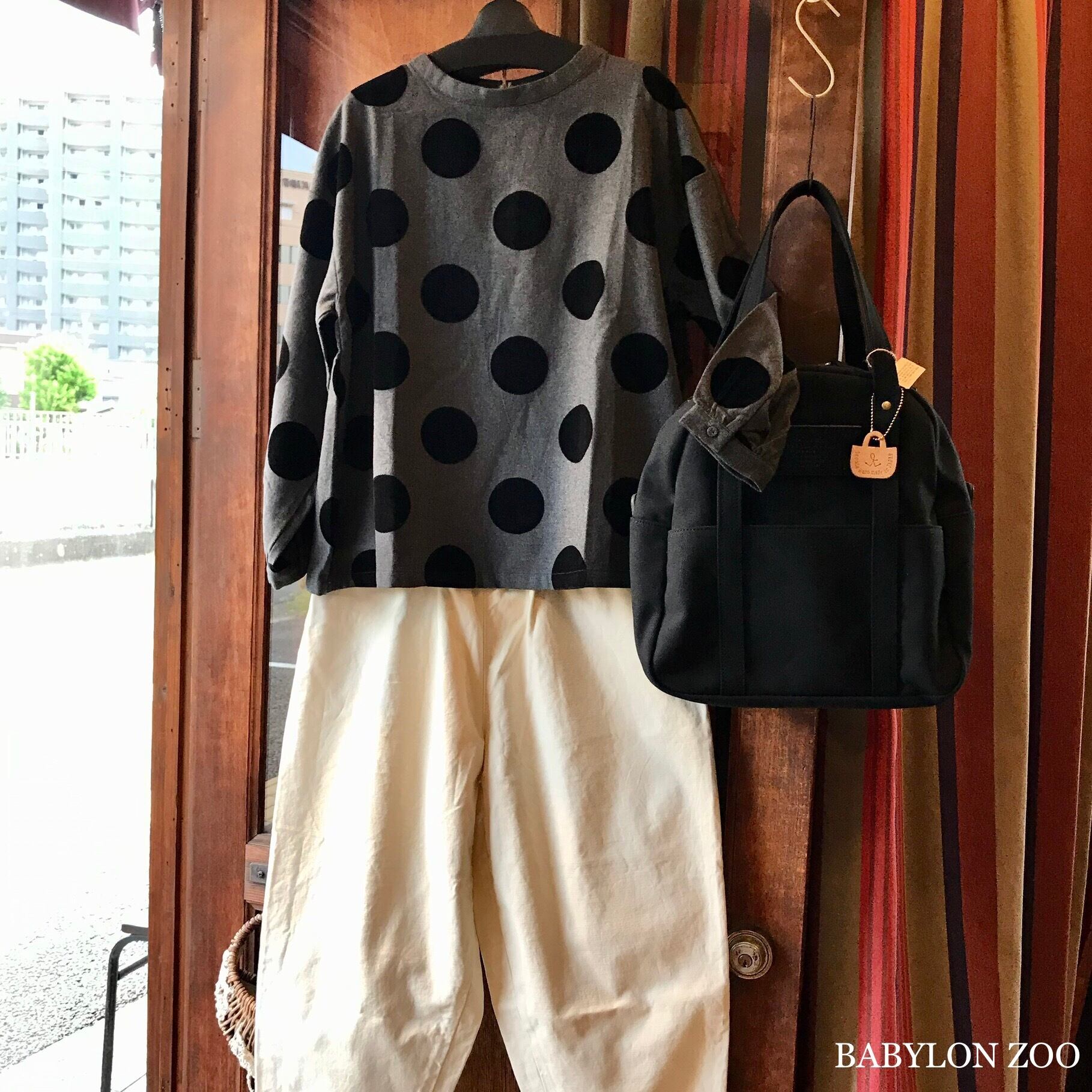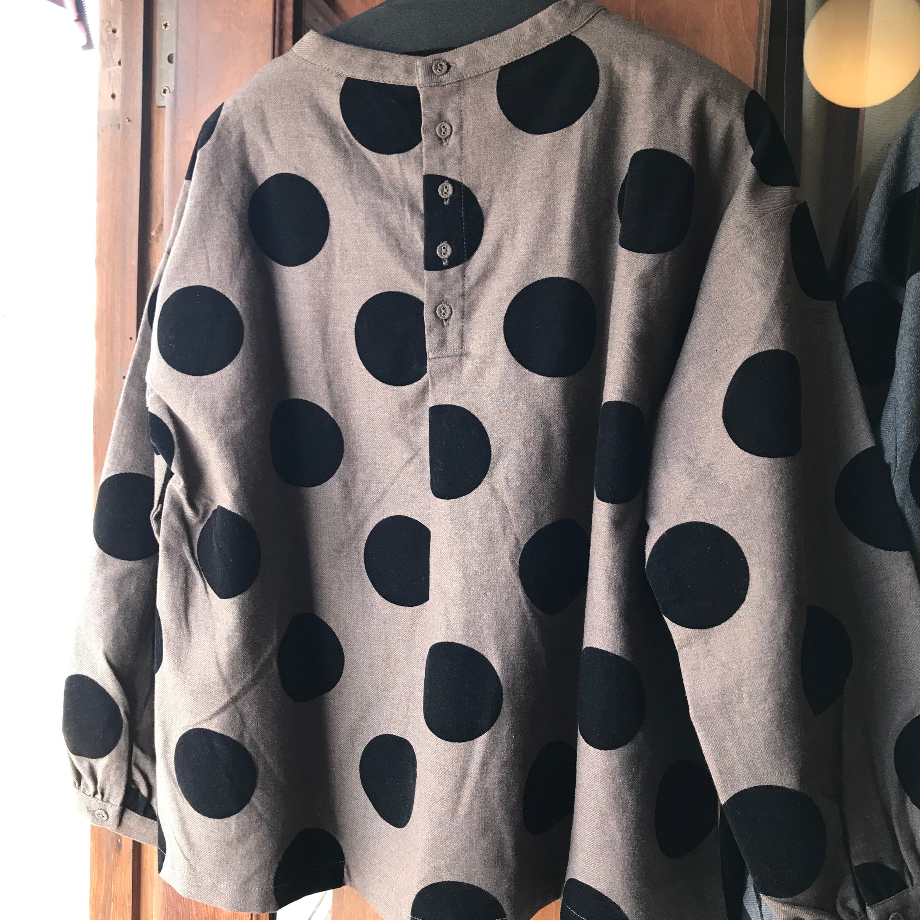 blue willowのフロッキープリントBIGドット柄ブラウスです。