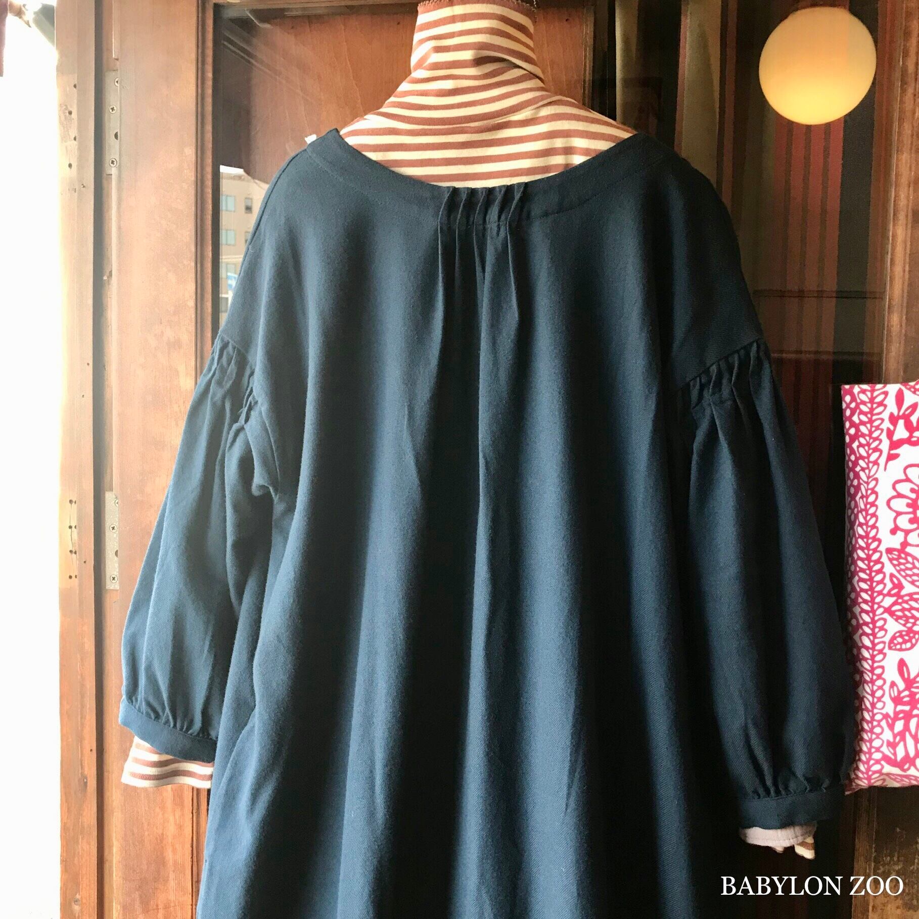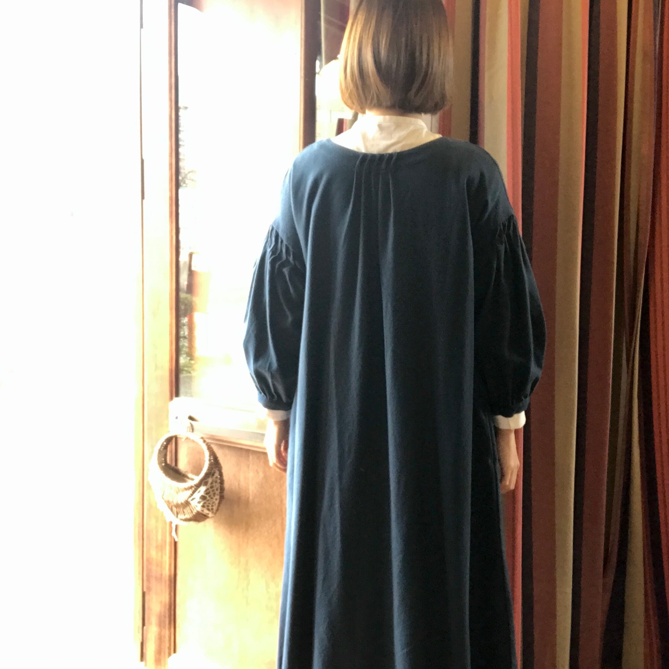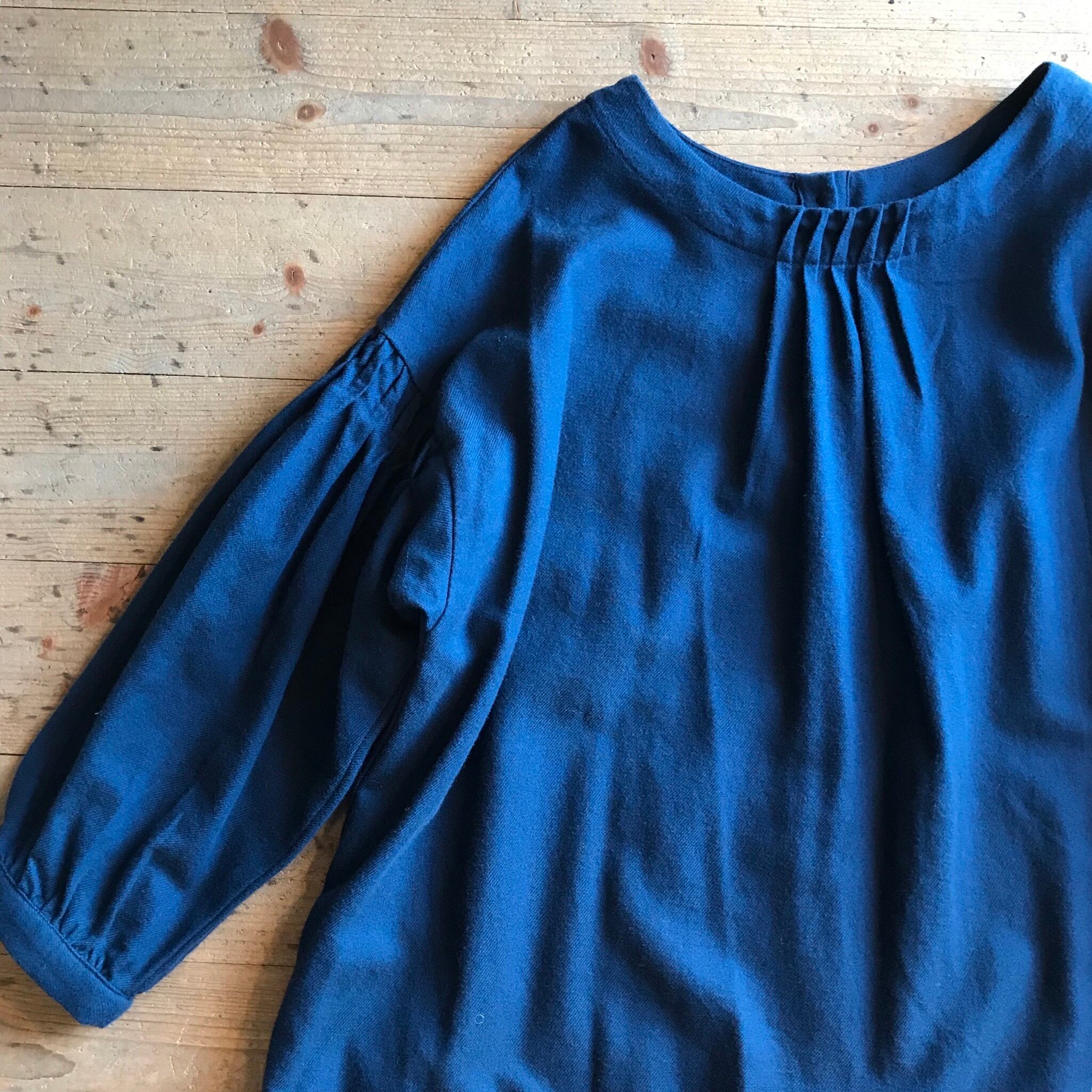 肩周り、首周りにタックを施してありますが、タックをひねって縫い止めてあり少し凝ったデザインとなっています。