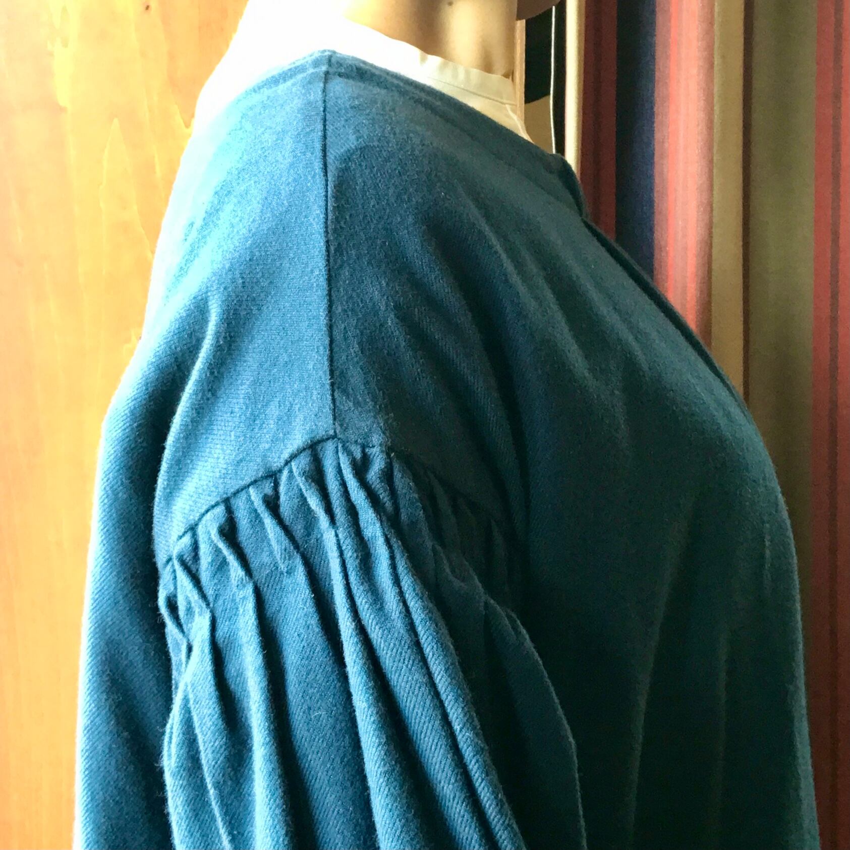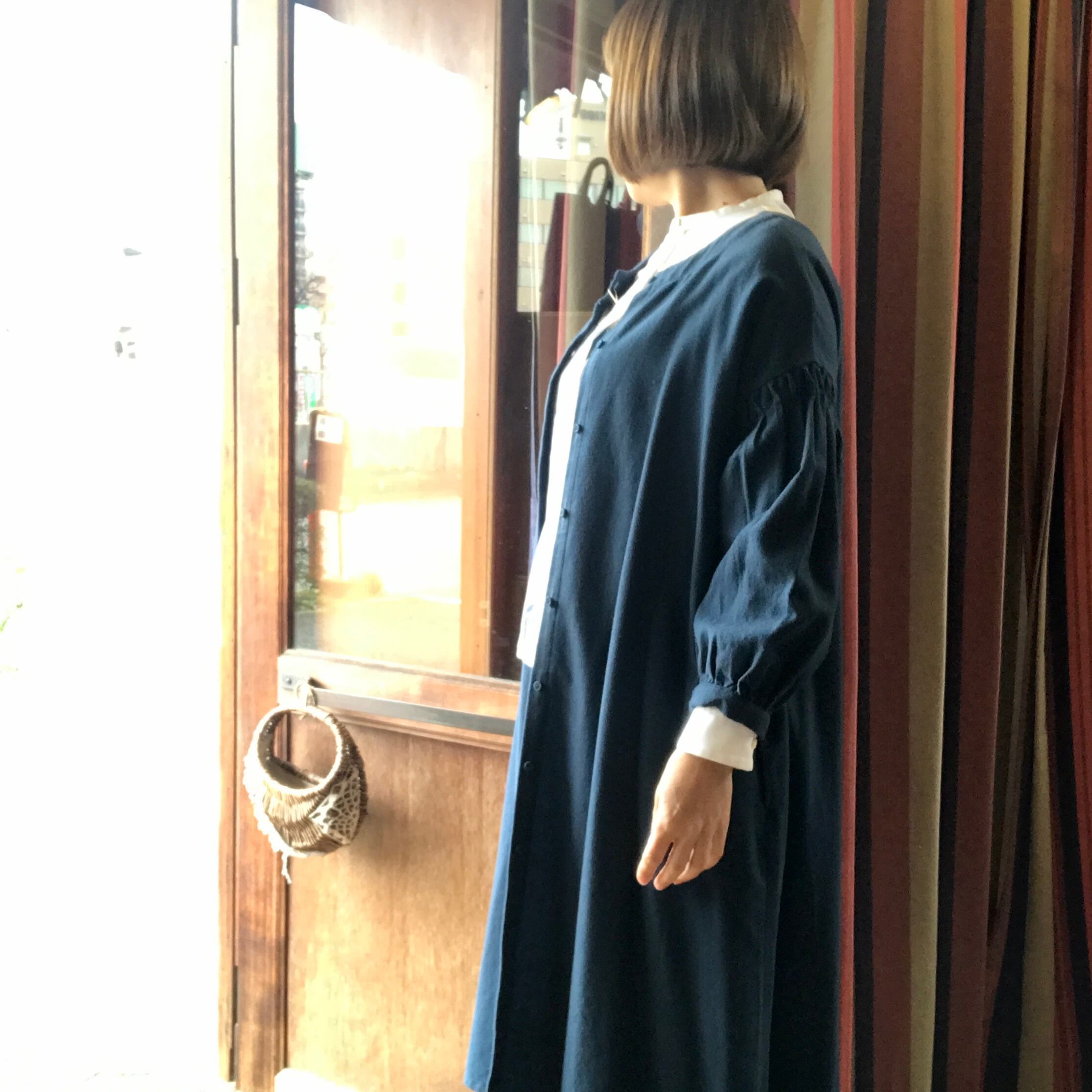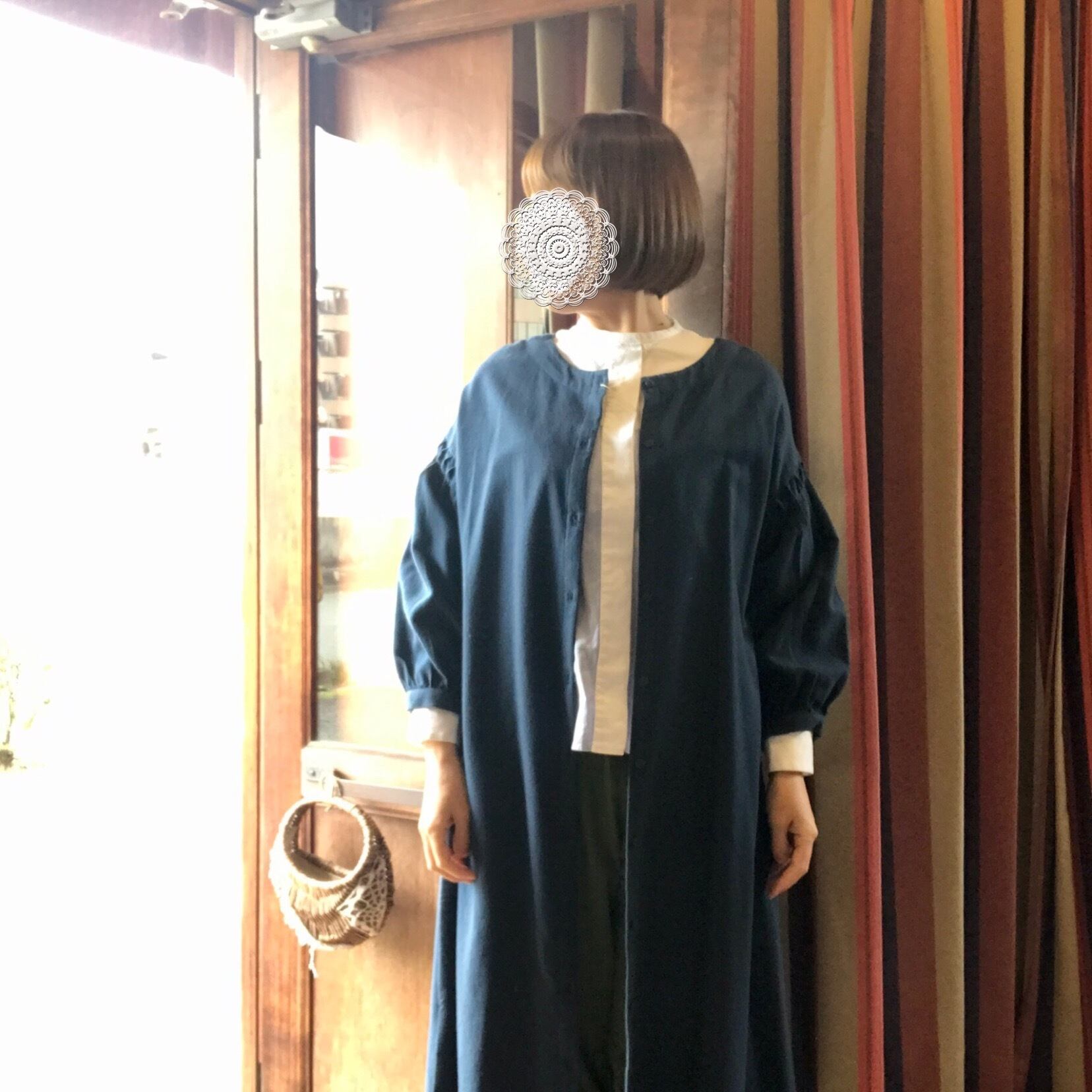 肩周り、首周りにタックを施してありますが、タックをひねって縫い止めてあり少し凝ったデザインとなっています。