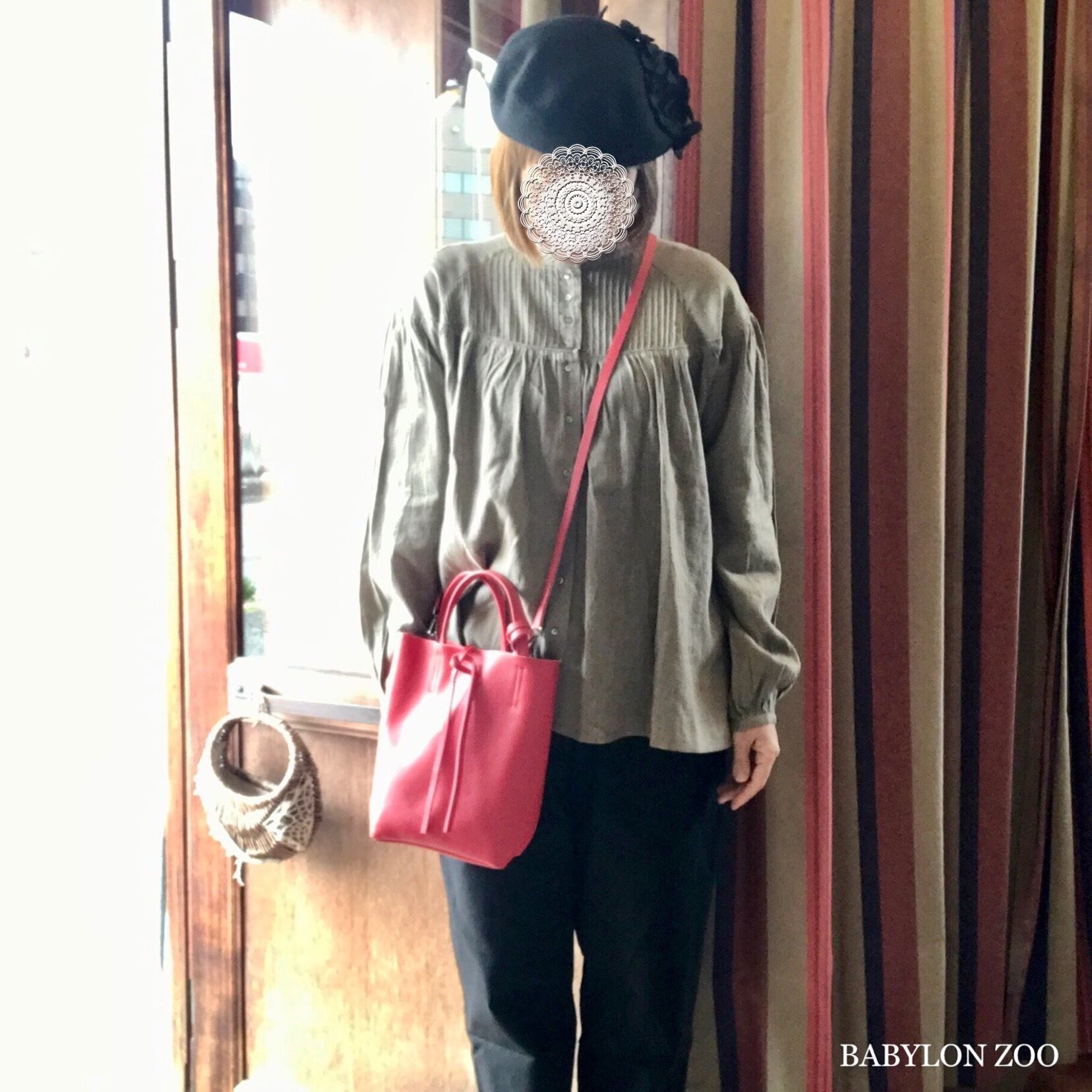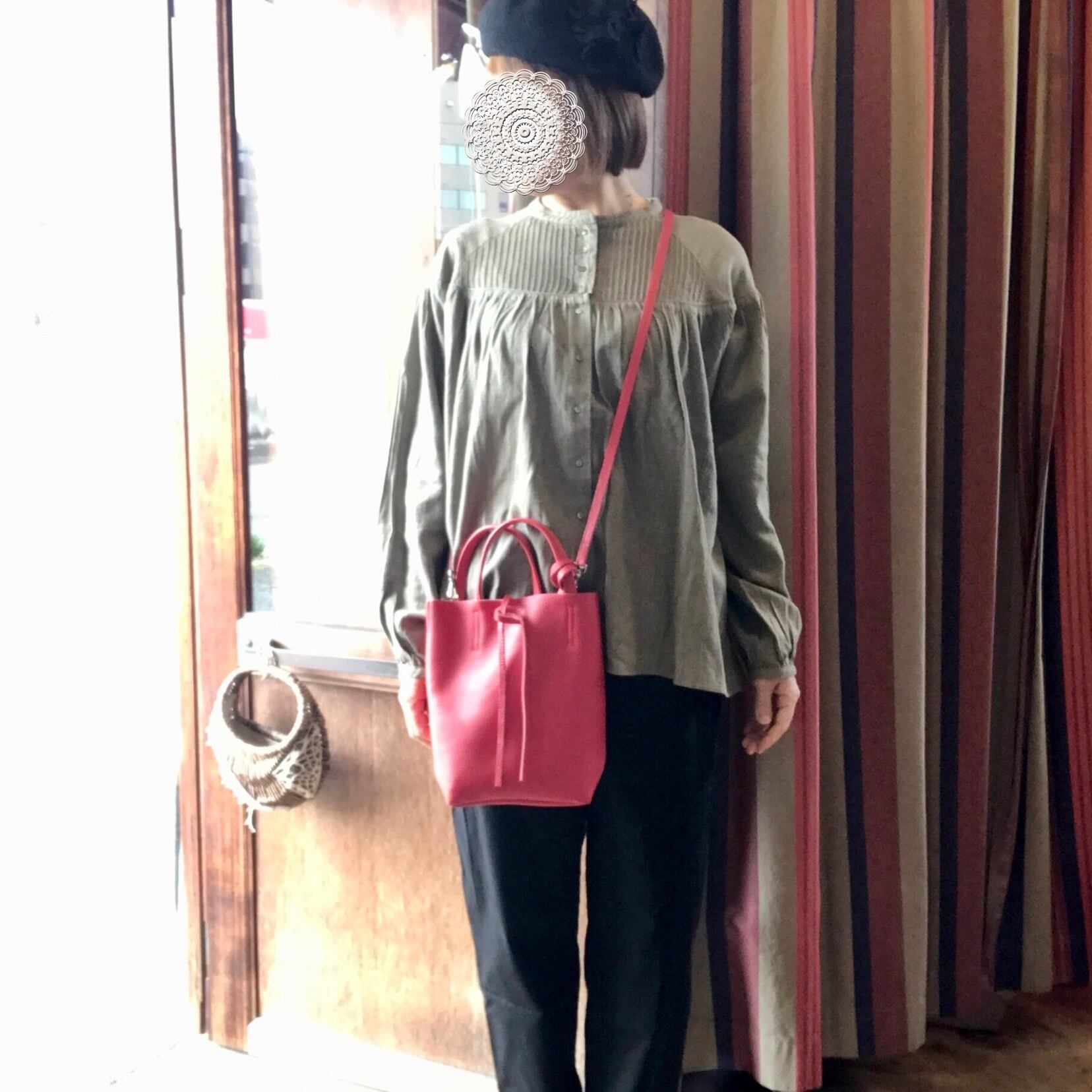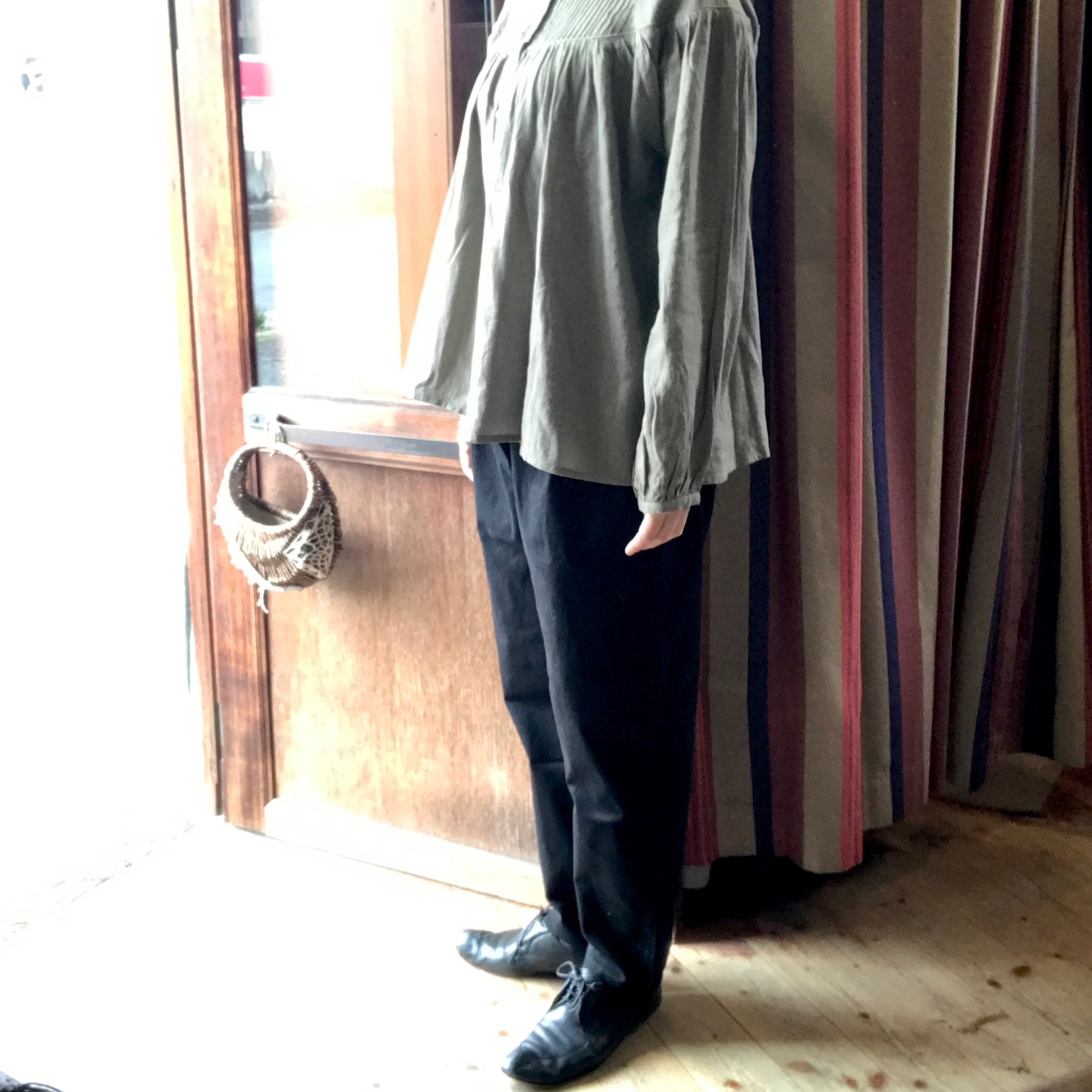 ウエストにタックを入れて腰回りにゆとり持たせ、裾に向かって細くなるシルエットです。
