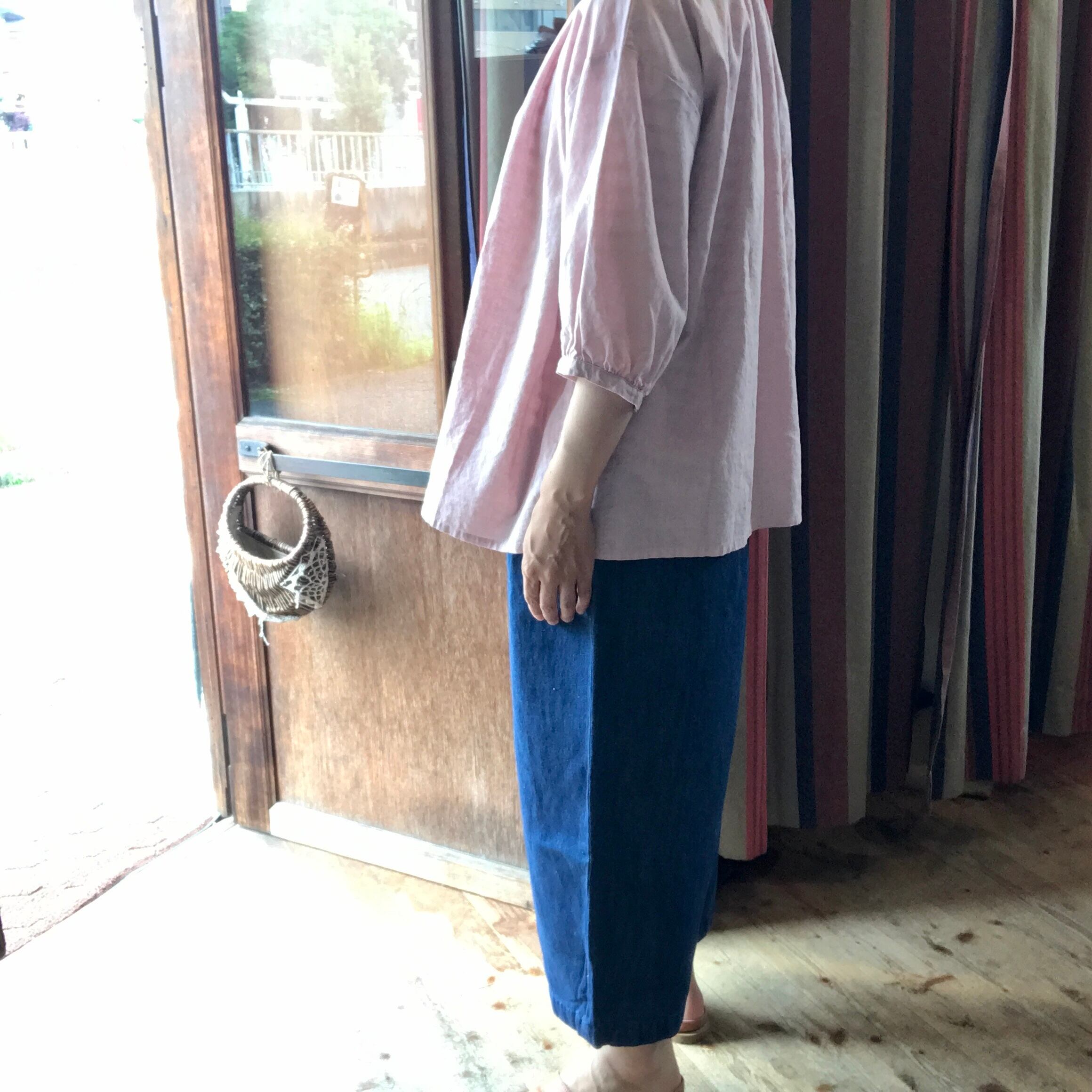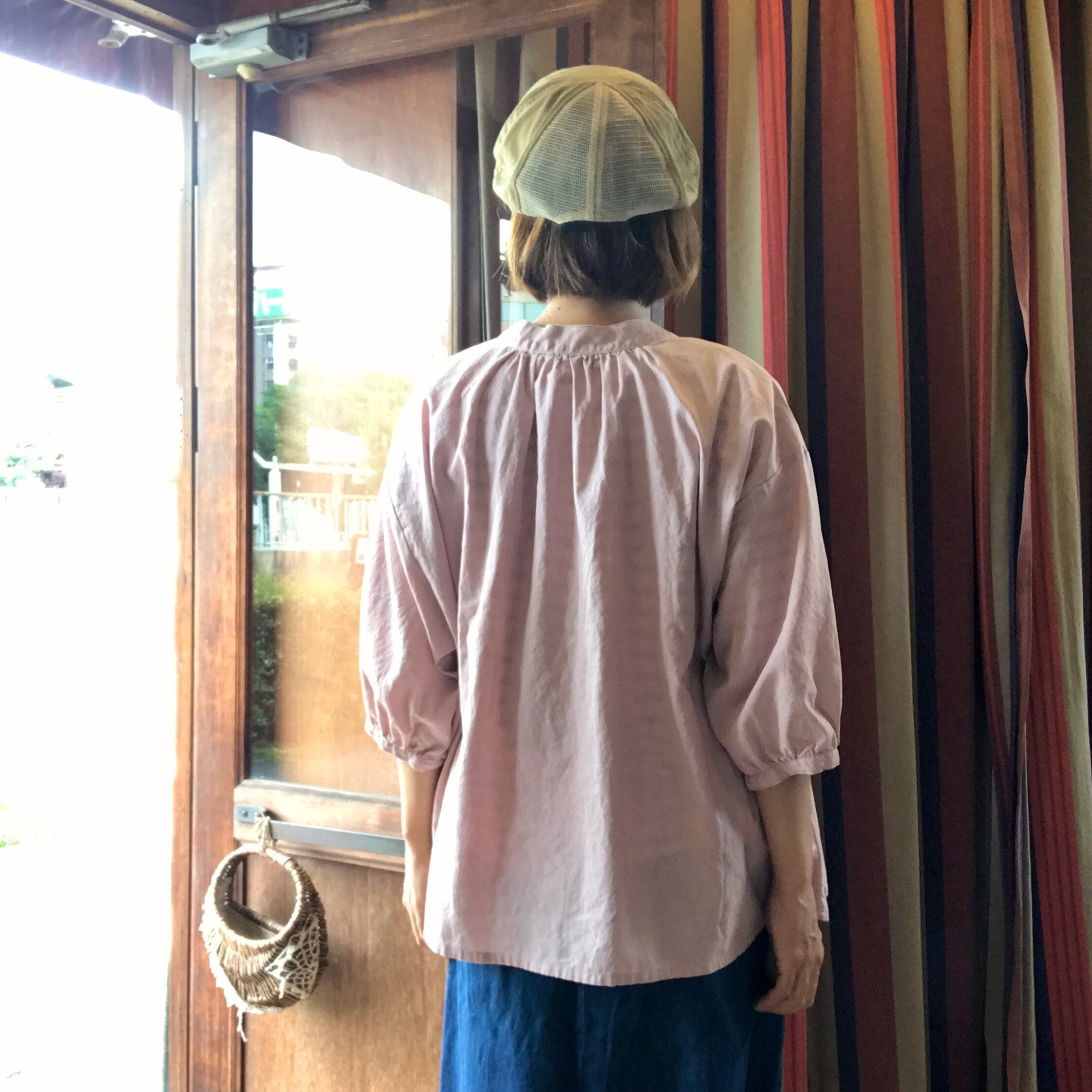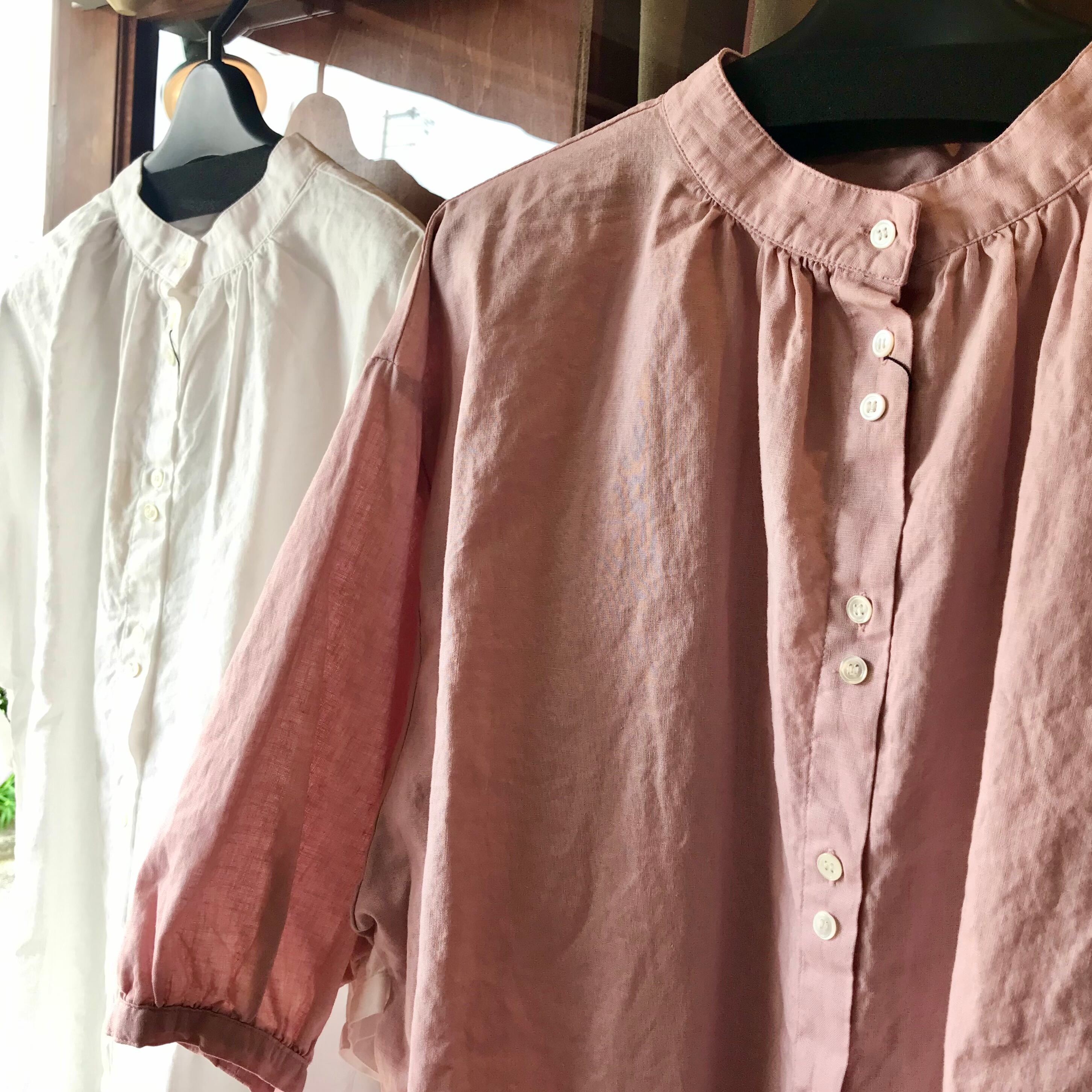 nachukaraのリネンコットンギャザー六分袖ブラウス