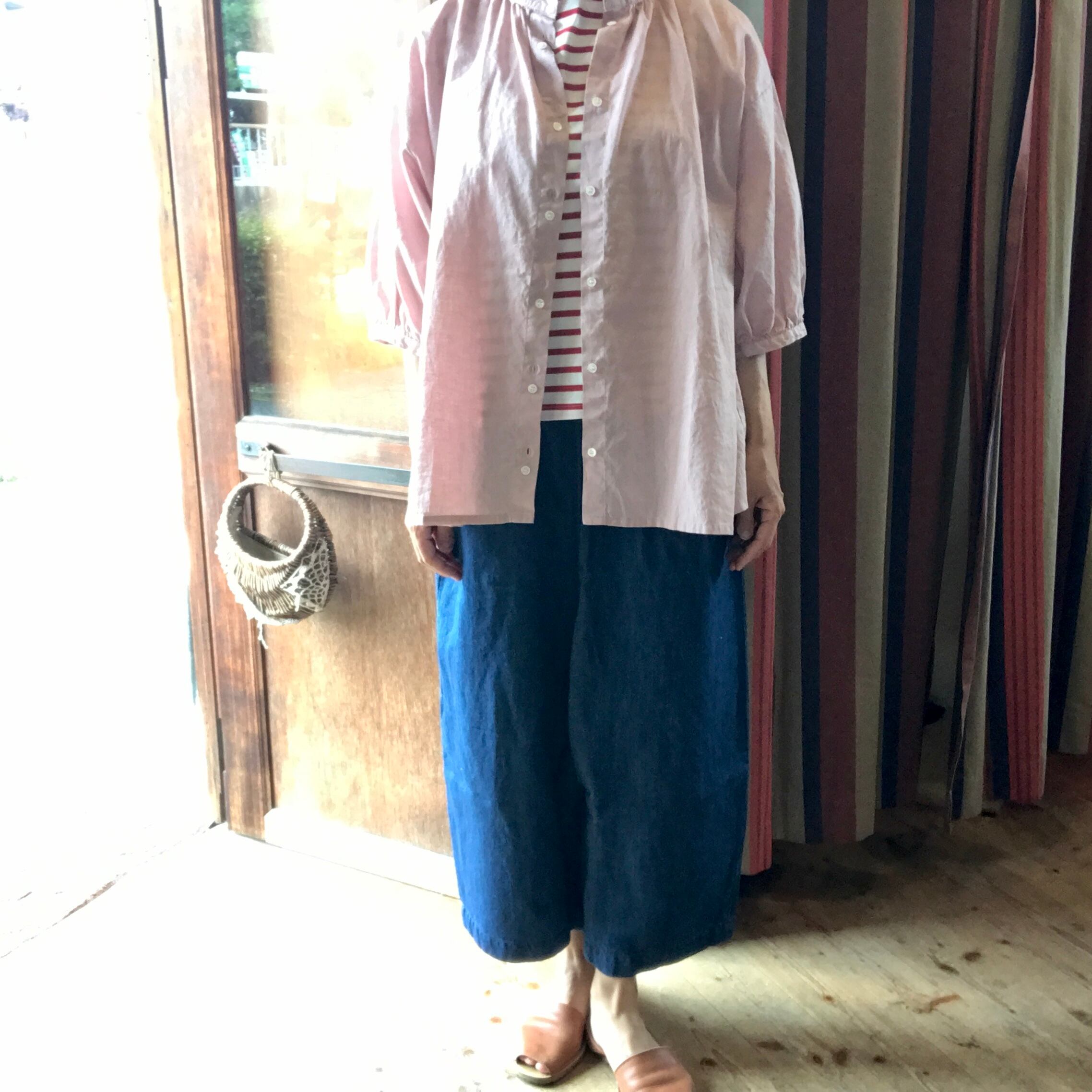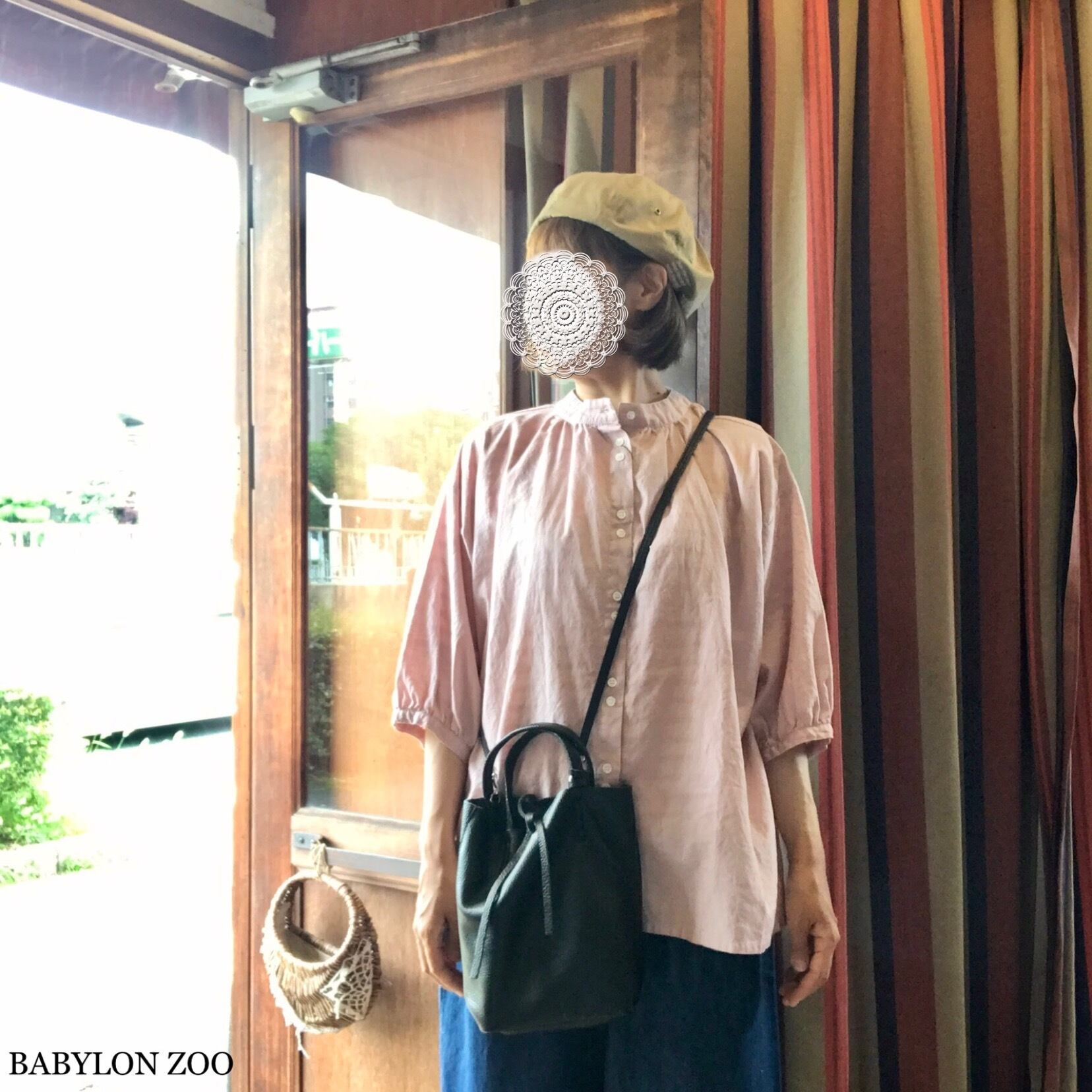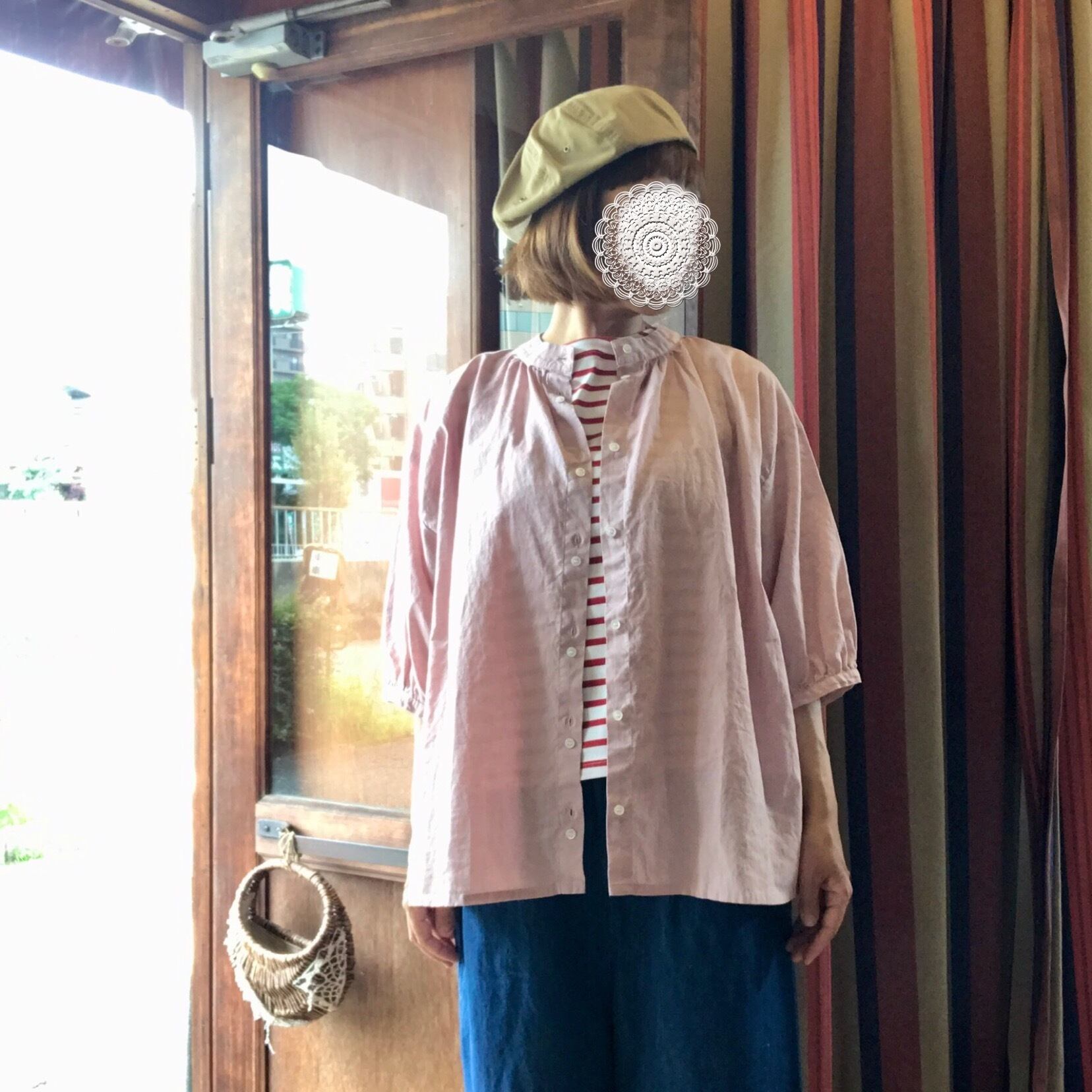 nachukaraのリネンコットンギャザー六分袖ブラウス