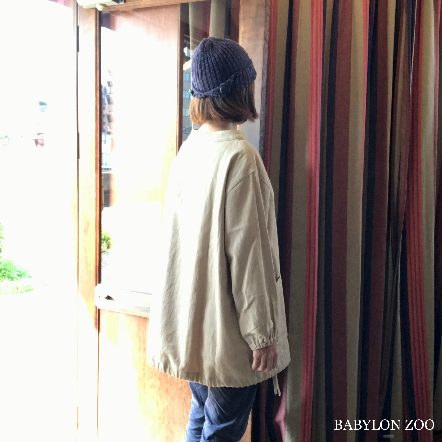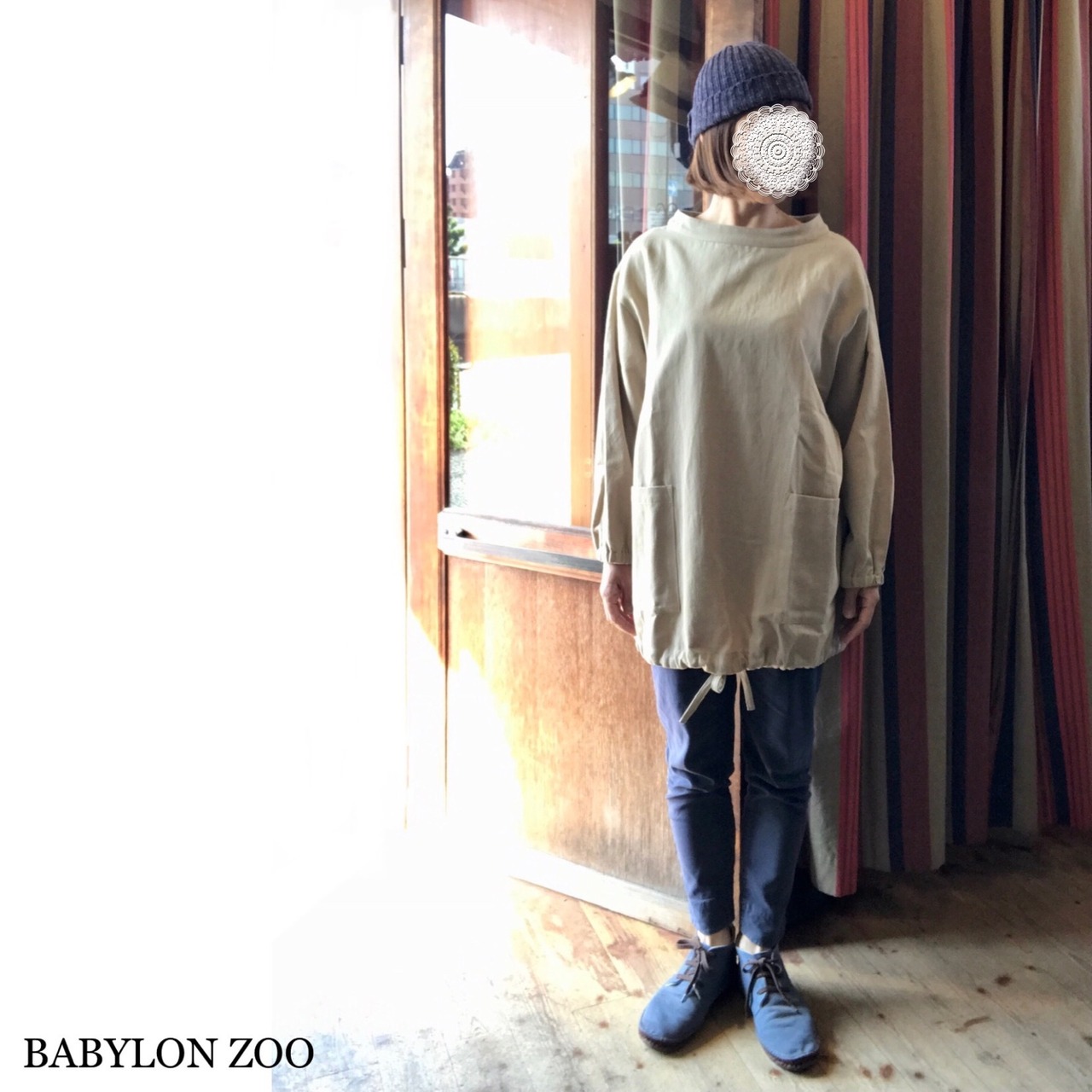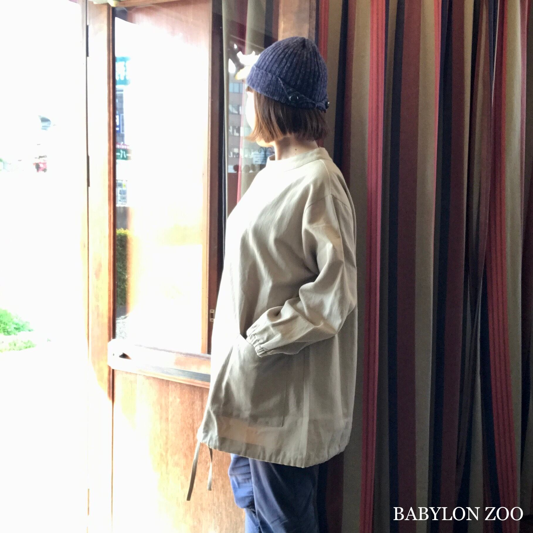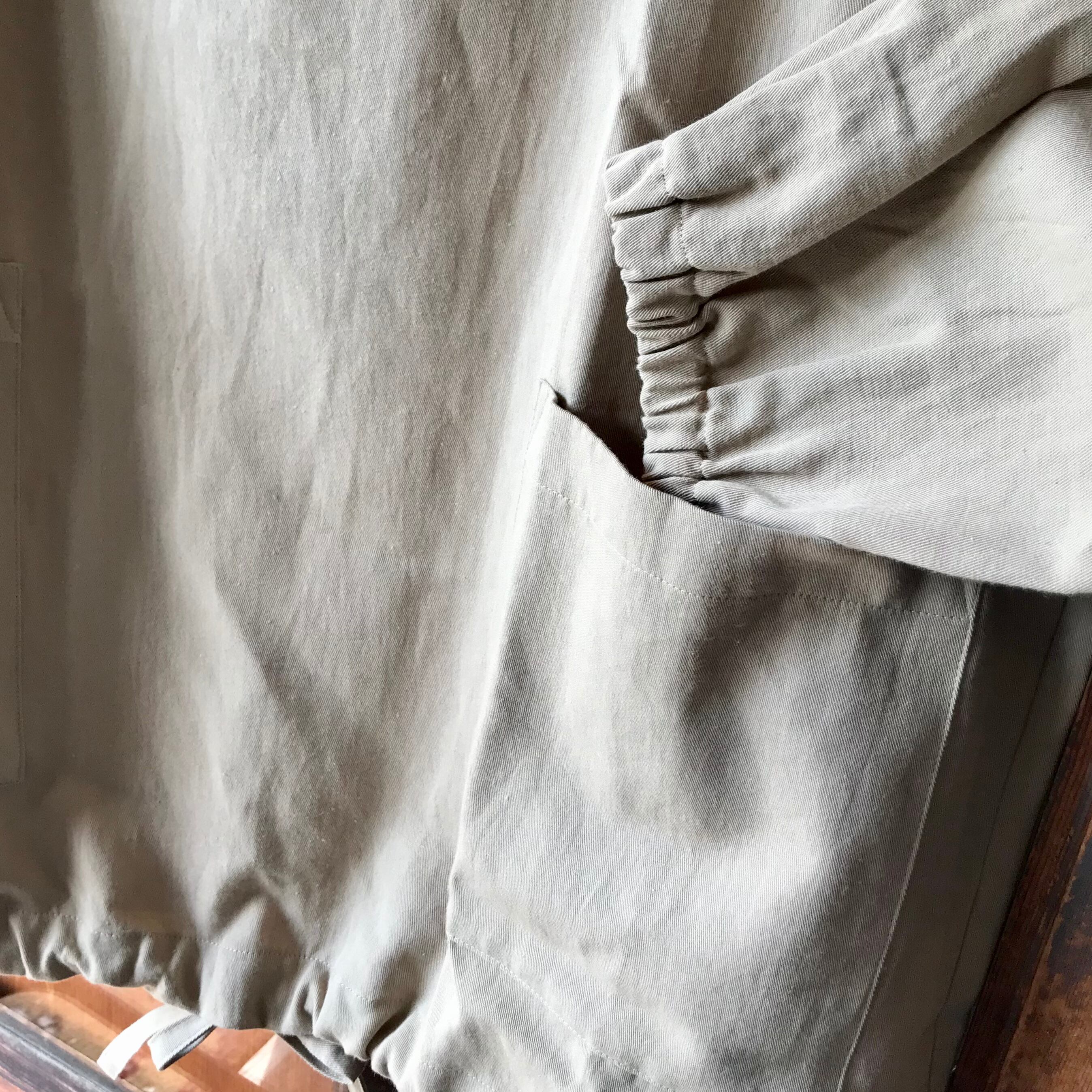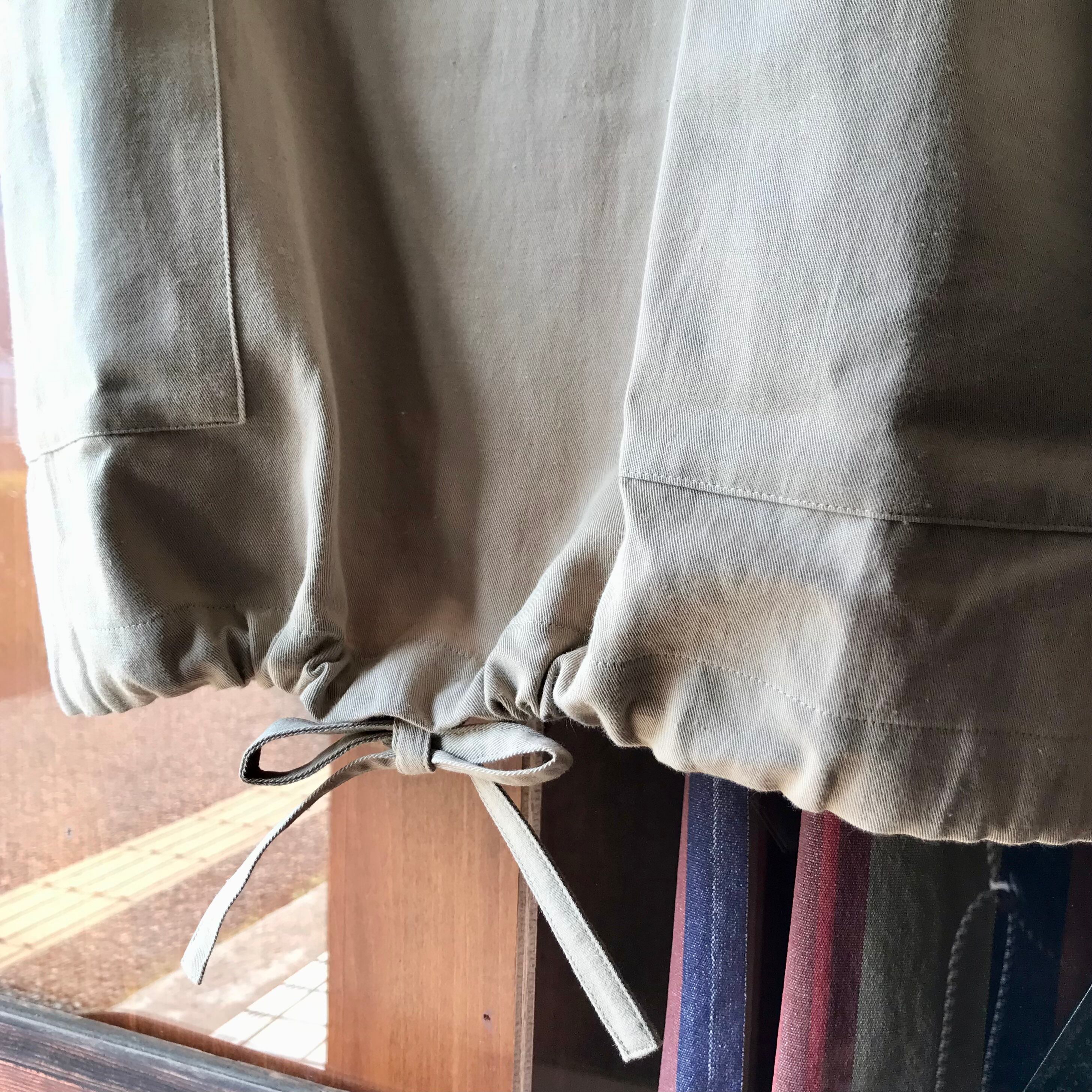 ストレートシルエットの見頃は、裾を紐で絞るとバルーンシルエットになり、違ったシルエットを楽しんで頂けます。