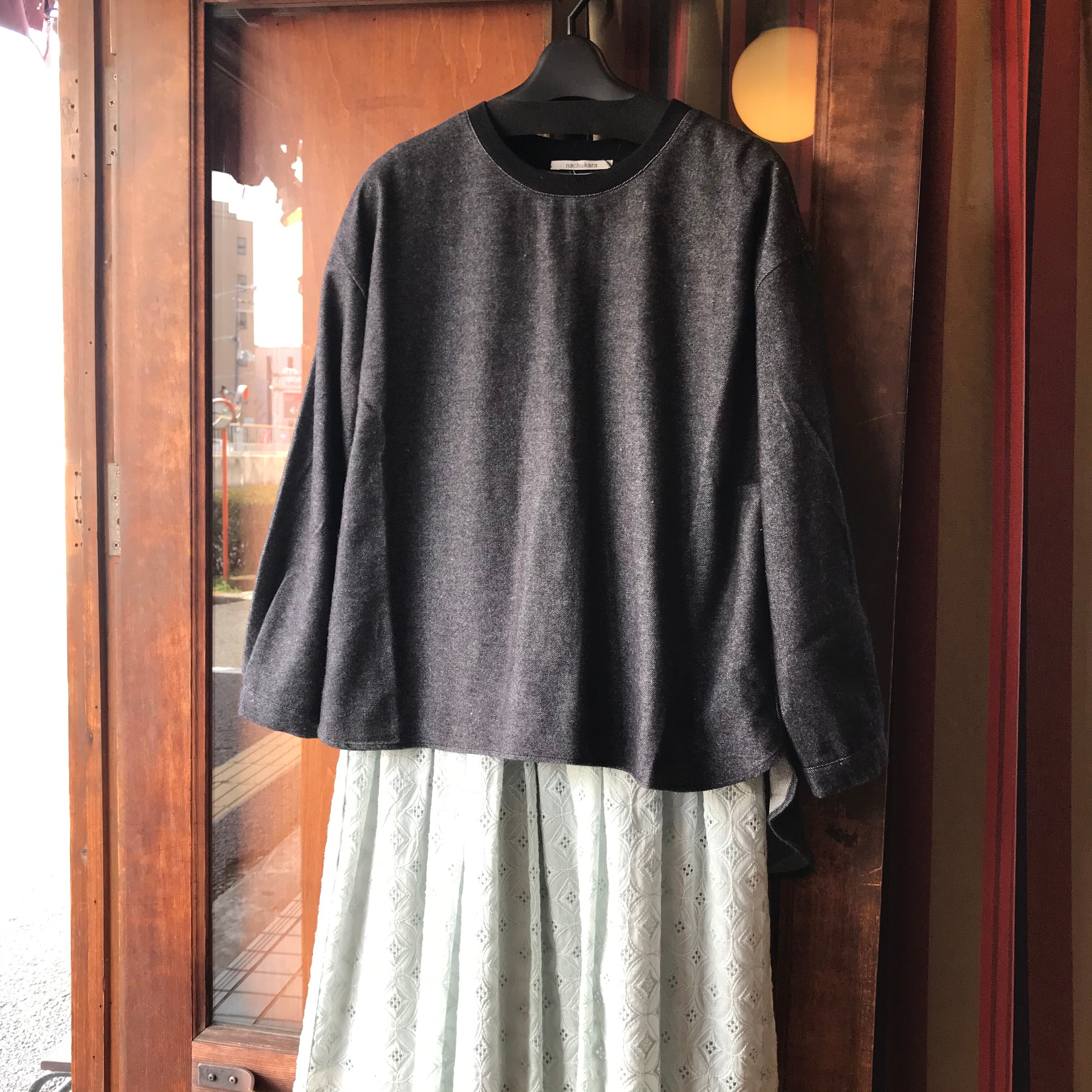 nachukaraのコットンフランネルリブドッキングプルオーバー。