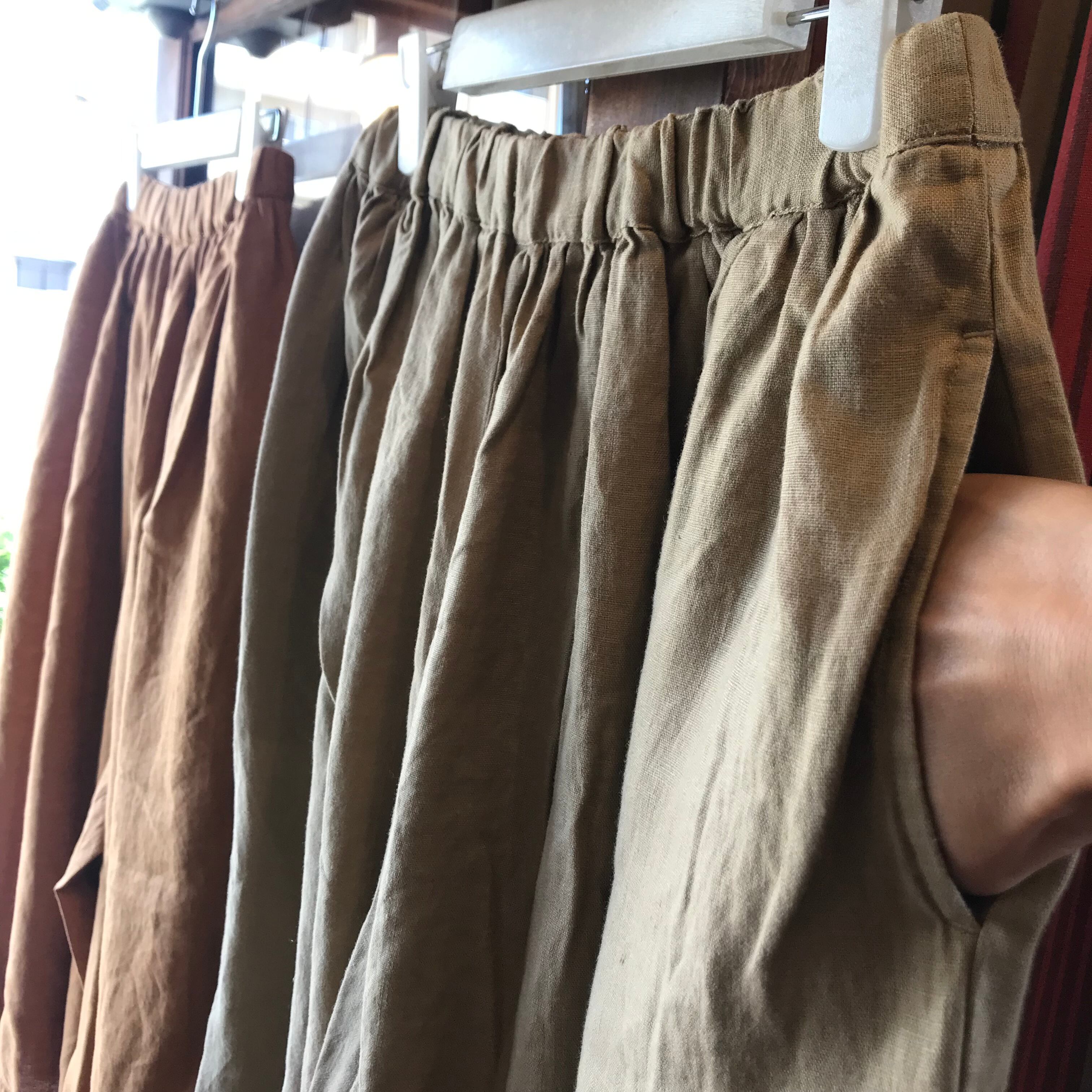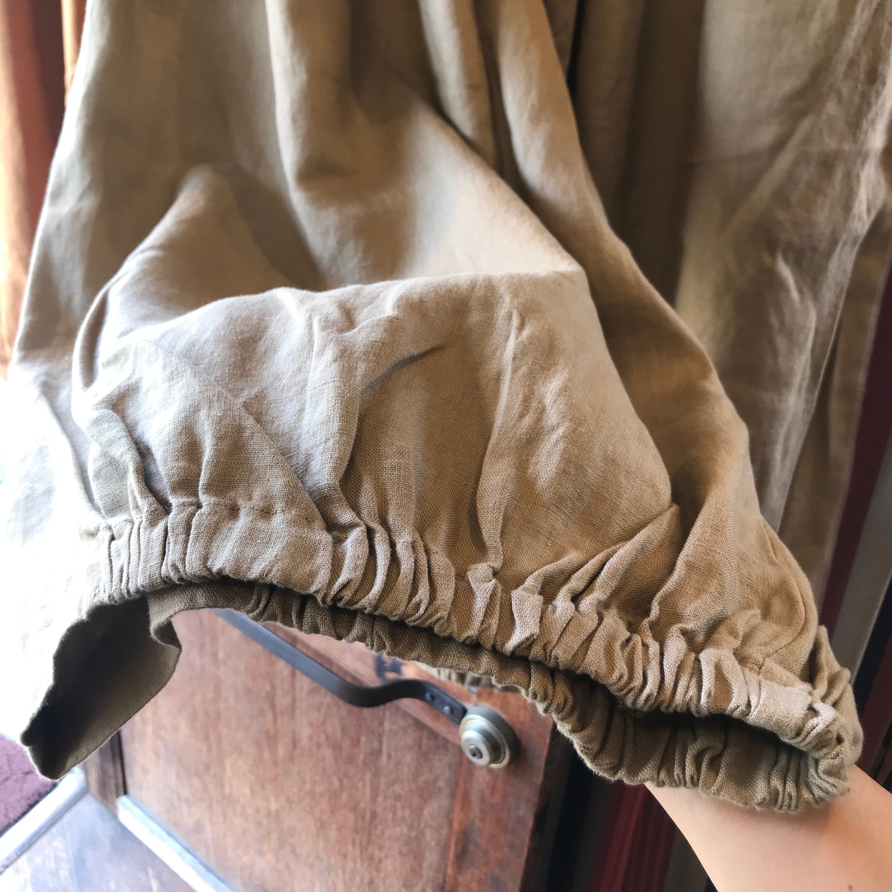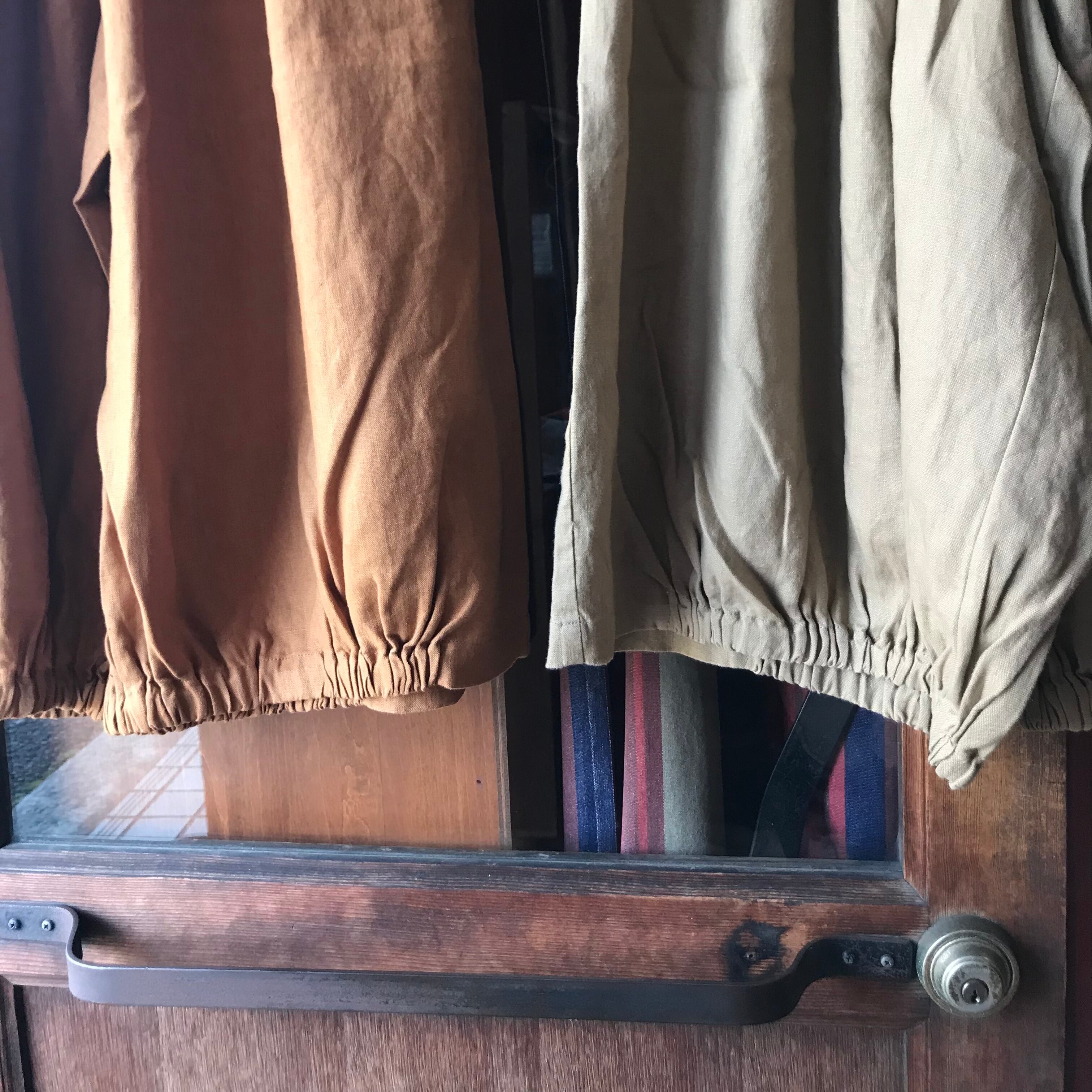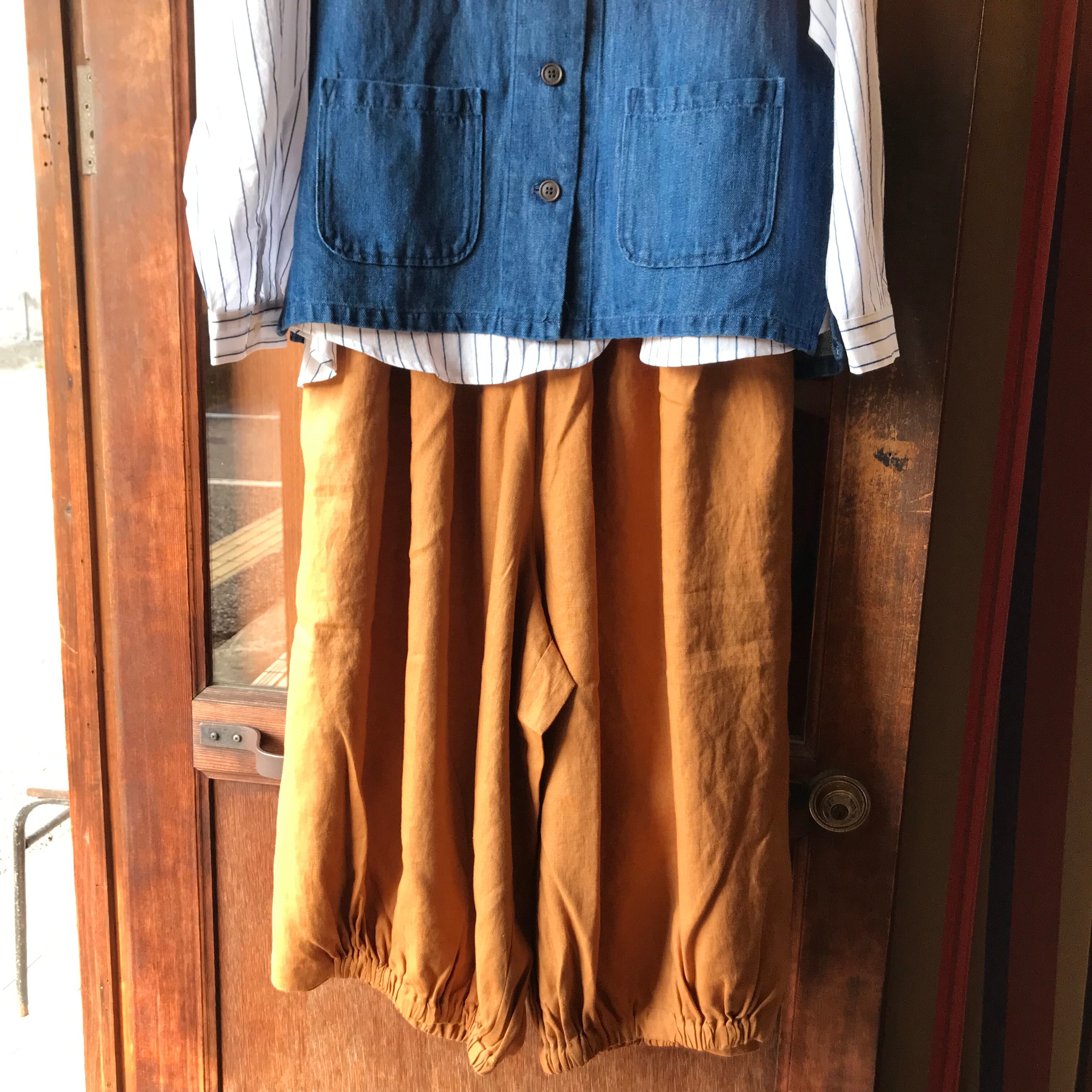ウエストにたっぷりと取ったギャザーと、裾の内側にゴムを入れて作ったバルーンシルエットがポイントです。