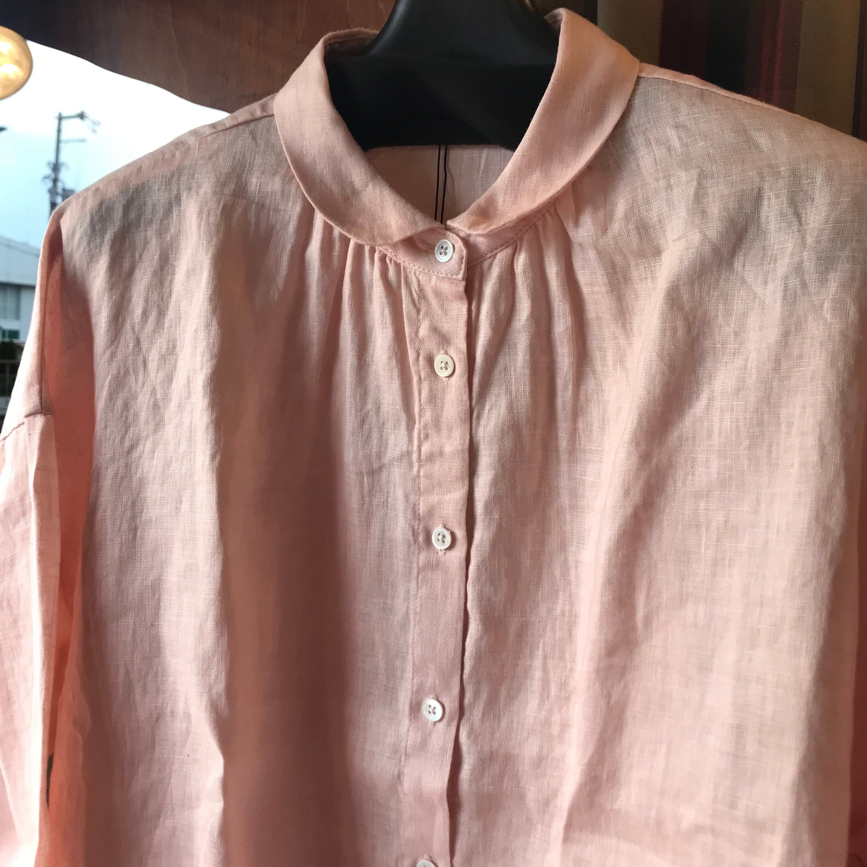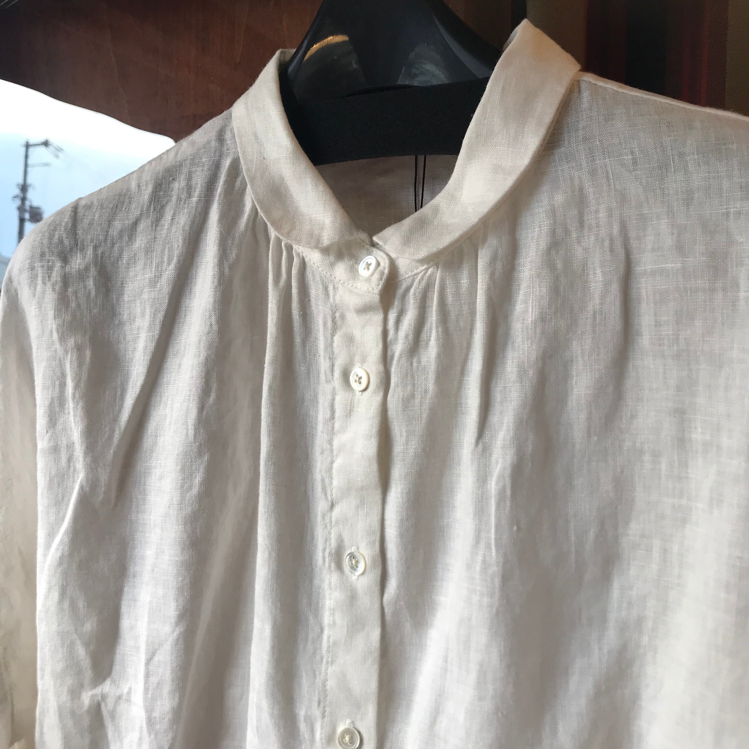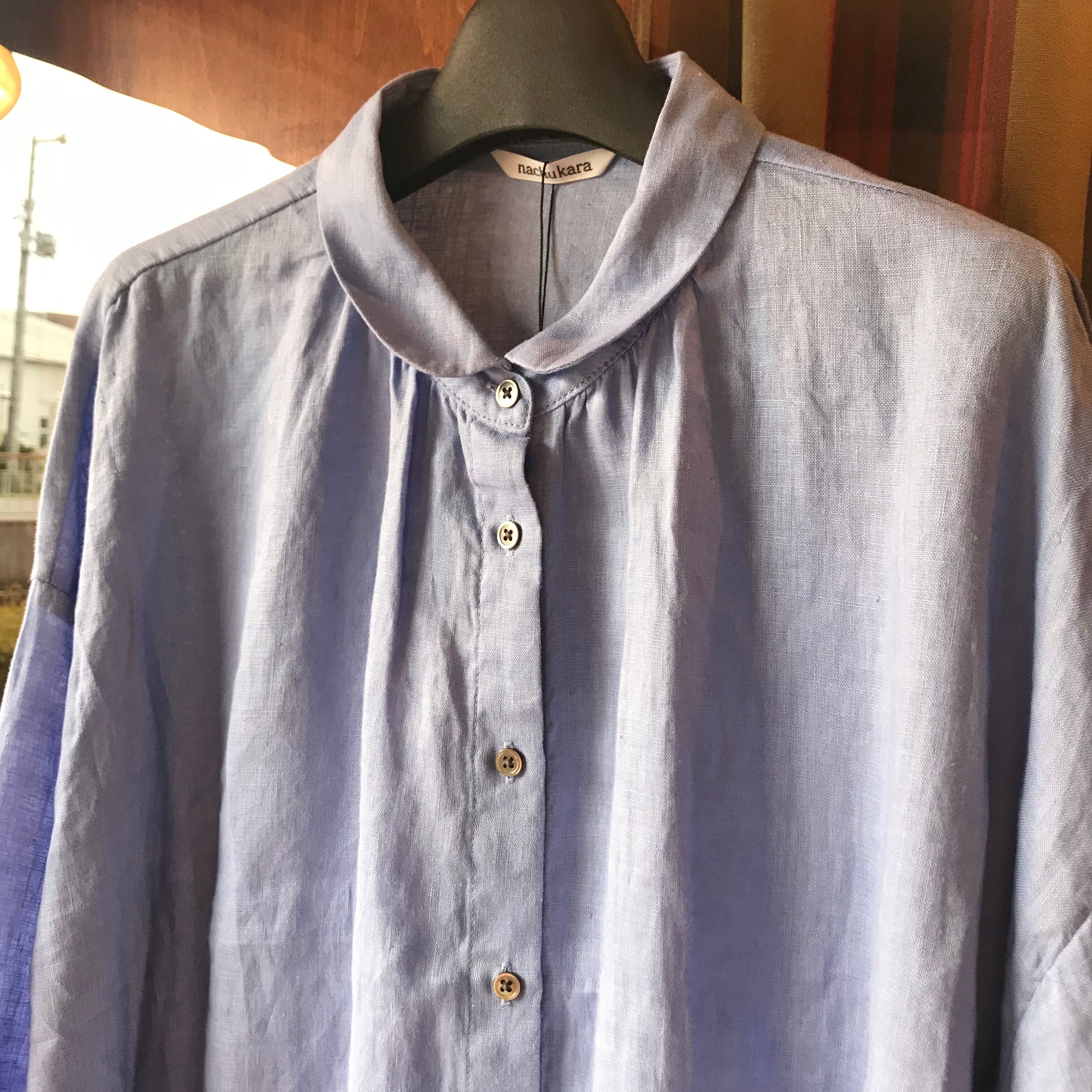 nachukaraのリネン七分袖チビ衿ブラウスです。