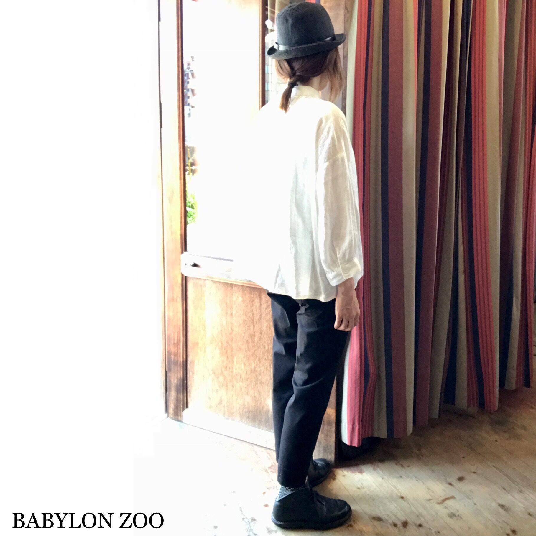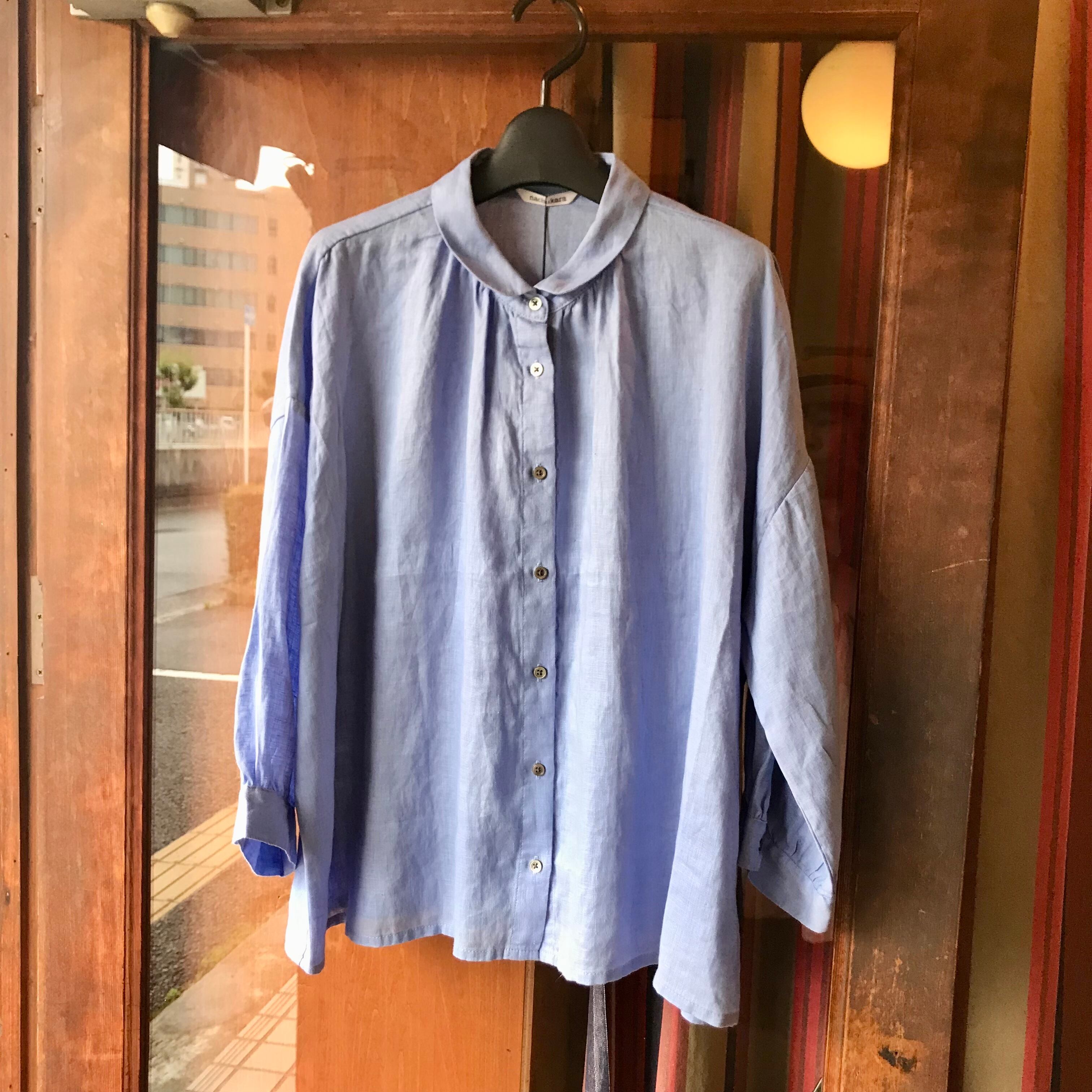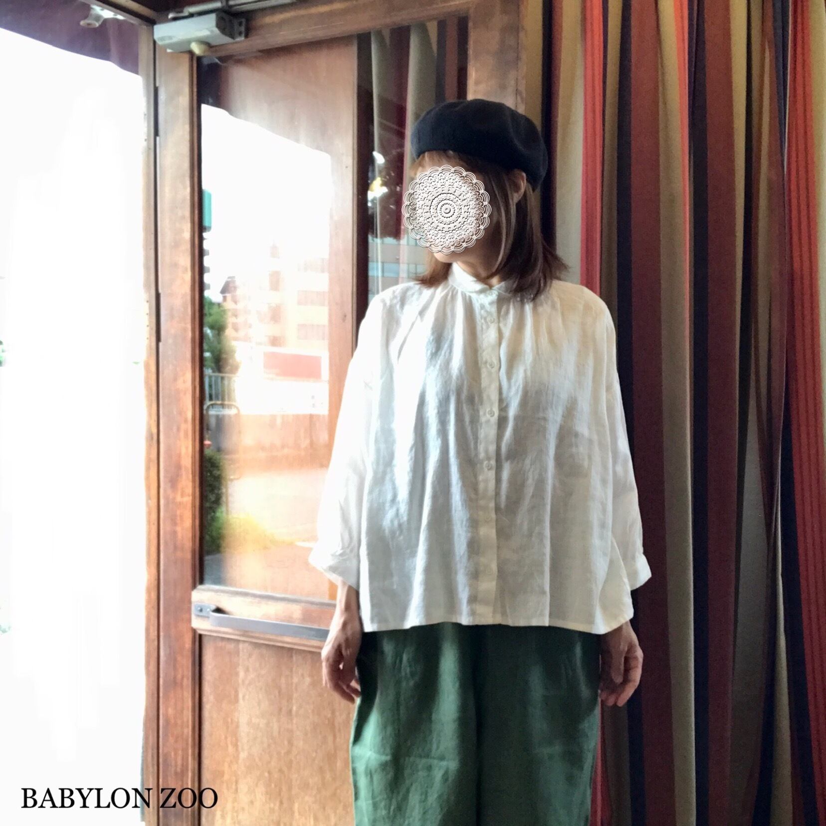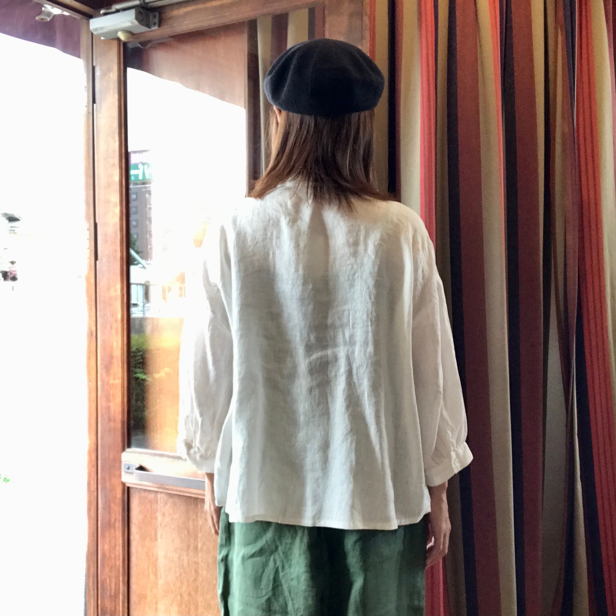 nachukaraのリネン七分袖チビ衿ブラウスです。