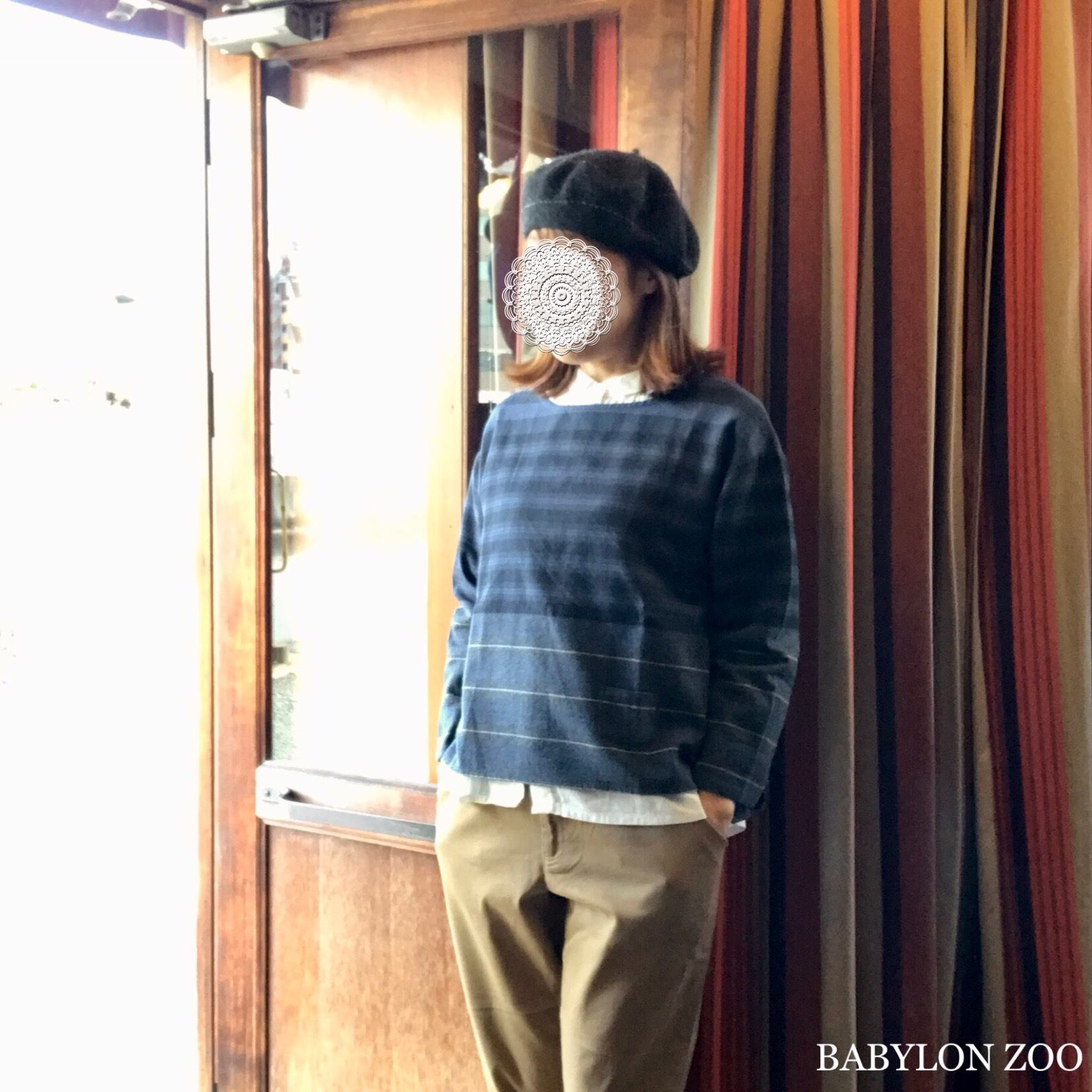 衿ぐりにふんわりとギャザーを入れ、ゆったりとしたシルエットに仕上げました。