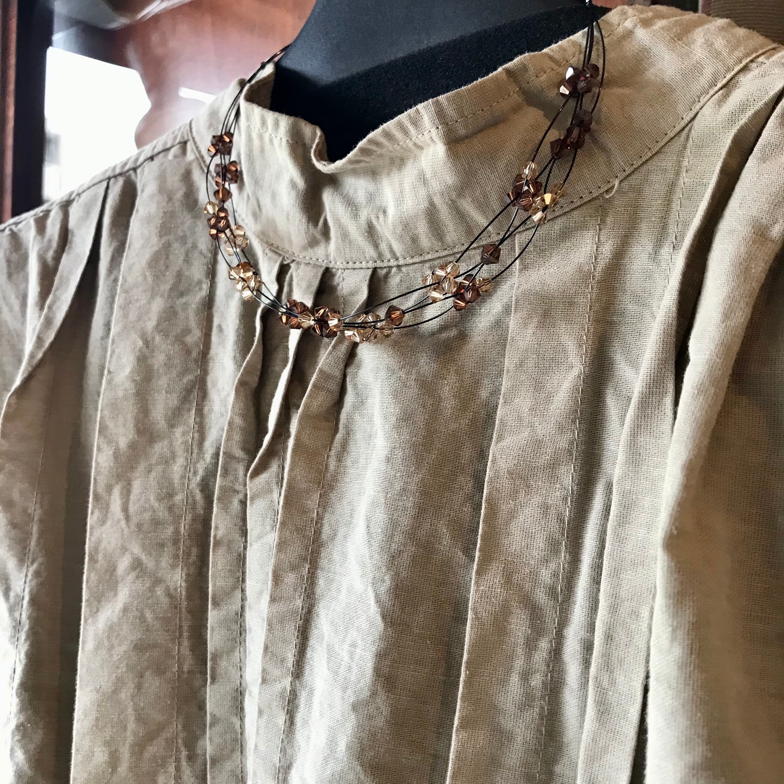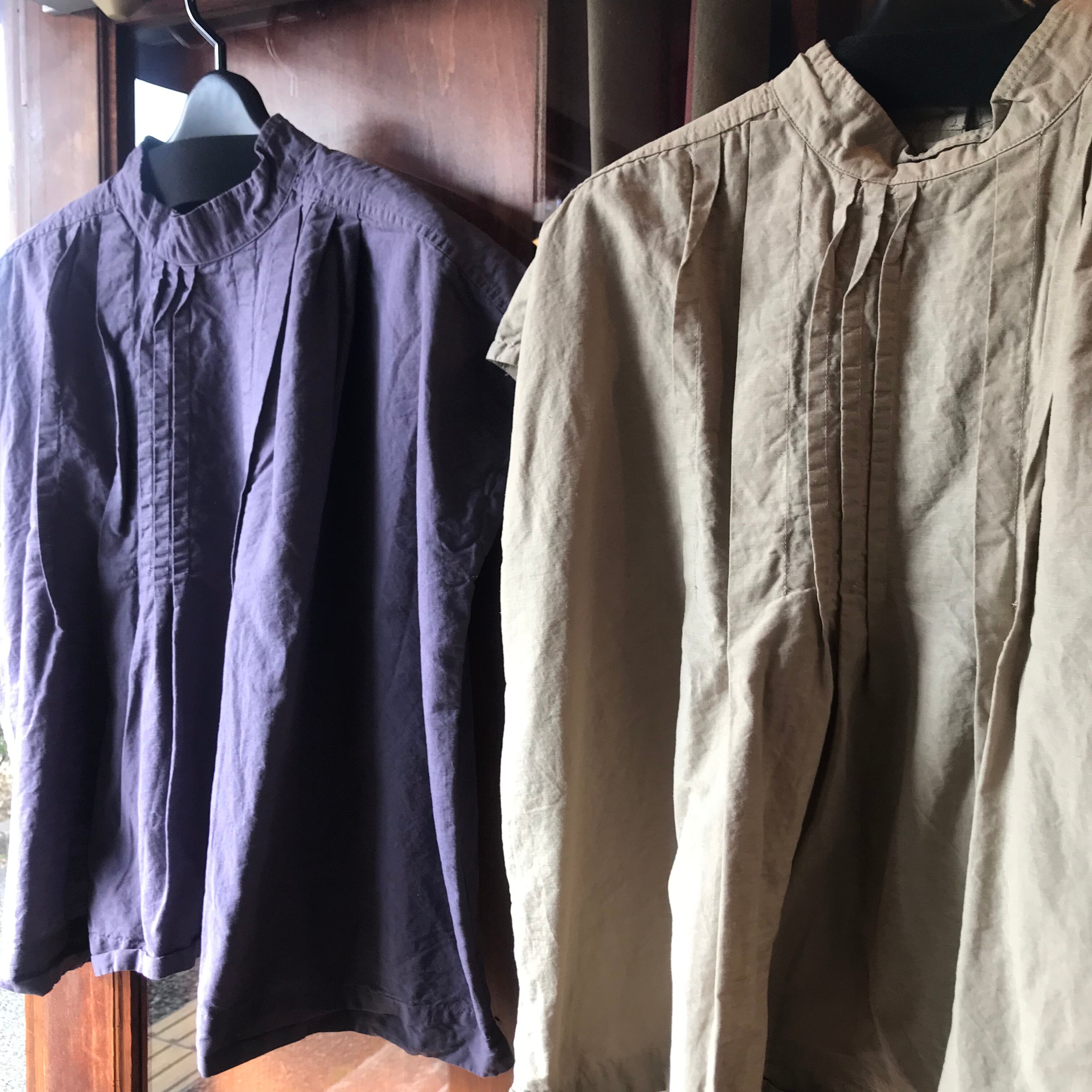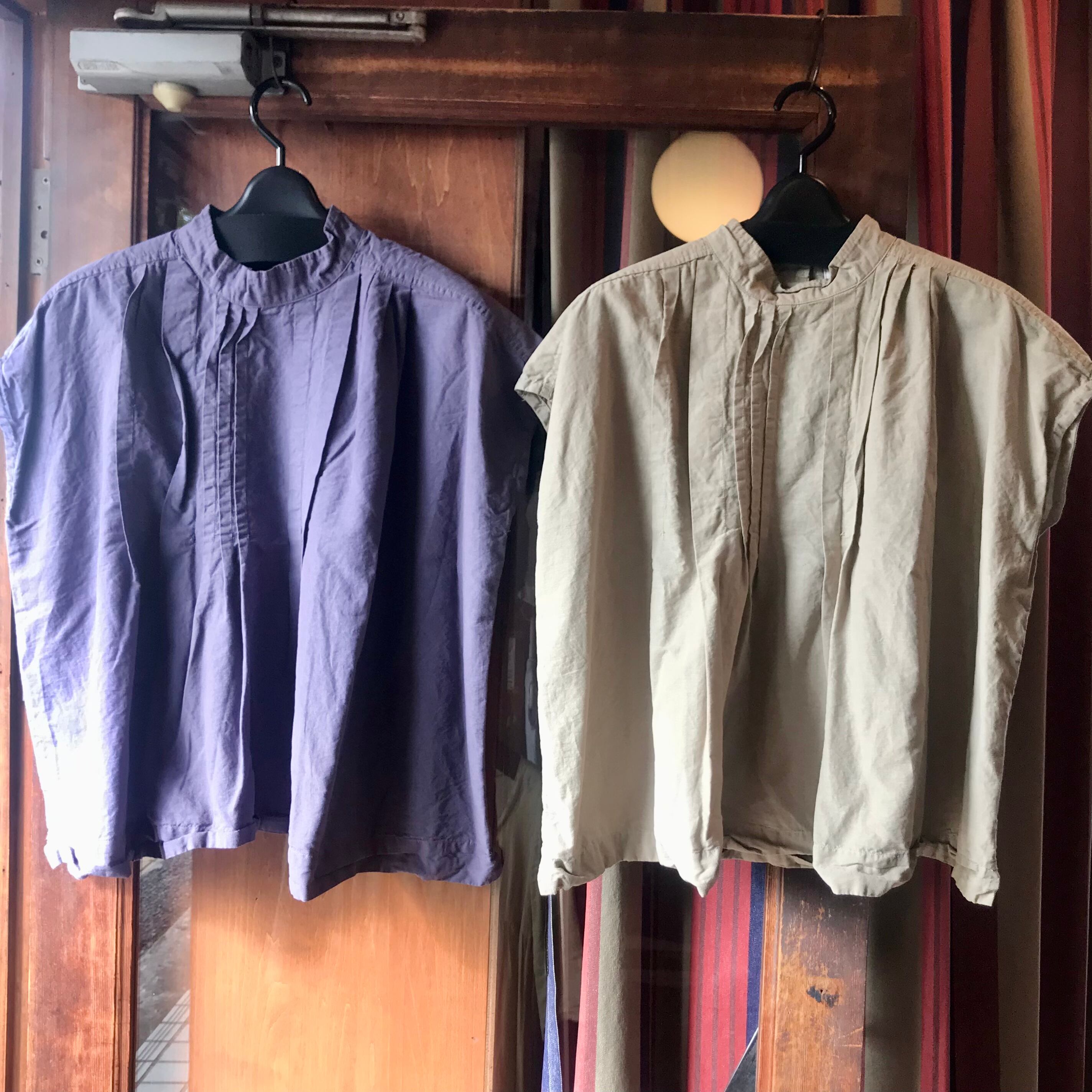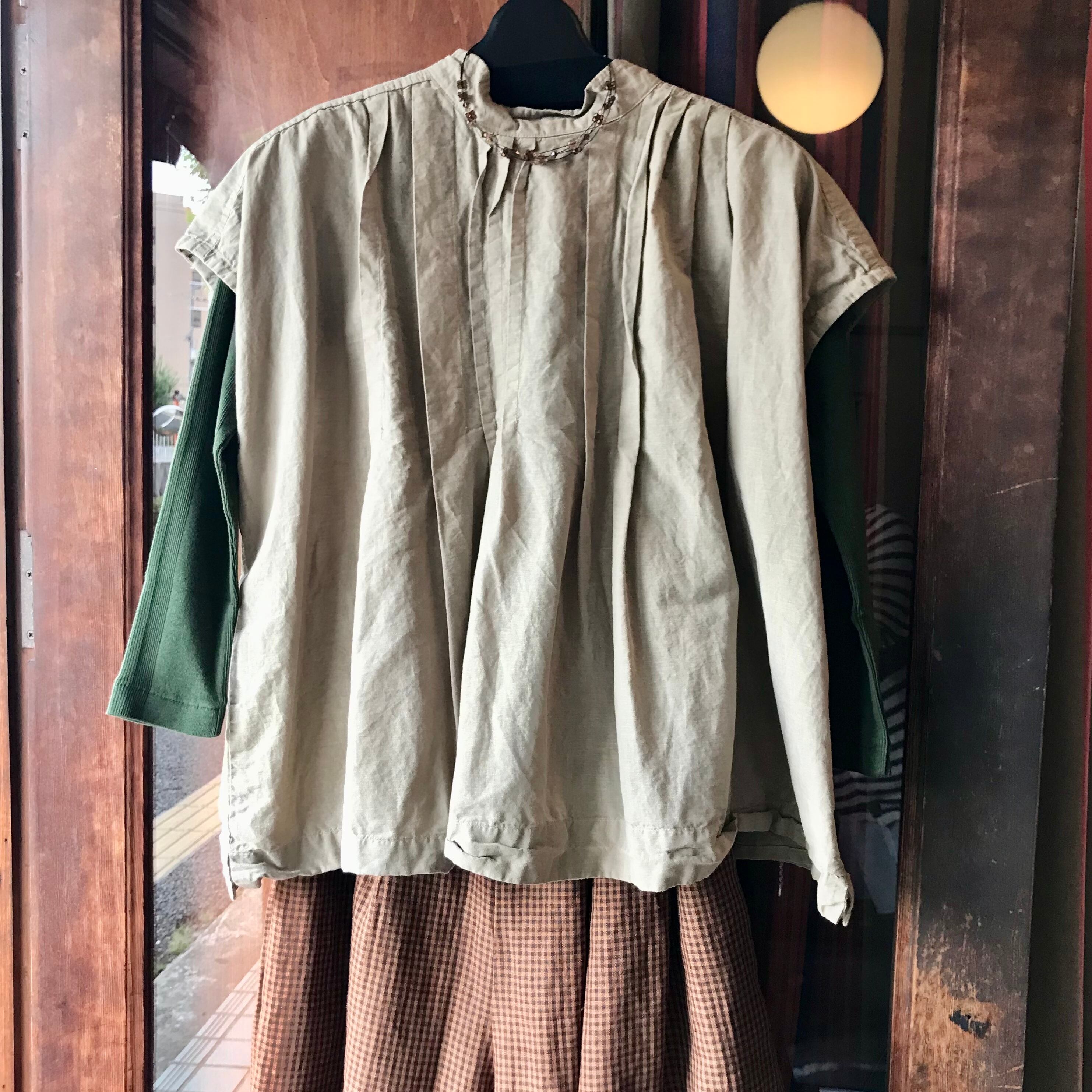 tukuroiの半袖タックスタンドカラーブラウス。