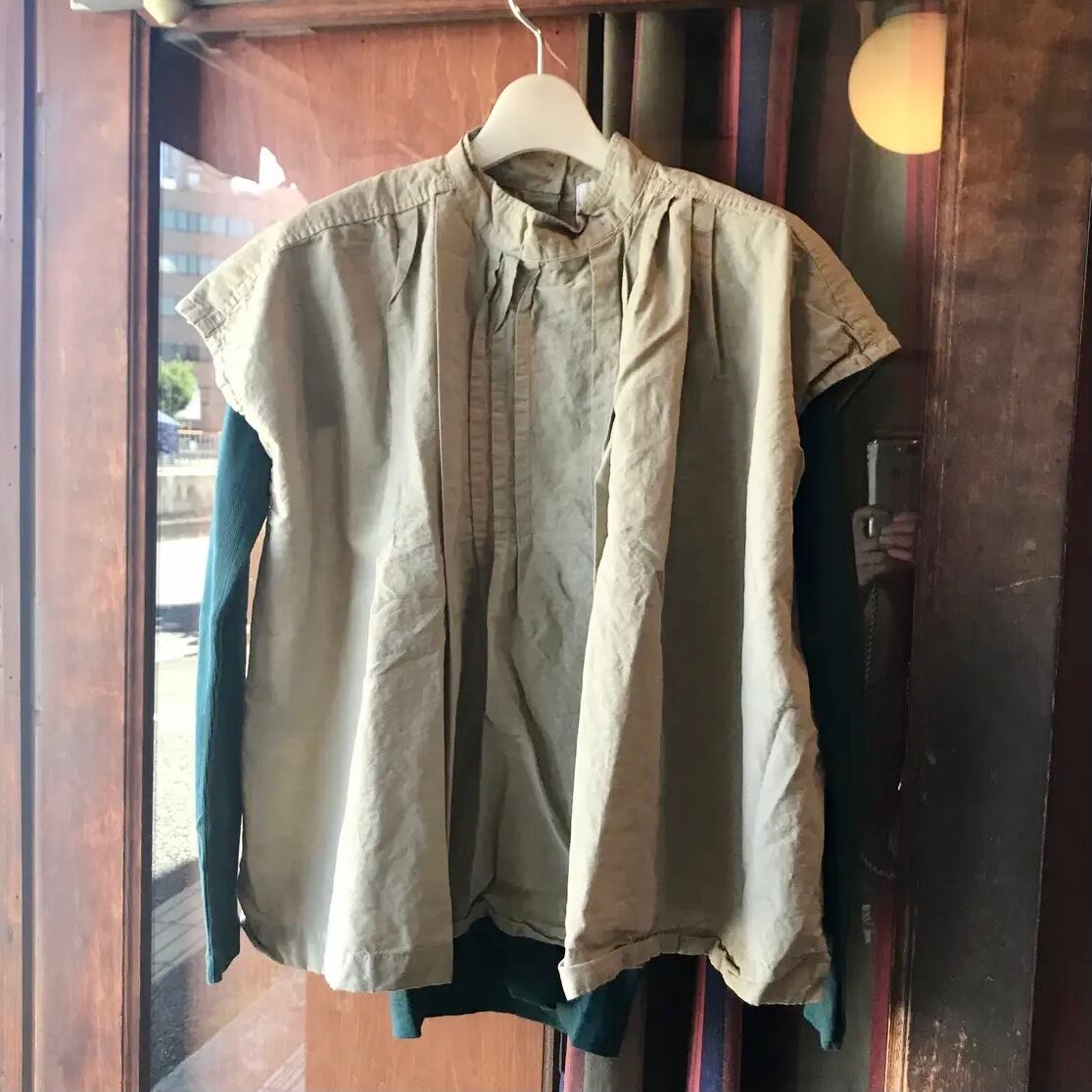 半袖として着ても、写真のように重ね着するとベストのみたいに長い季節着て頂けます。